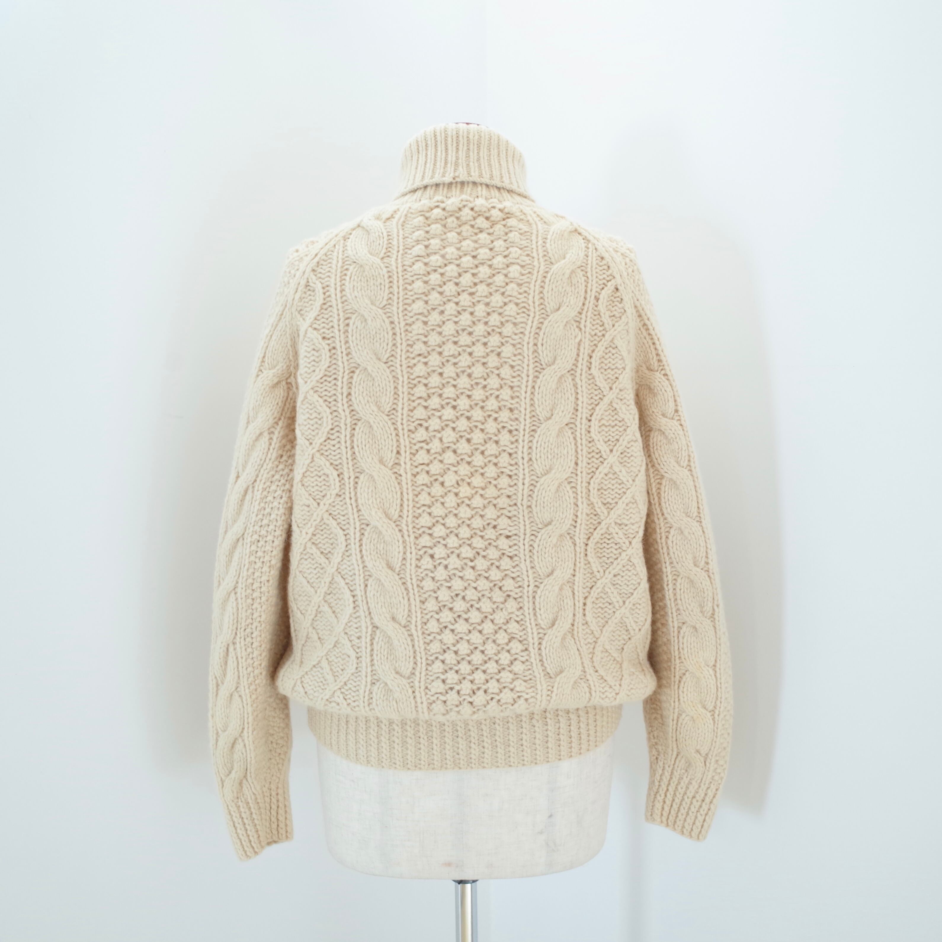 毎年なんだかんだ欲しくなるフィッシャーマンセーター。こちらはタートルネックで、編みのバランスも良い一枚です。少し丸みを帯びたシルエットも抜群なセーターです。