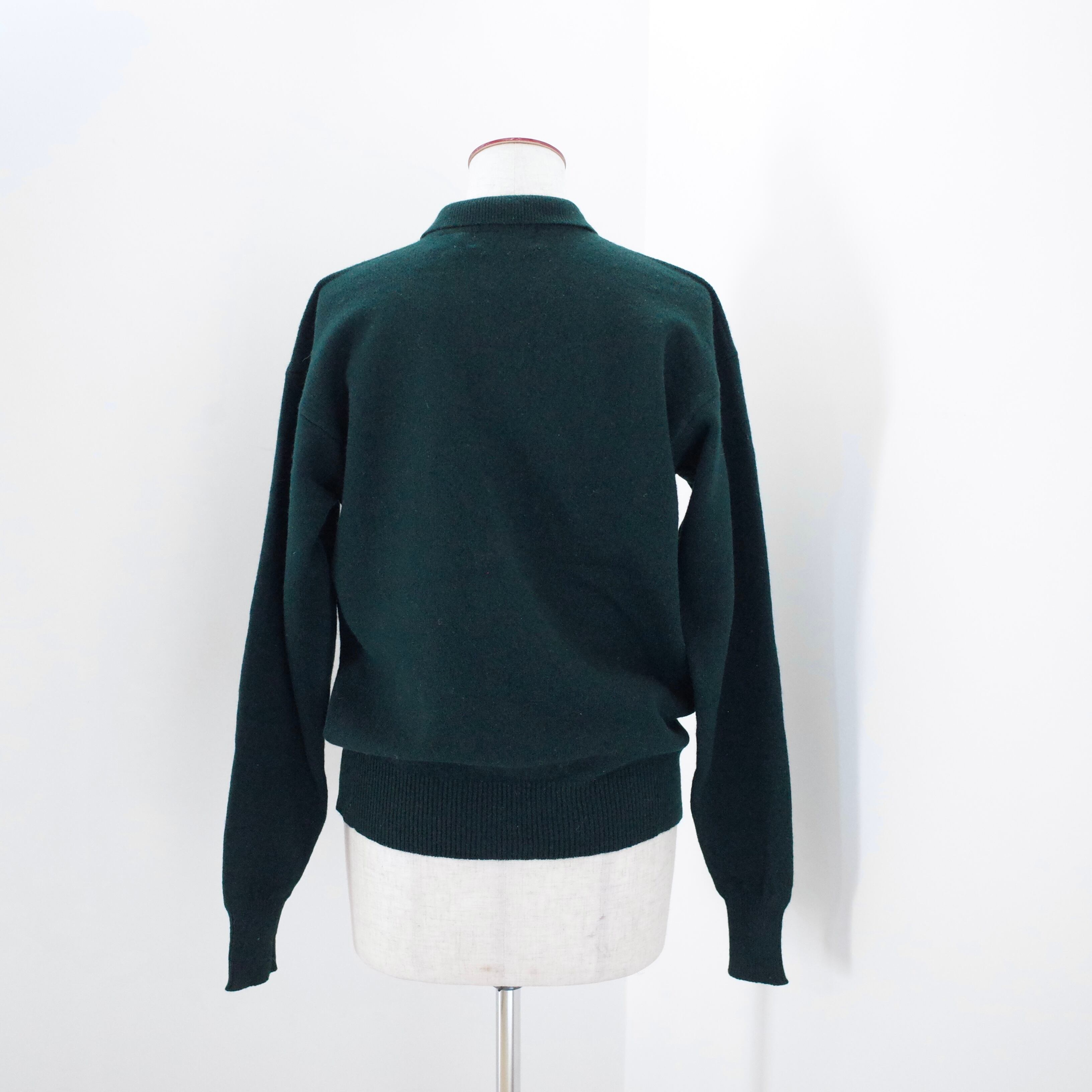 Polo by Ralph Laurenの襟付きセーター。シックな深めのグリーンカラーに、ポニーはレッドの秋冬らしいカラー。使用されているラムウールは、柔らかく滑らかで、高級テキスタイルに使用されるウールです。薄手なニットでポロシャツのようなデザインですが、温かく着用頂けます。