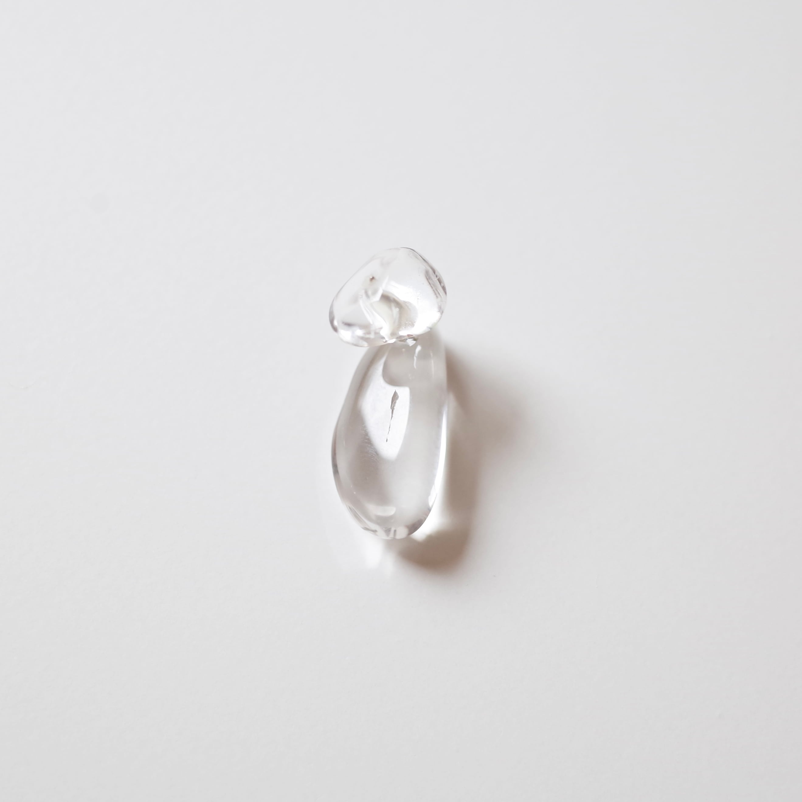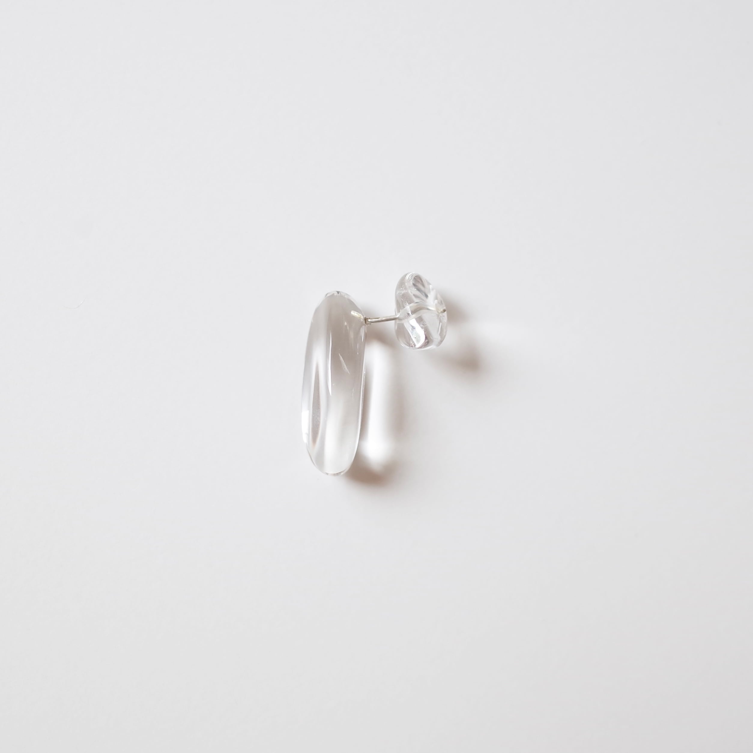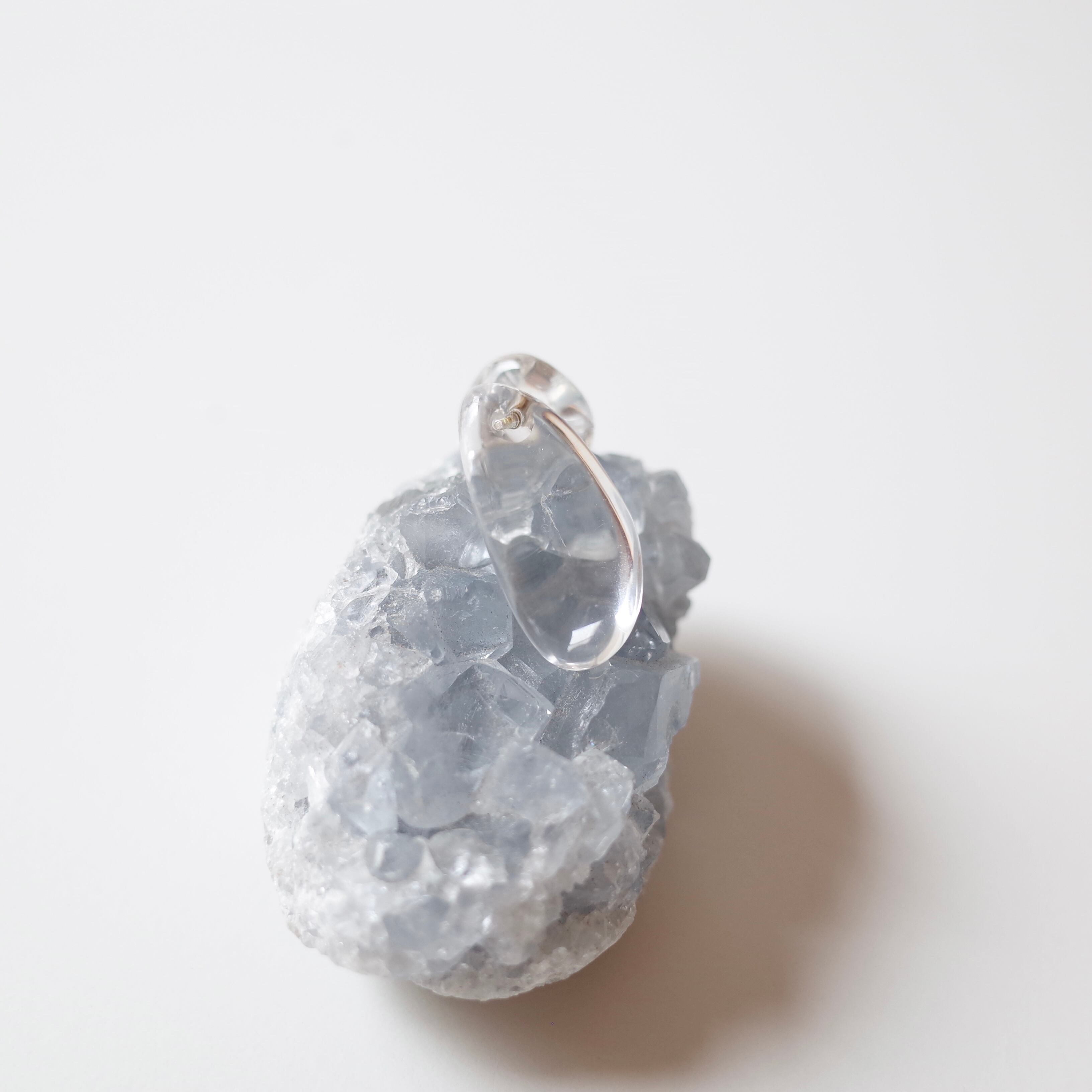 天然石を使用したherのピアスです。磨かれたクリスタルタンブルに、キャッチも同じくクリスタルを使用したピアス。バックスタイルも素敵です。石は透明度の高い雫のようなものを選びました。こちらは片耳ピアスとなります。