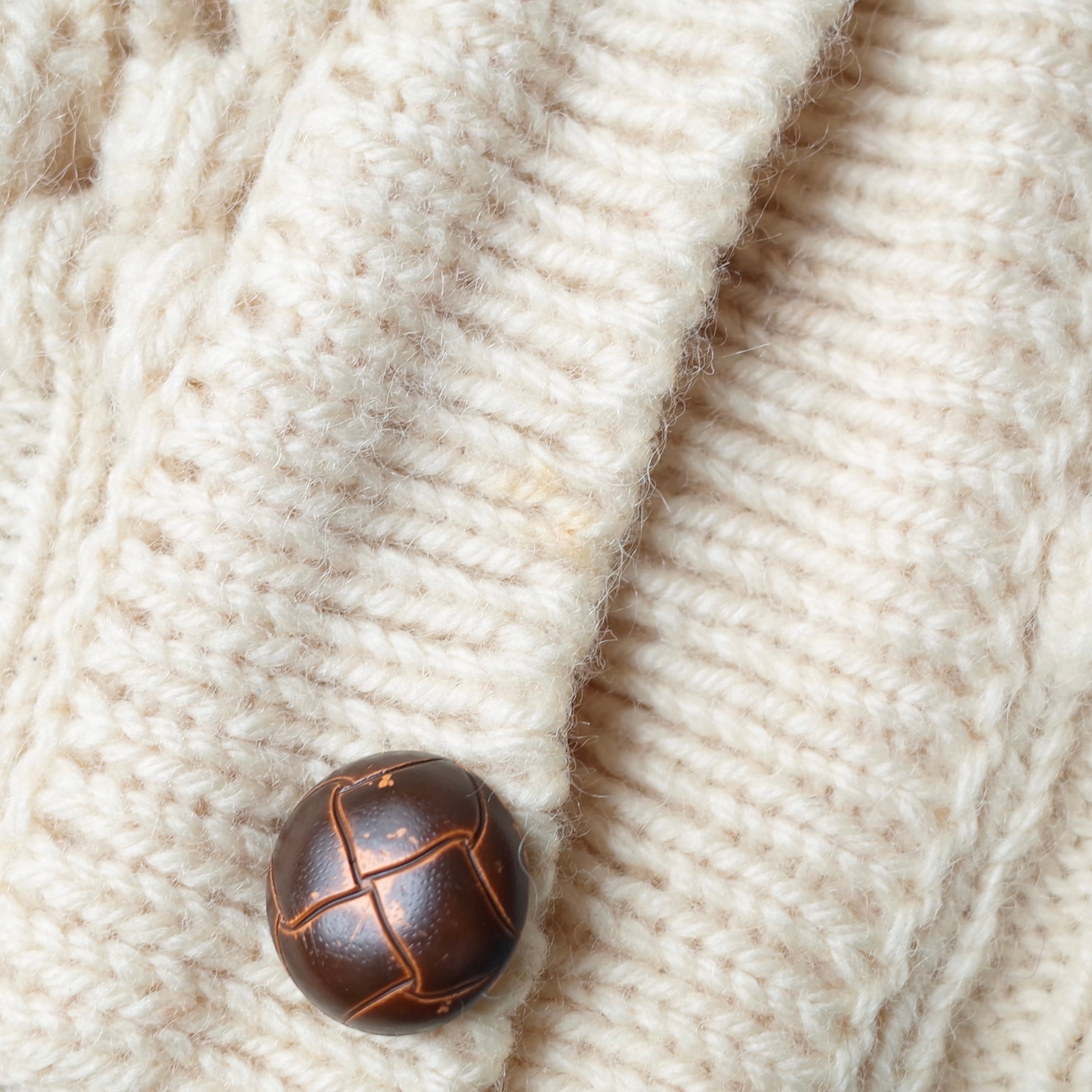 毎年なんだかんだ欲しくなるフィッシャーマン(アランニット)のカーディガン。こちらはアイルランド製の編みのバランスが良い一枚です。スウェットの上からも羽織れるゆったりとしたサイズ感です。