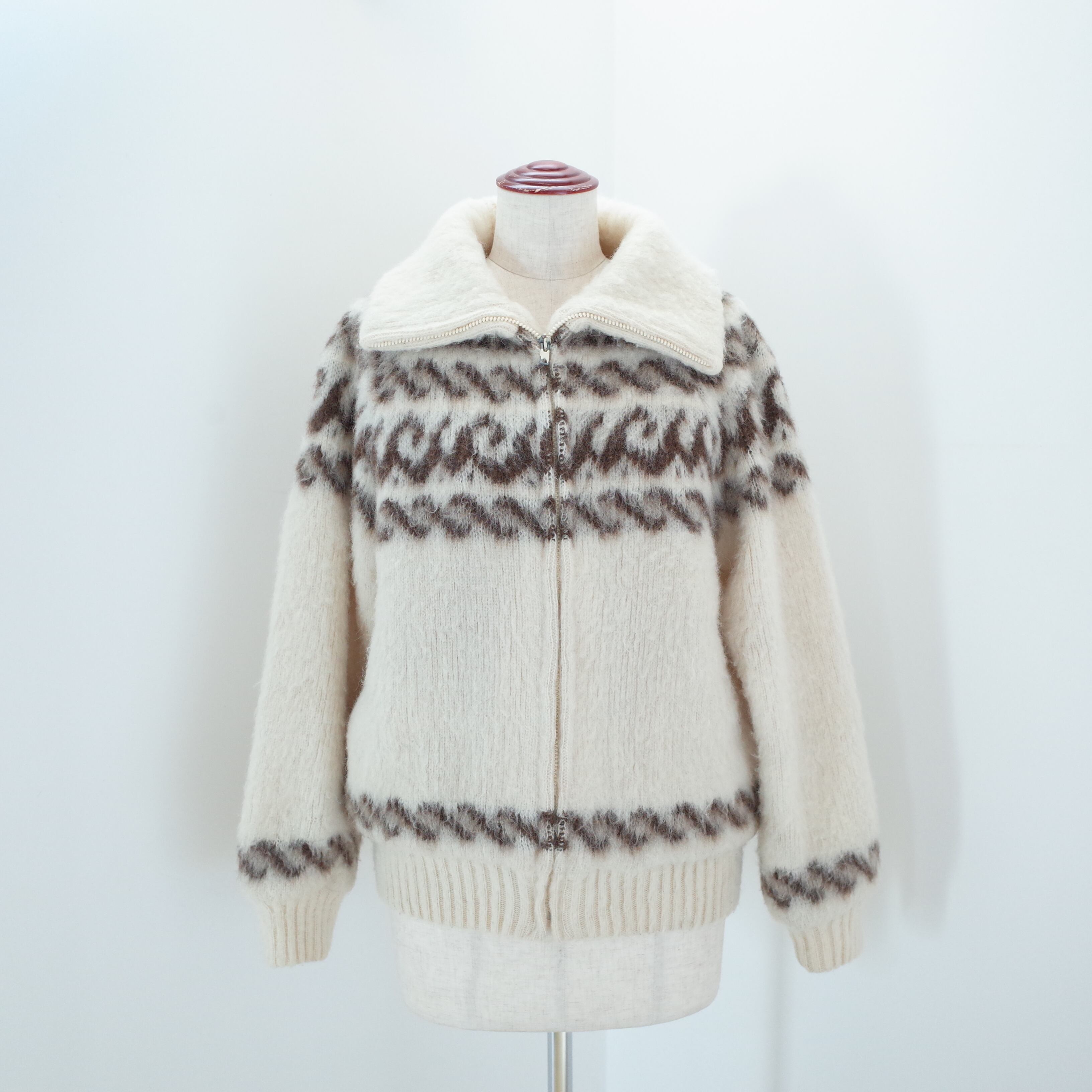 アイスランド製フルジップのニットカーディガン。毛足が長めなモヘアのようなウールで、軽い着心地です。ヴィンテージならではの雰囲気あるニット。裏地付きです。