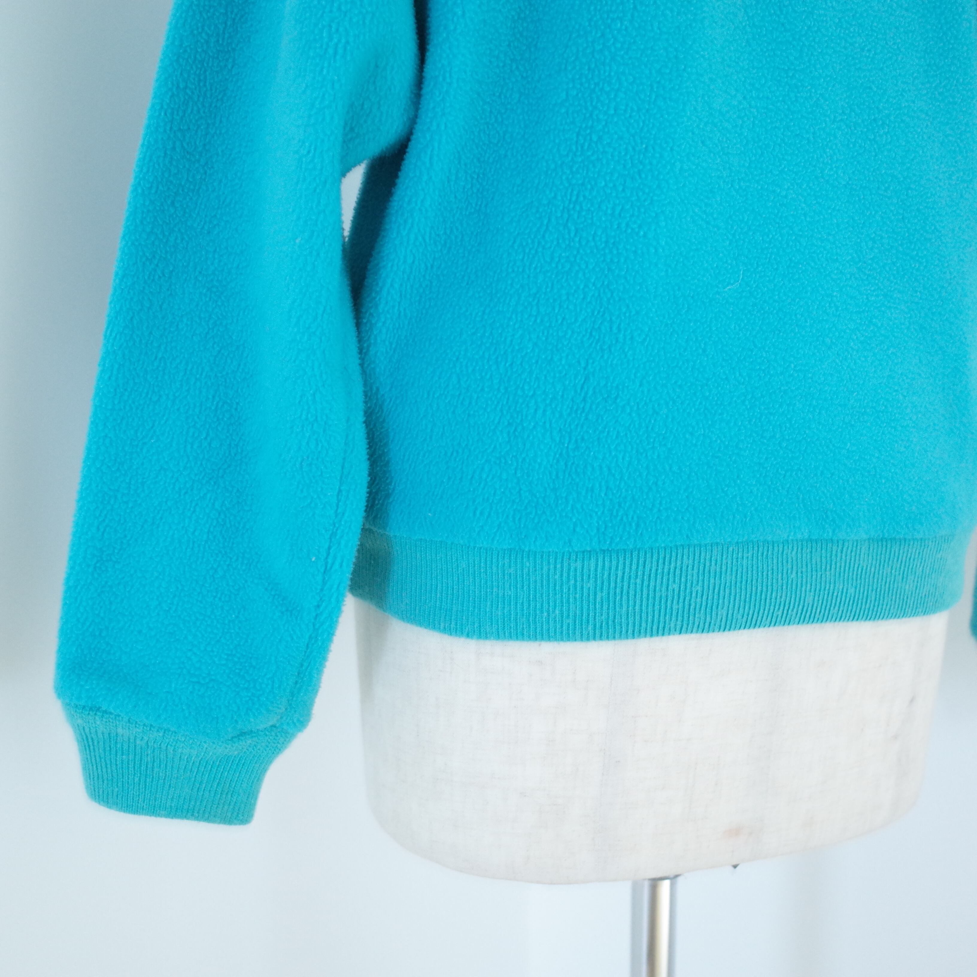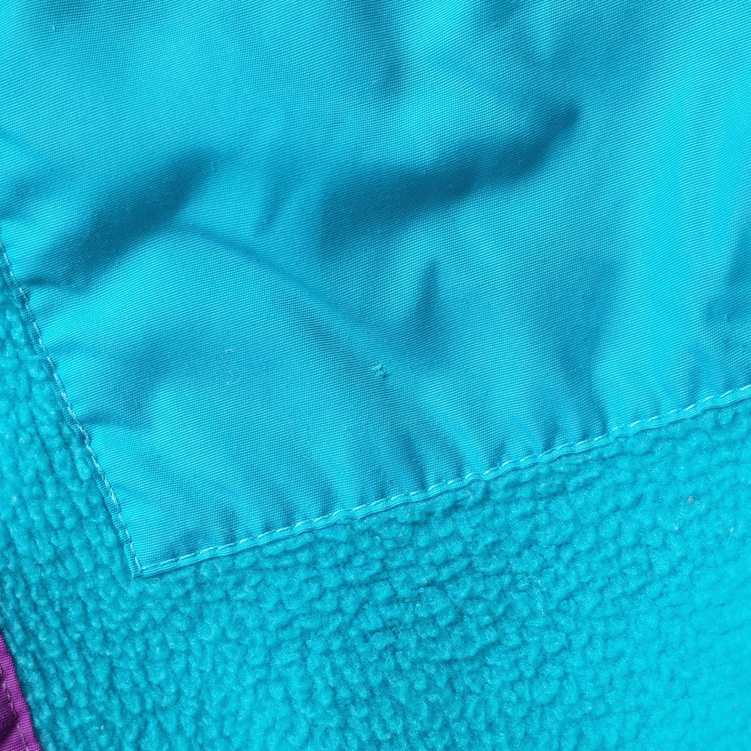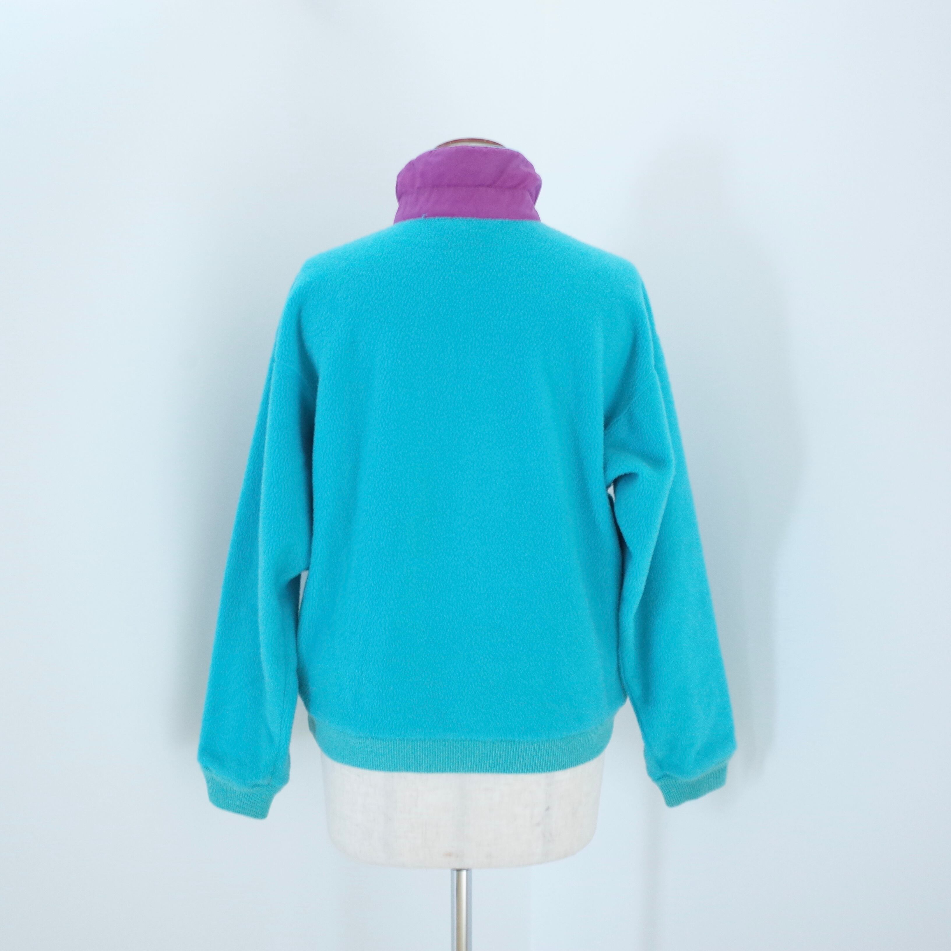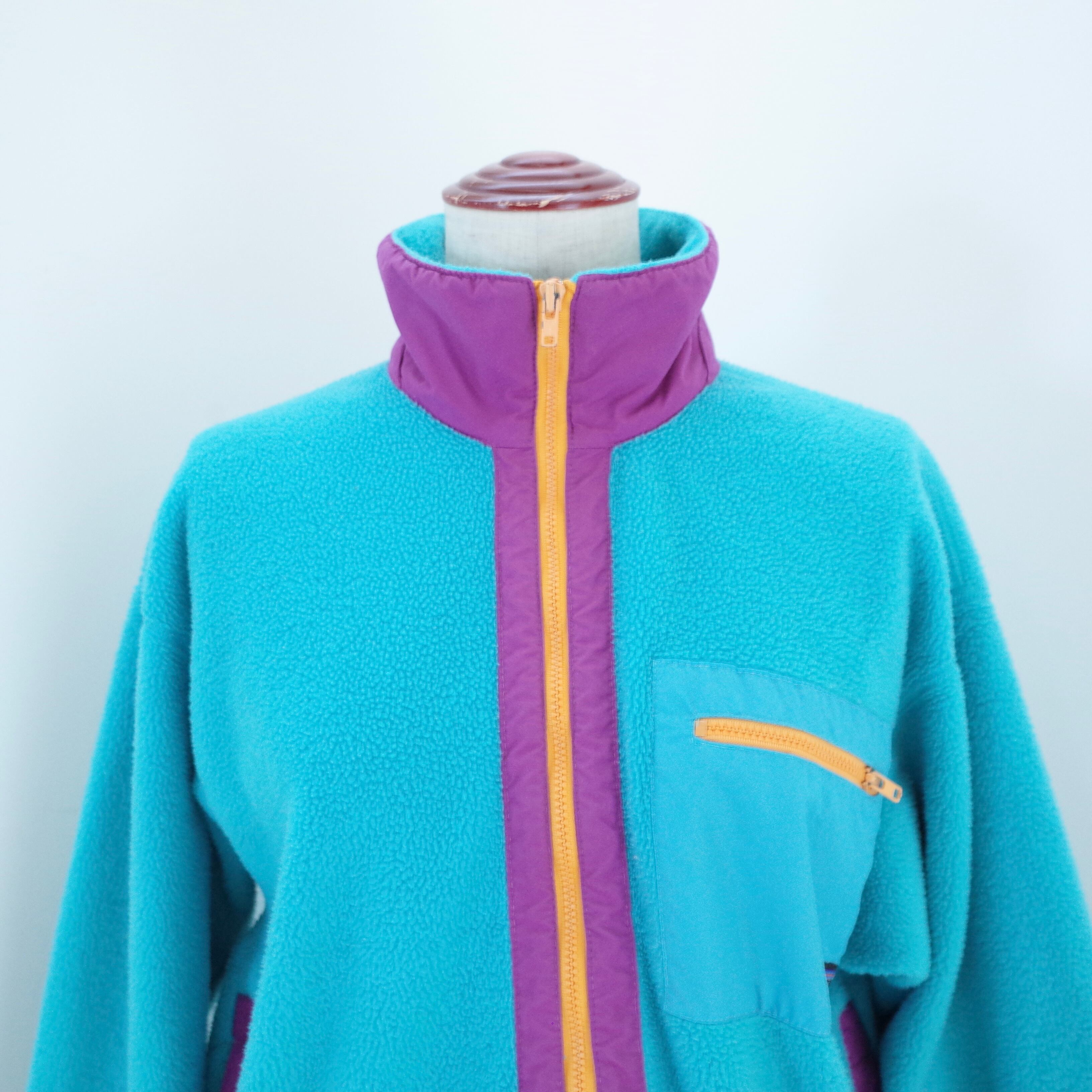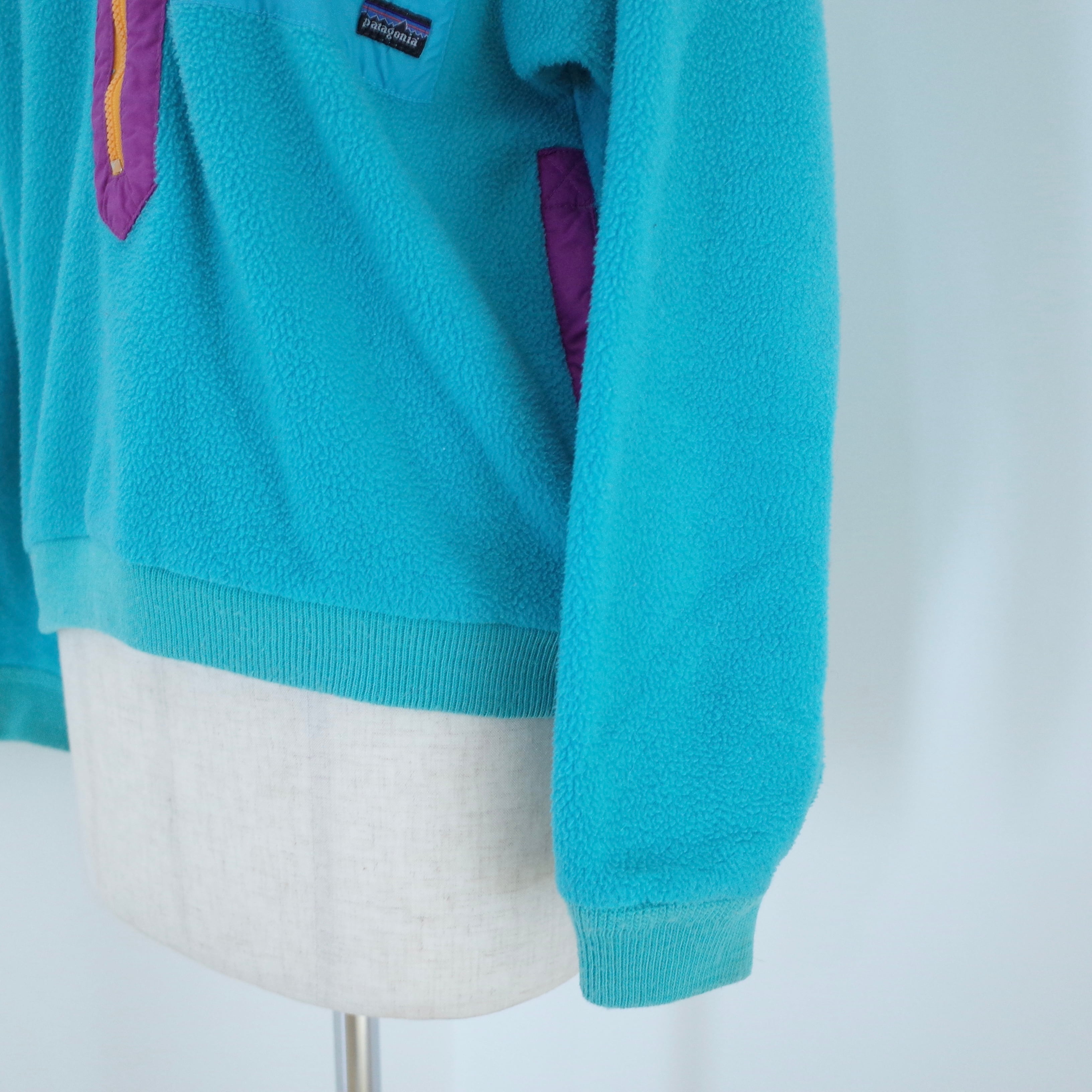 80〜90年代アメリカ製patagoniaのフリース。スウェット感覚で着られる万能な一枚。鮮やかなブルーのボディにパープルのトリムとイエローのジップがgoodなカラーリングです。暖かい機能性とポップな配色で、アウトドアアイテムなのにスタイリッシュなルックスが魅力的なパタゴニア。デニムはもちろんですが、柄のロングスカートなどとの合わせも◎
