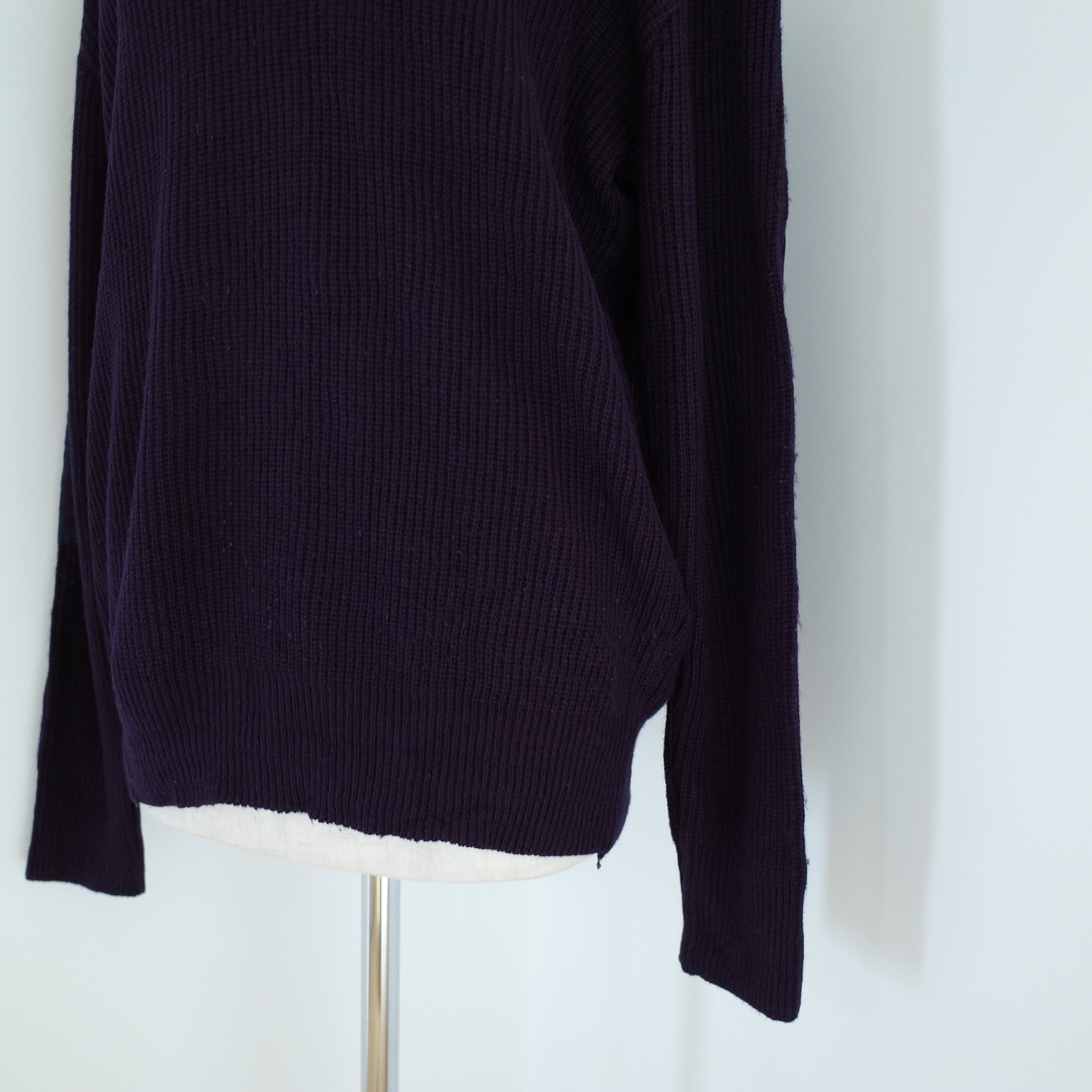 ミリタリーのセーター。さらっとしたコットン素材で春先まで活躍してくれる一枚。ゆったりとしたオーバーサイズで、インナーにタートルネックのカットソーなどをレイヤーしても◎ボトムを選ばず、雰囲気を出せる春物のセーターです。