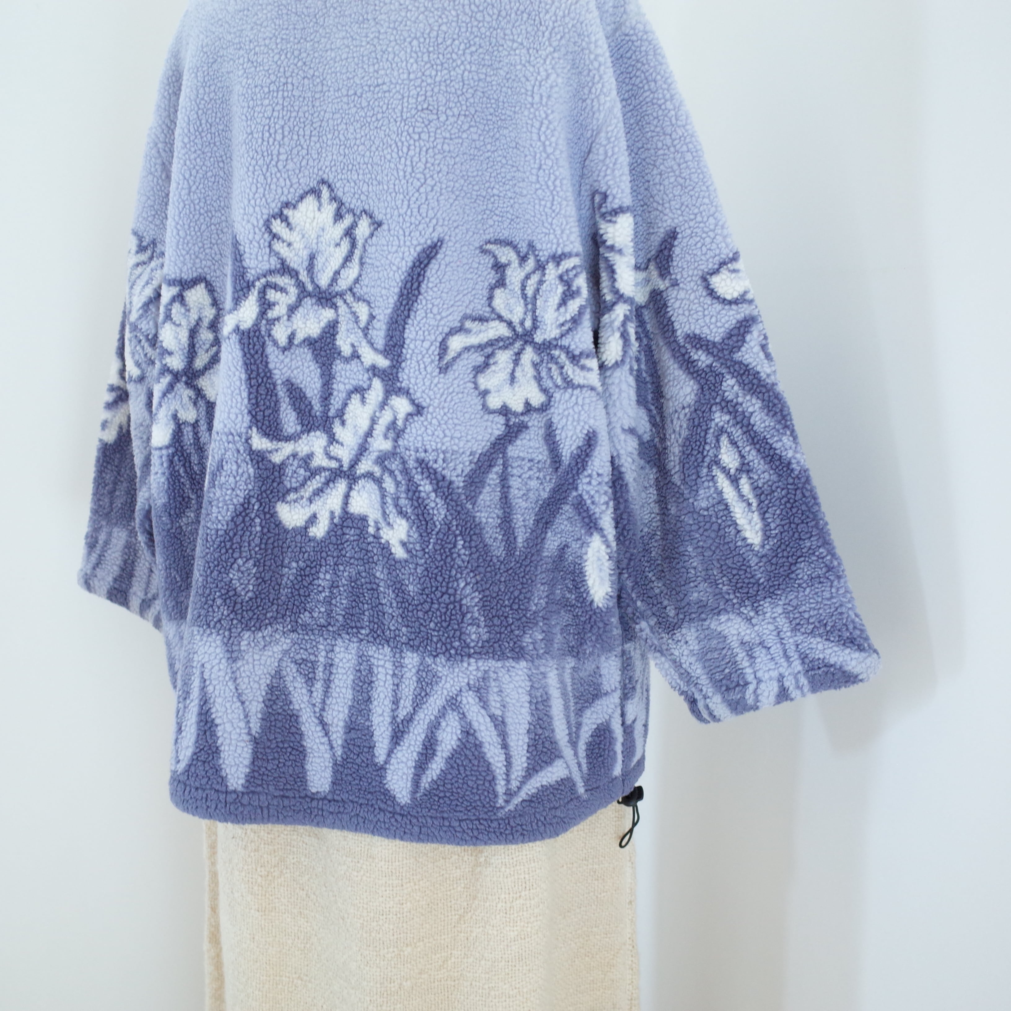 さらっと羽織るのにちょうどいい、程よくゆったりとしたサイズ感のフリース。お花のプリントと配色もかわいい一枚です。デニムはもちろん、ロングスカートとのバランスもgood◎裾はゴムが入っているので、絞って着用も可能です。