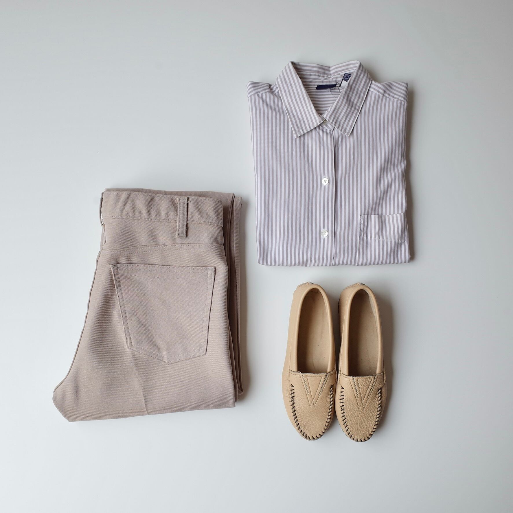 アメリカ製Levi'sの"STA-PREST"の517。通称スタプレは1964年にリーバイスから発売されたセンタークリースの入ったスラックスパンツです。ちょうどこの頃、家庭用洗濯機が普及した時期で、洗っても縮んだりシワにならないことから重宝され、ジャケットと合わせられる品の良さからも人気が高まり当時のアイビーファッションのマストアイテムとなりました。