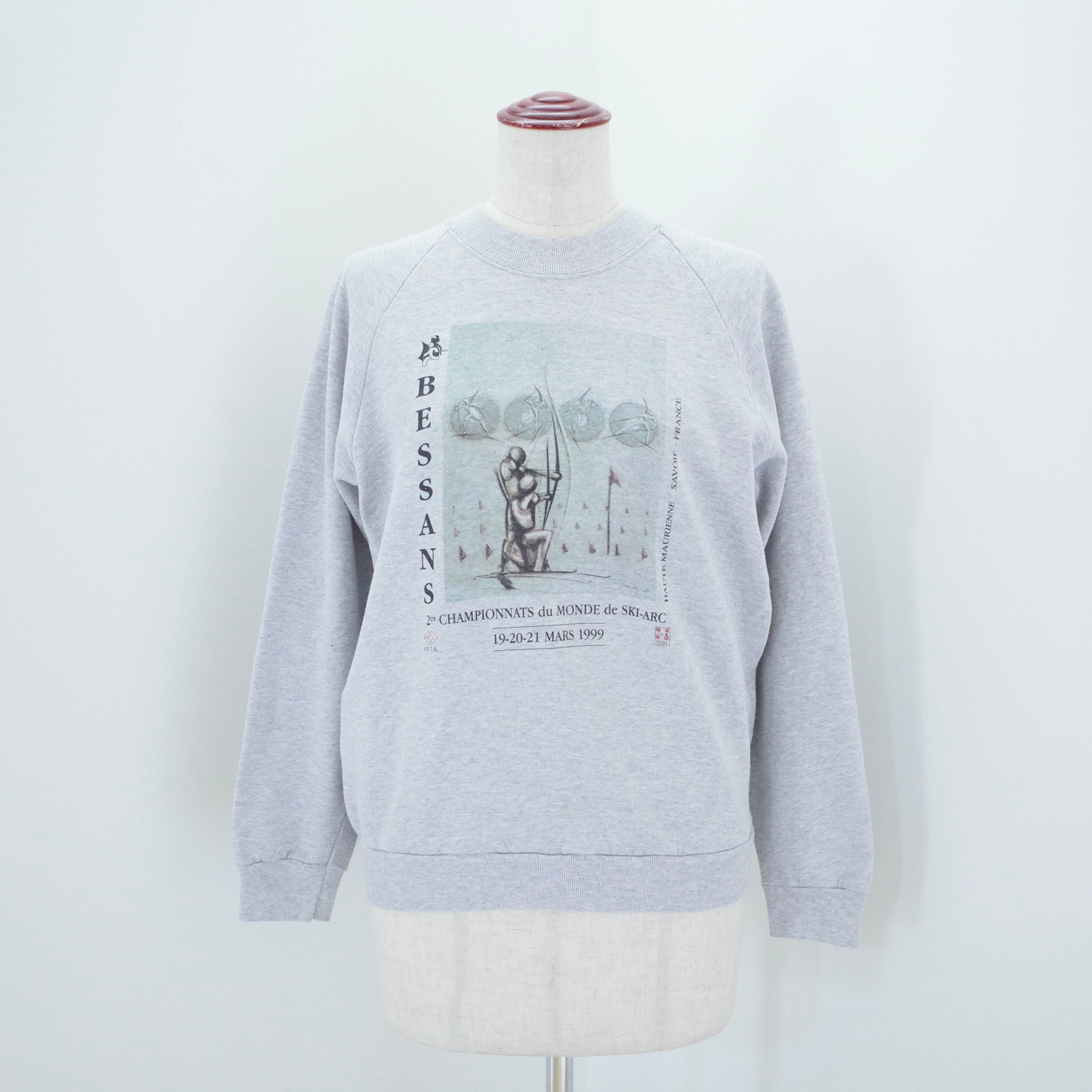 90年代アイルランド製フランスで行われたスキー大会のスウェット。ボディはアメリカのメーカーSCREEN STARS by FRUIT OF THE LOOM。アメリカのプリントスウェットとはひと味違ったユーロスウェットです。