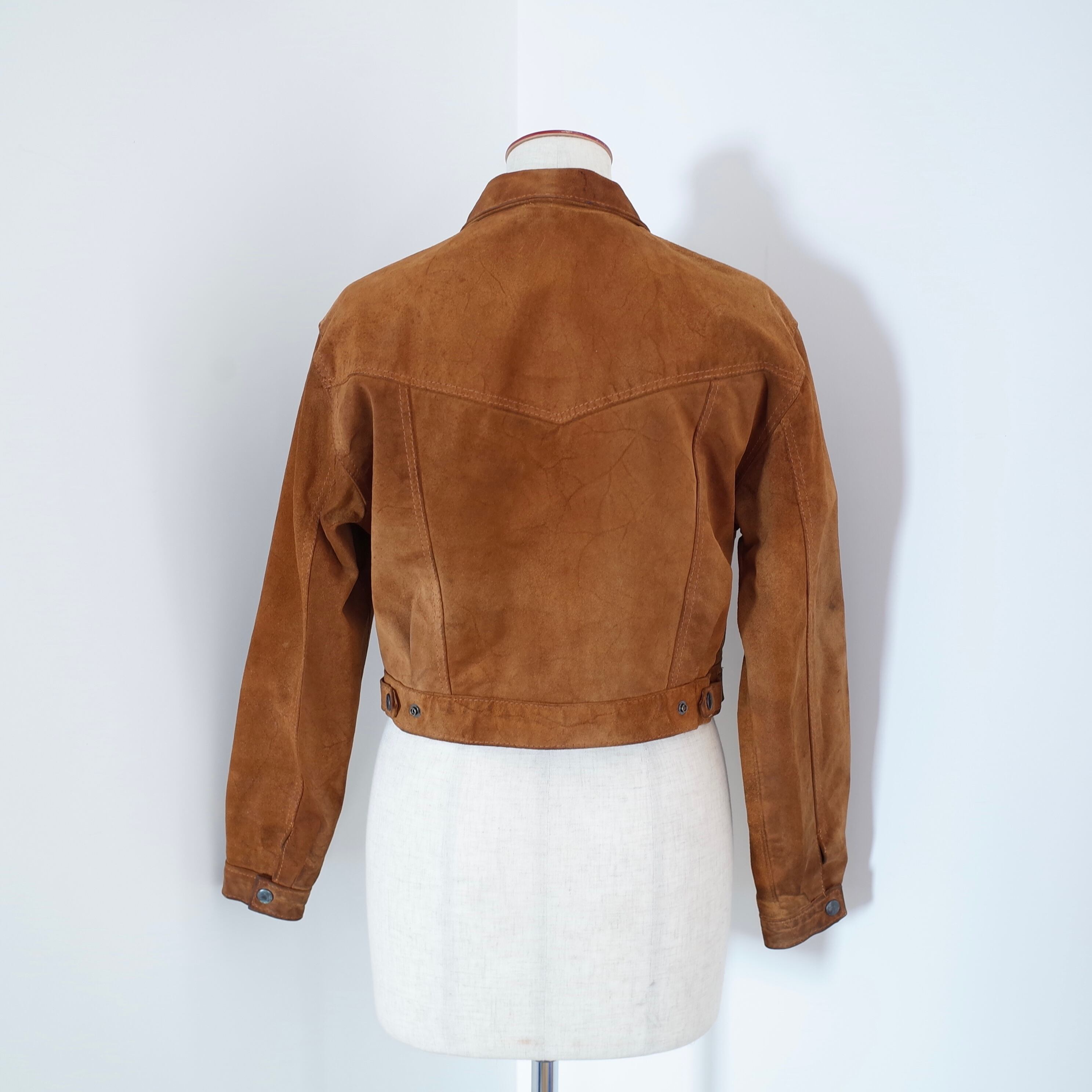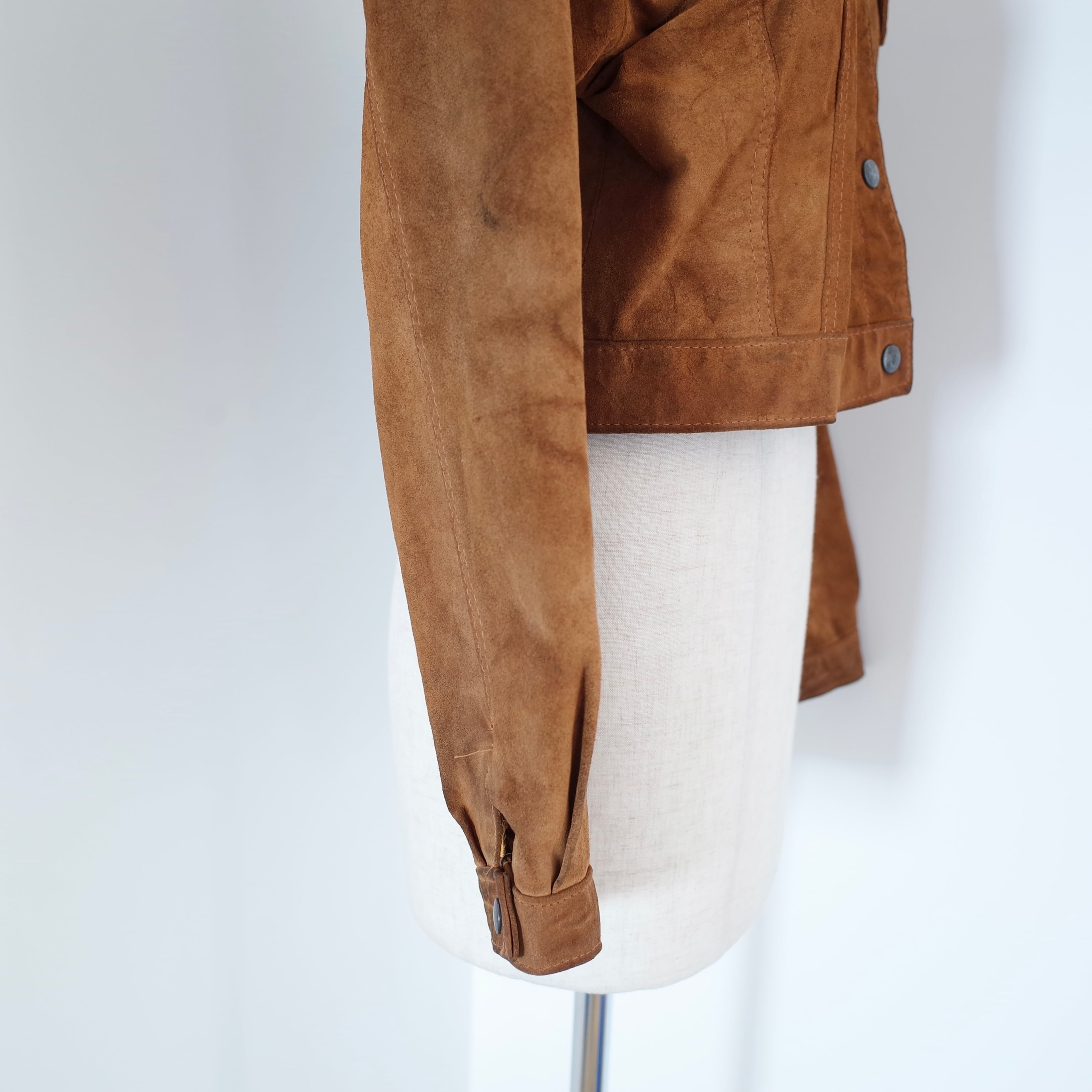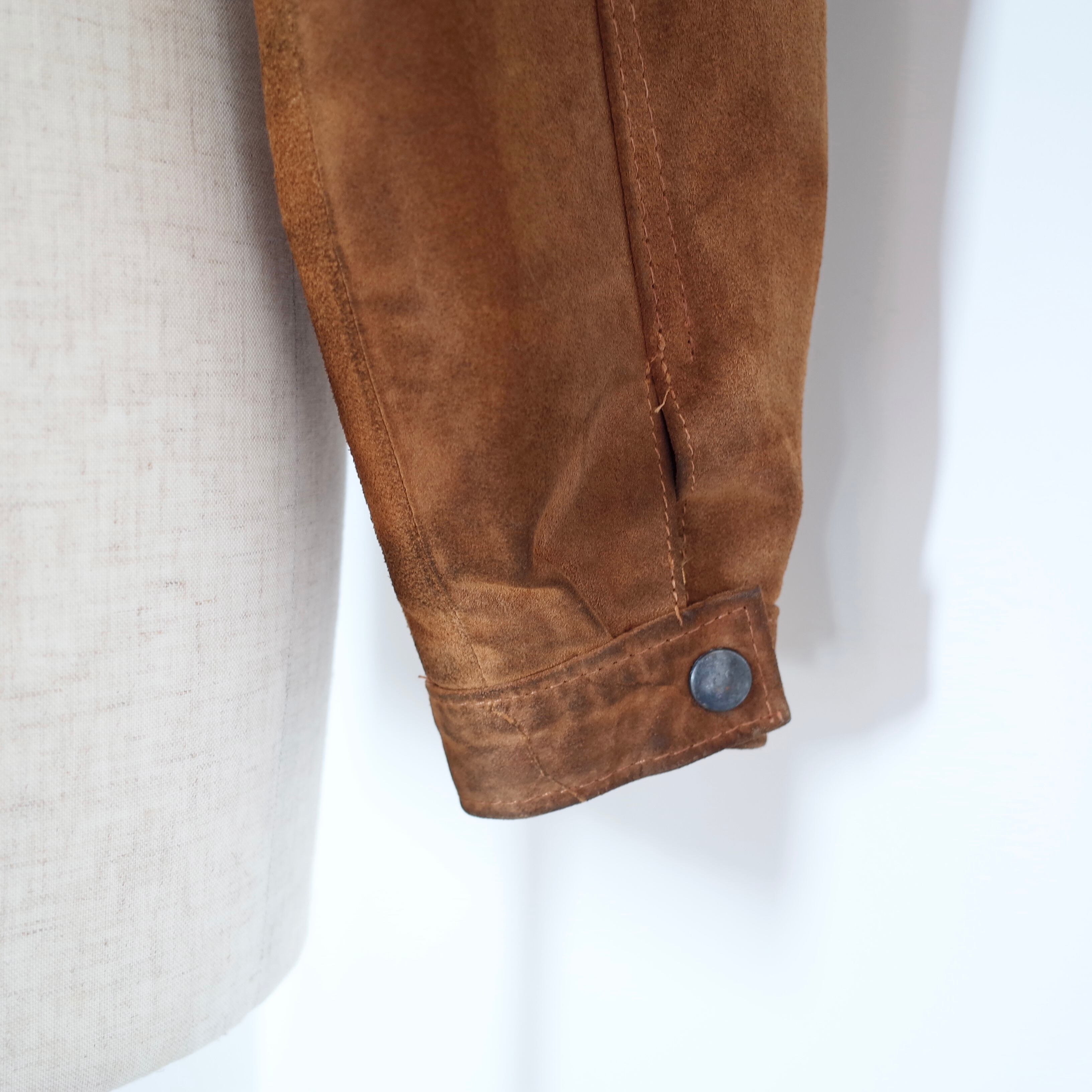 イングランド製スエード素材の丈が短めなジャケットです。ハイウエストのボトムやワンピースの上から羽織ってもバランスgoodです。
