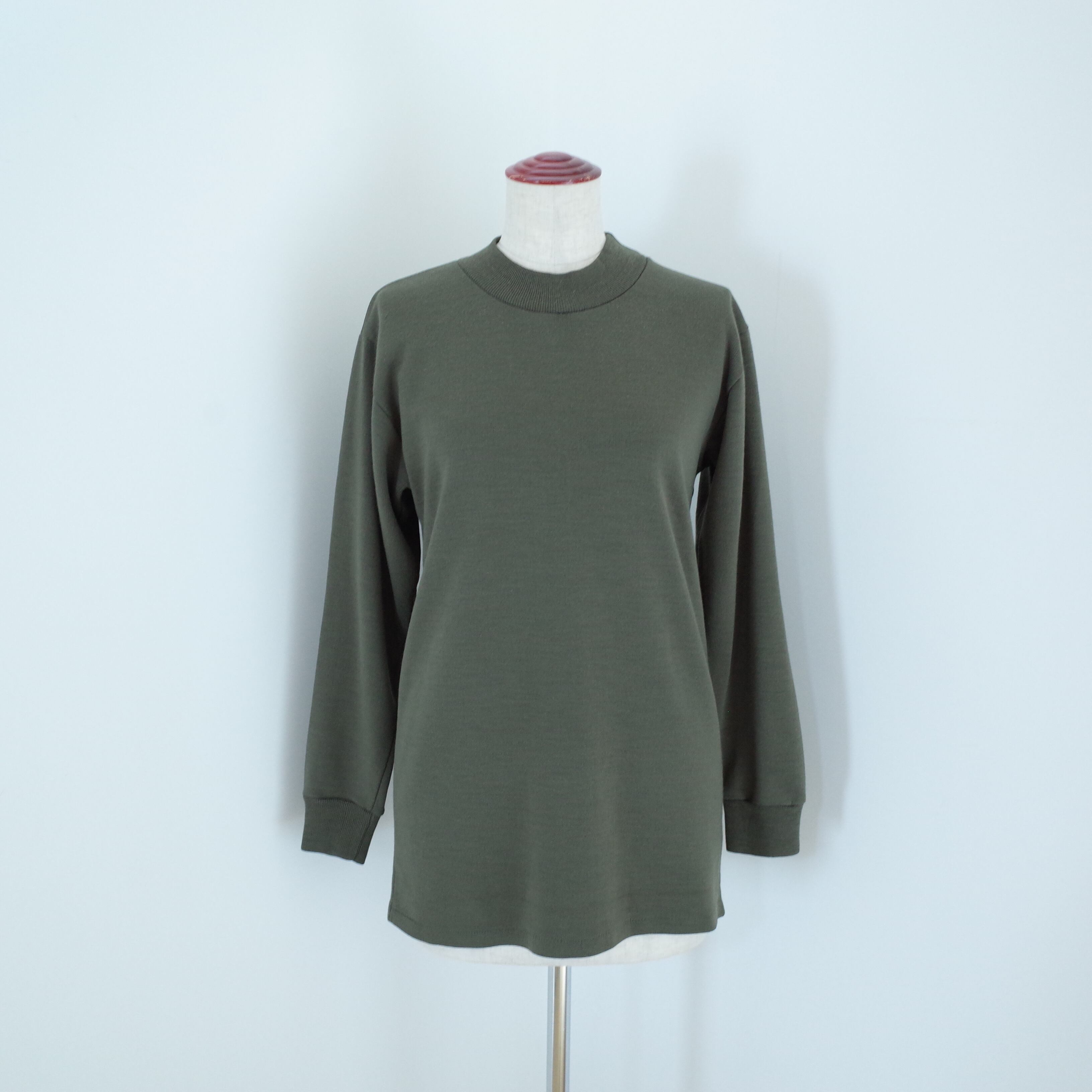 1979年BEGETEX製ベルギー軍のミリタリーサーマルです。しっかりとした生地感のウール混アクリル素材。ネックが太めのリブになっており、モックネックの様なディテールです。丈が長めで、デザインもシンプルな為レイヤードのベースとしても便利です。ボトムにタックインしても◎使い勝手の良いミリタリーのトップスです。