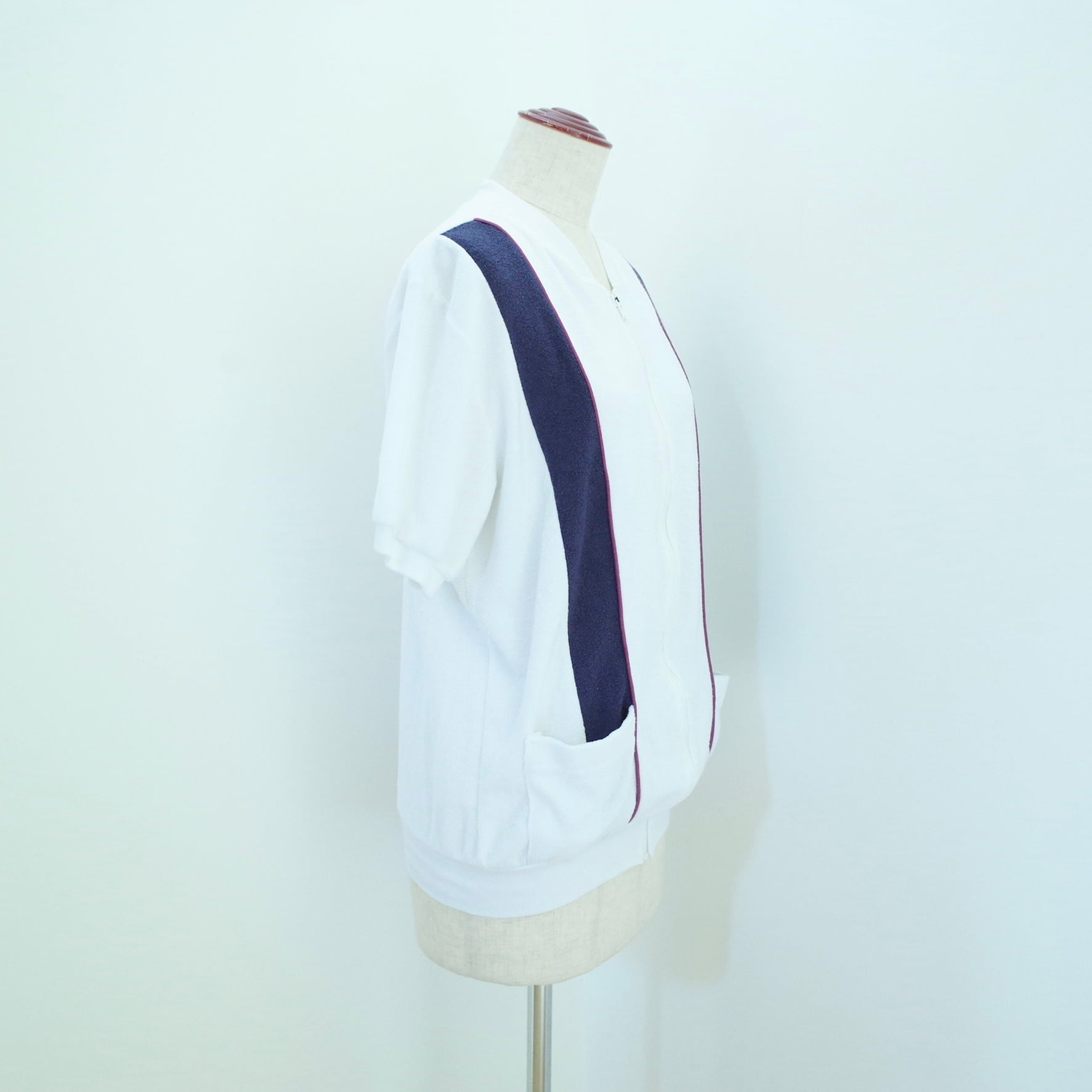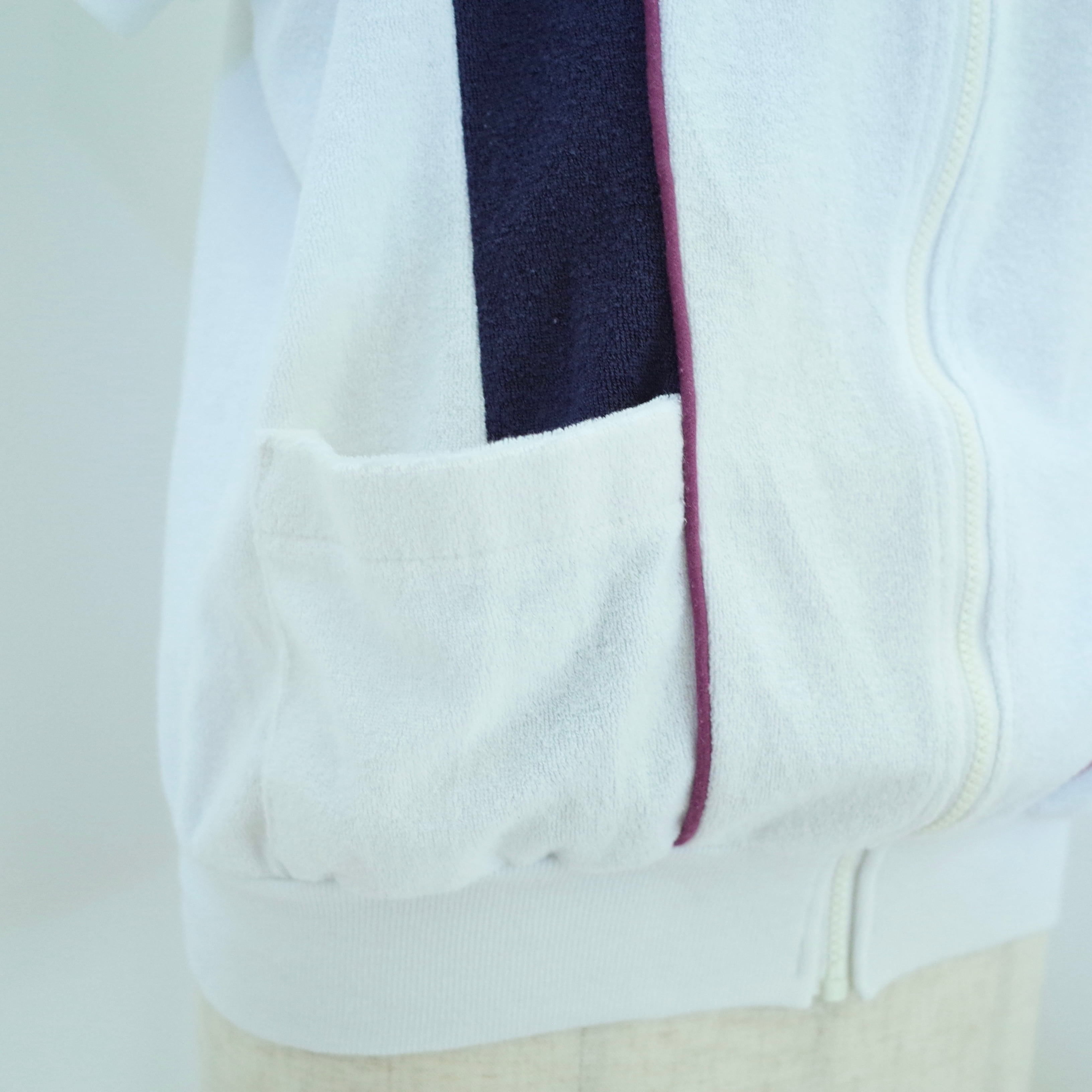80年代製、アメリカで愛されたJantzenのパイル生地のジップアップトップス。レトロなデザインが今っぽく、コーディネートのポイントになる一着です。柔らかな肌触りと軽い着心地は、春から夏にかけて活躍してくれること間違いなし。タンクトップやTシャツの上から羽織ったり、水着の上にも◎スポーティーでデザイン性の高い一枚です。