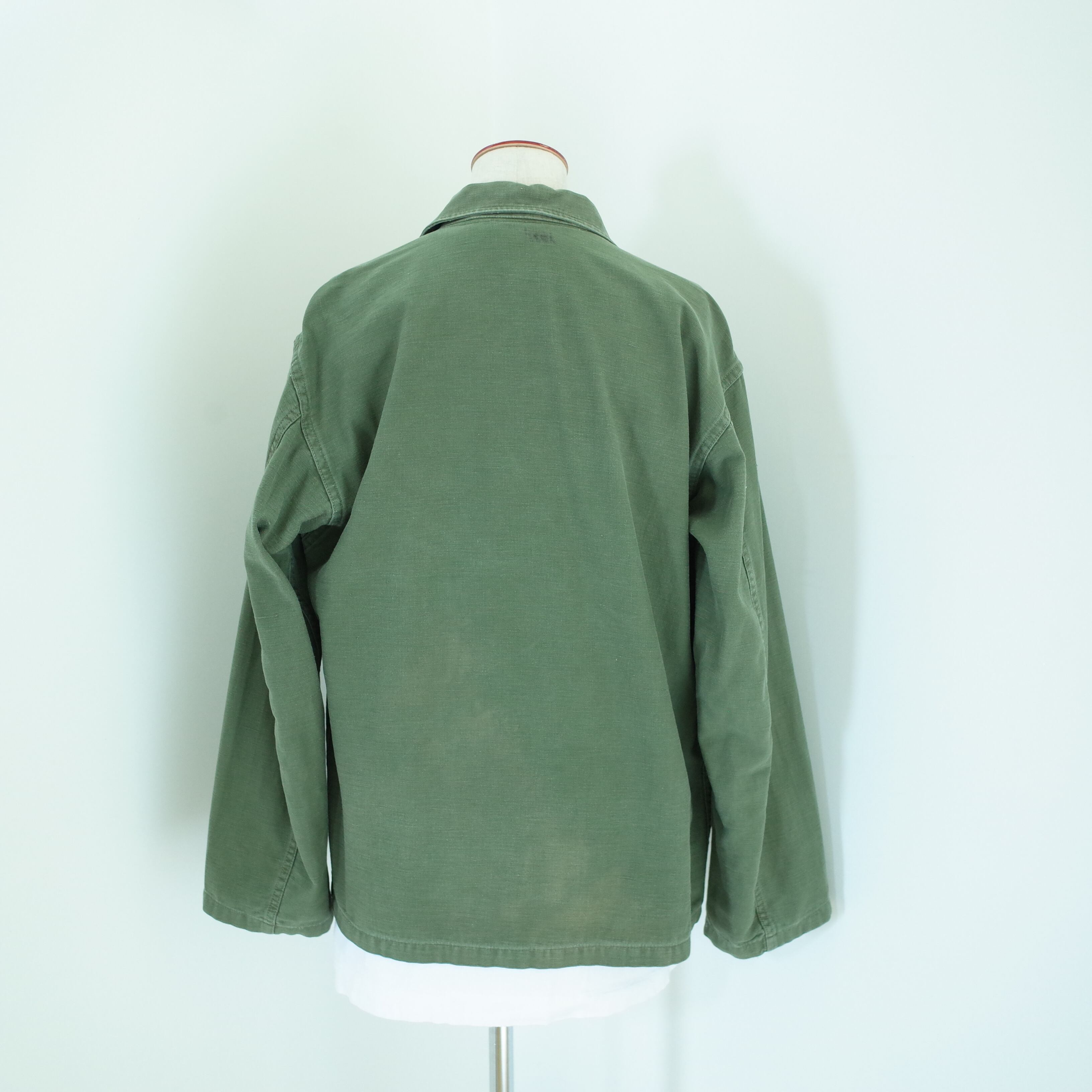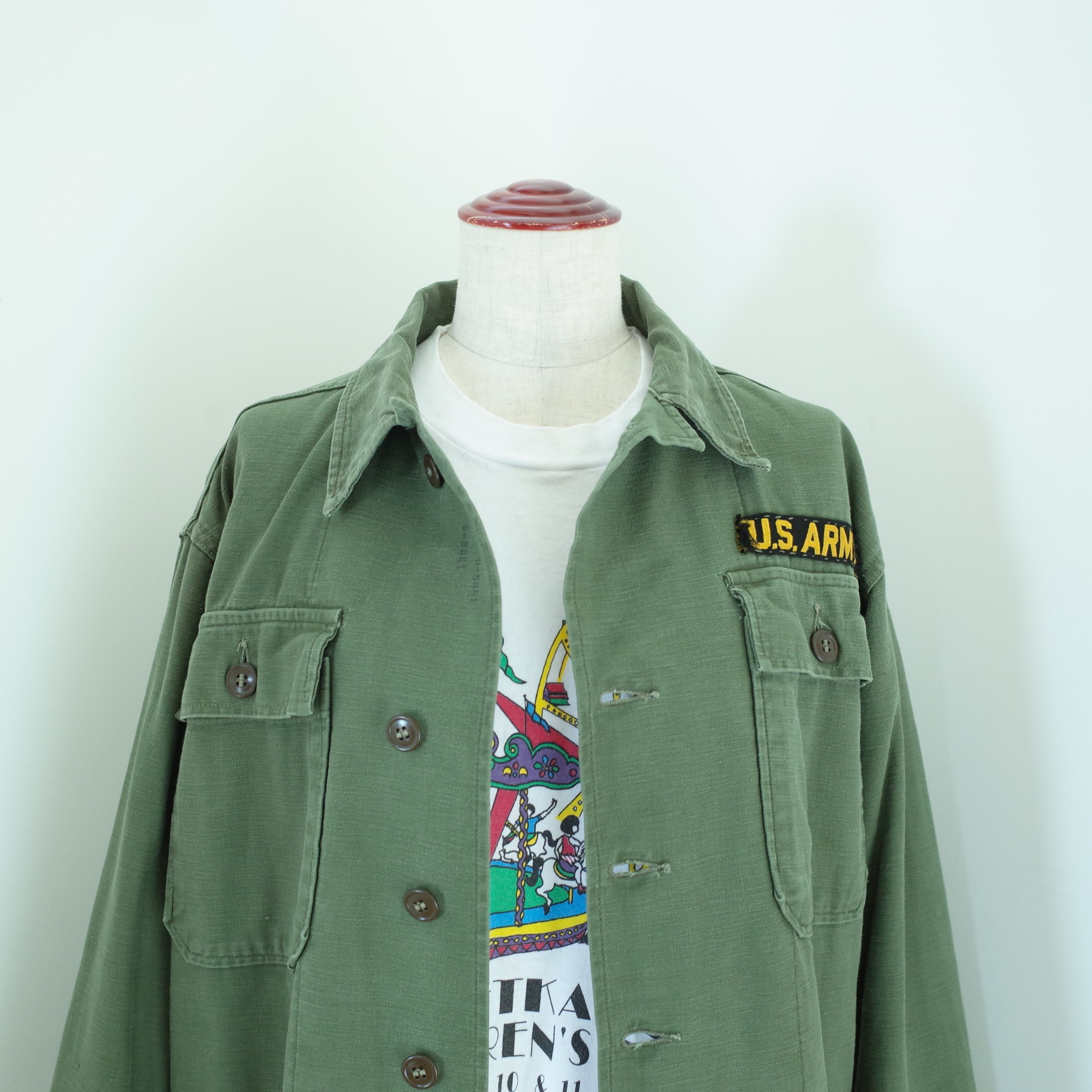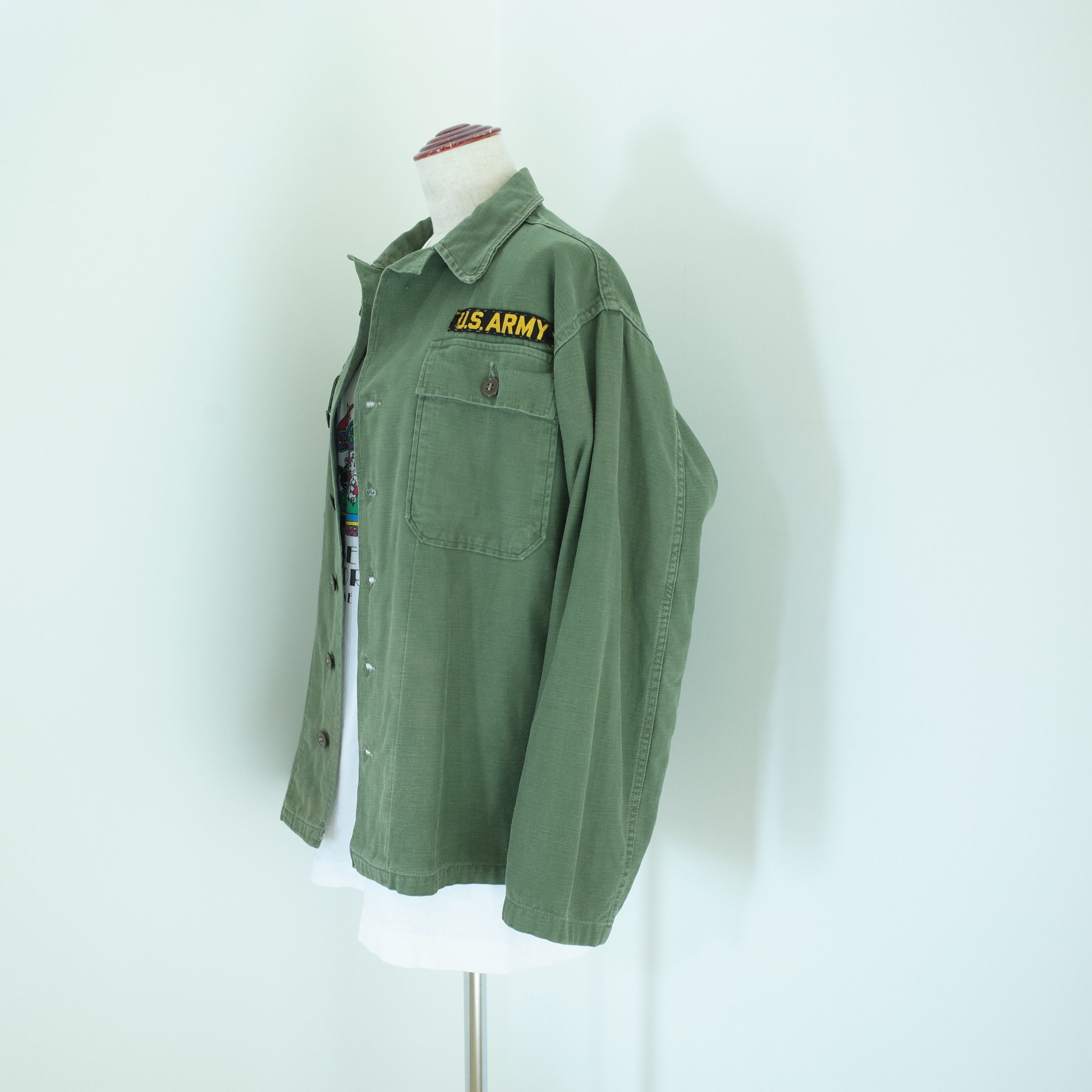 アメリカ軍のユーティリティシャツ。女性が羽織るのにちょうど良いグッドサイズです。ミリタリーらしい無骨な雰囲気で、カジュアルからスポーティまで幅広いコーディネートに使える古着の定番アイテムです。