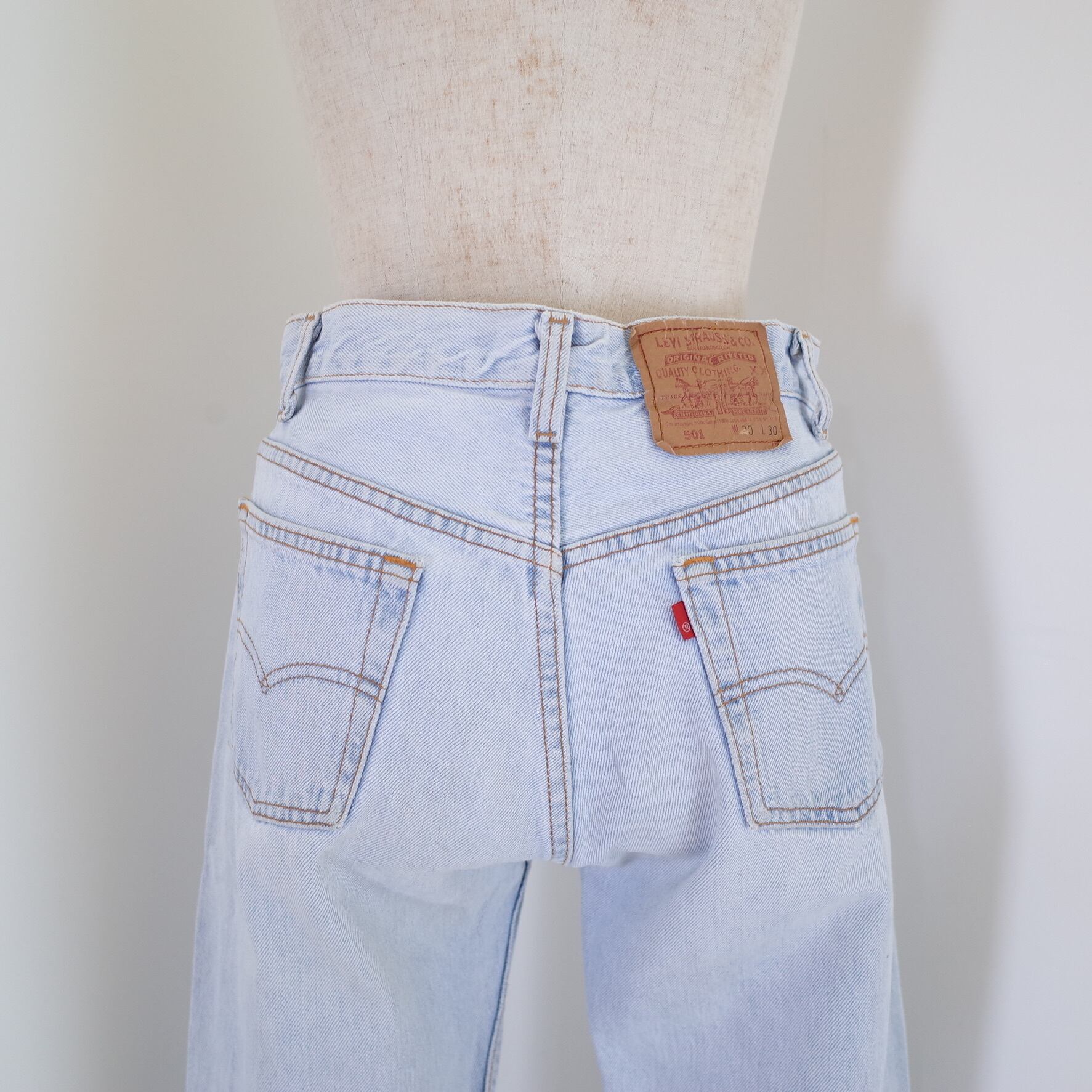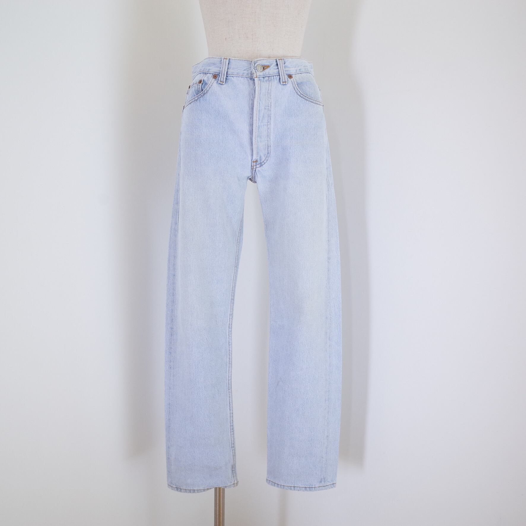 90年代USA製Levi's501のデニムパンツです。貴重なアメリカ製で色落ちしたライトブルーのカラーがこれからの季節にぴったりの一本。Tシャツとサンダルで爽やかに履きたいジーンズです。