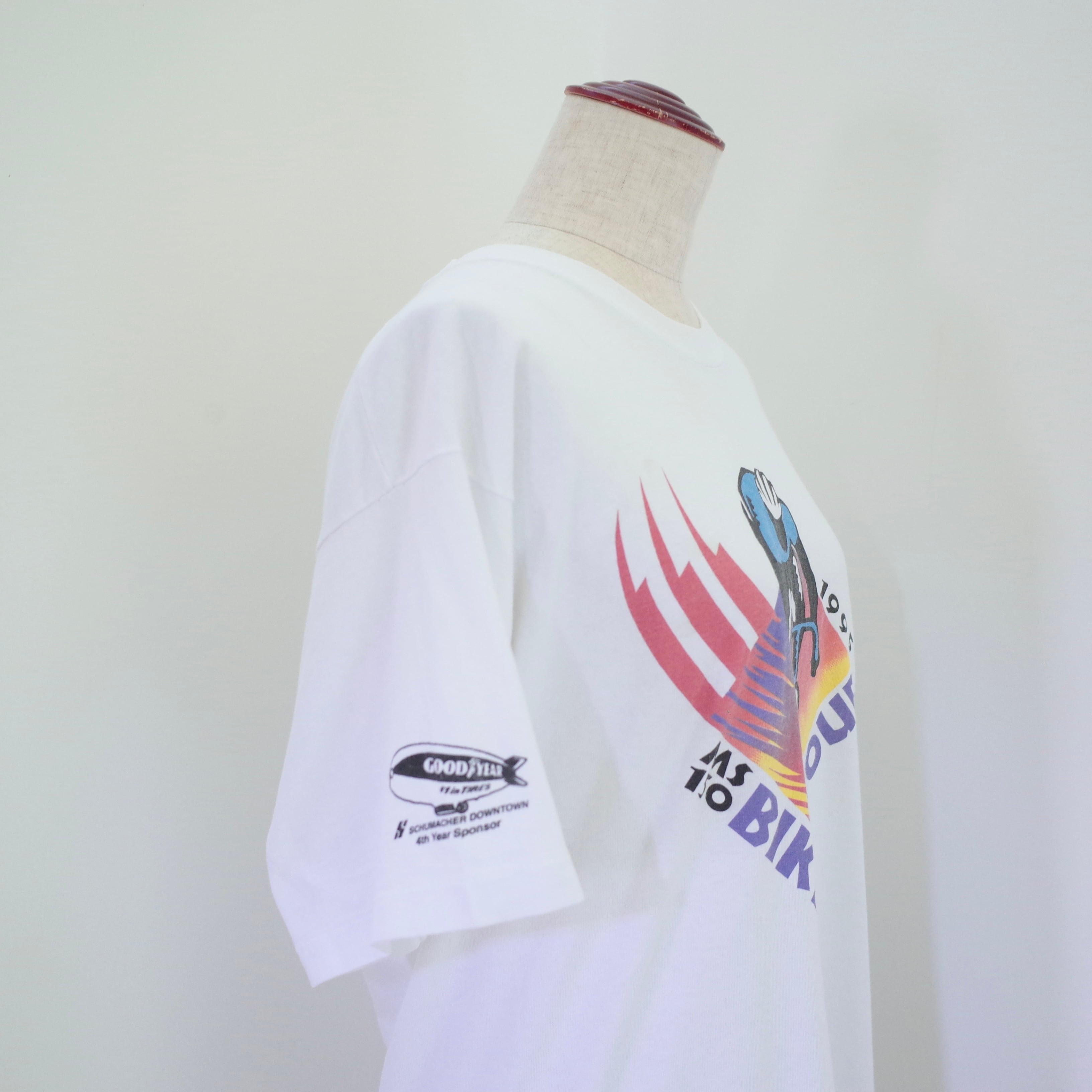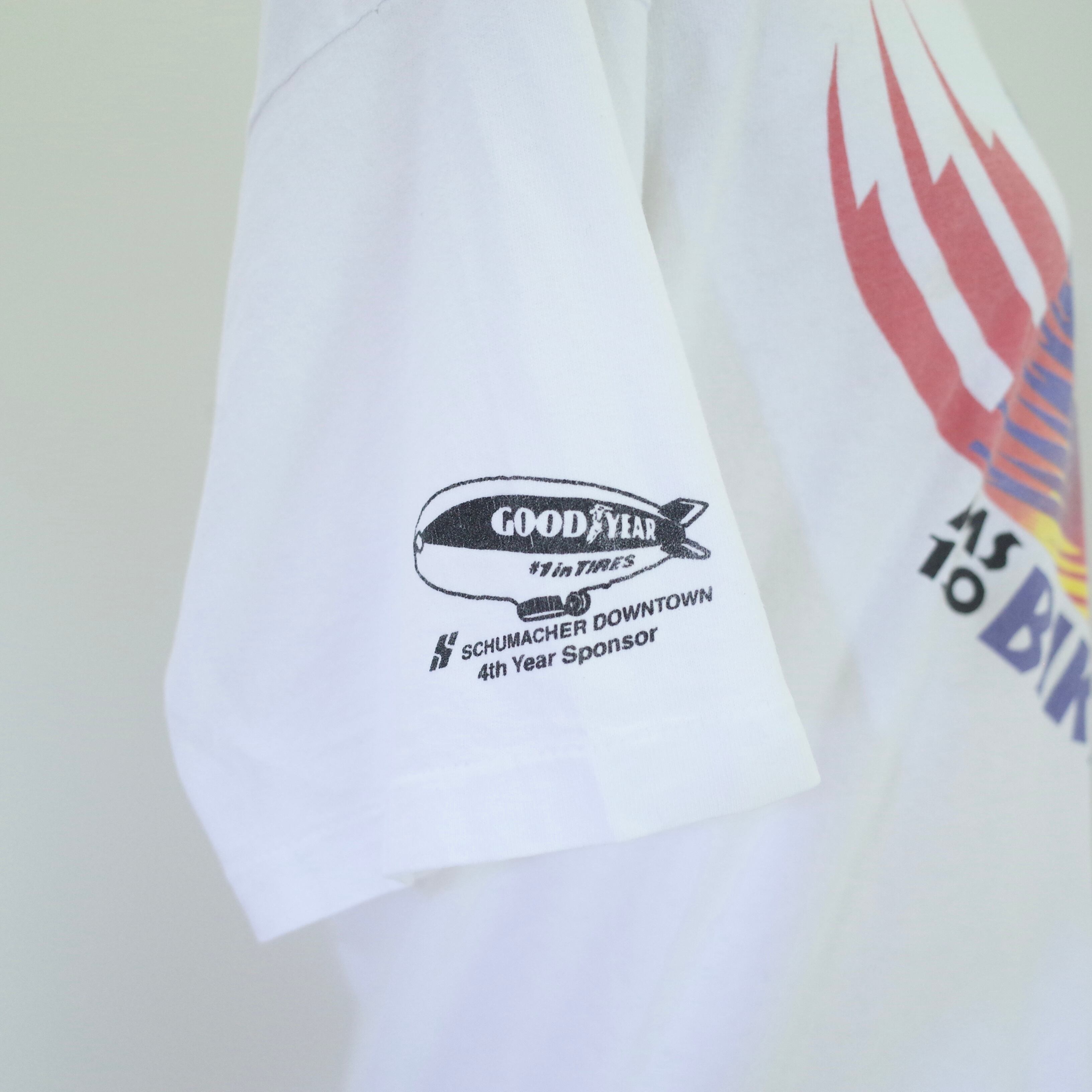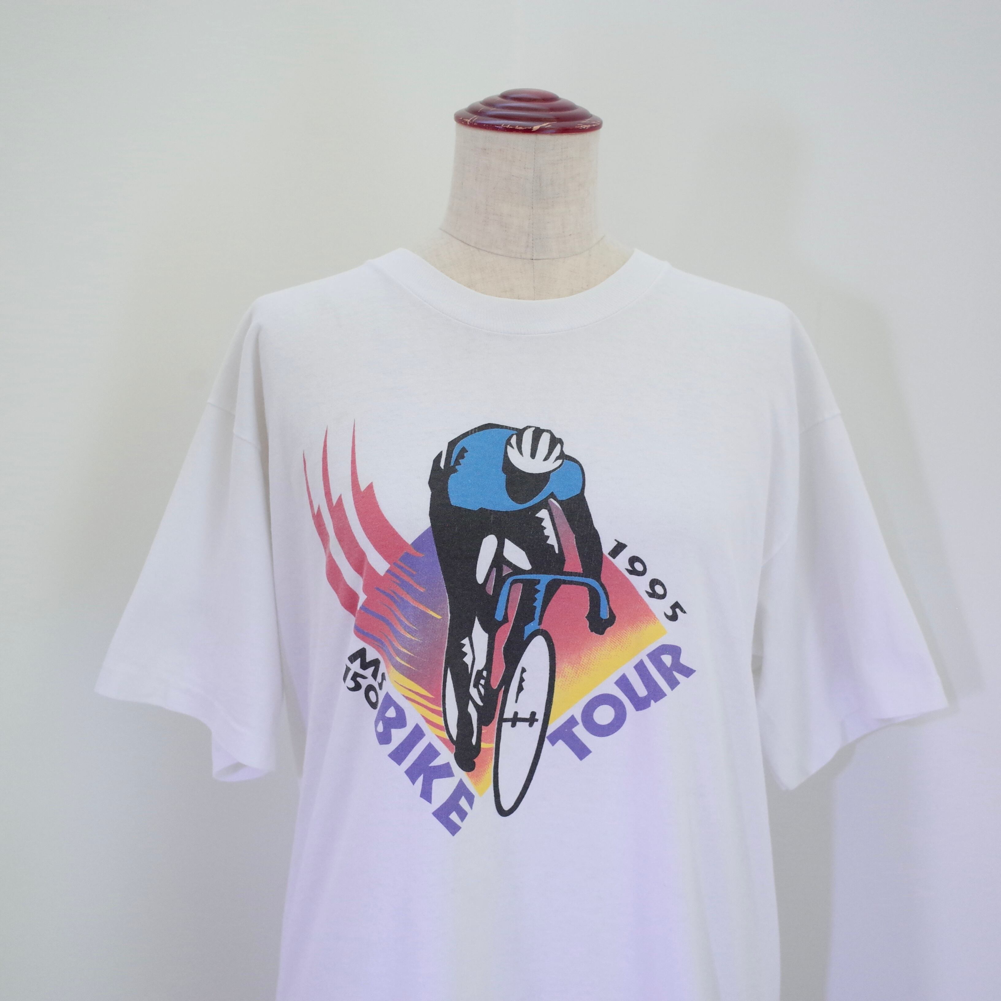 90年代アメリカ製FRUITS OF THE LOOMボディの、MS 150 バイクツアー 1995のTシャツです。スポンサー企業のロゴがたくさん入ったオールコットンの一枚です。