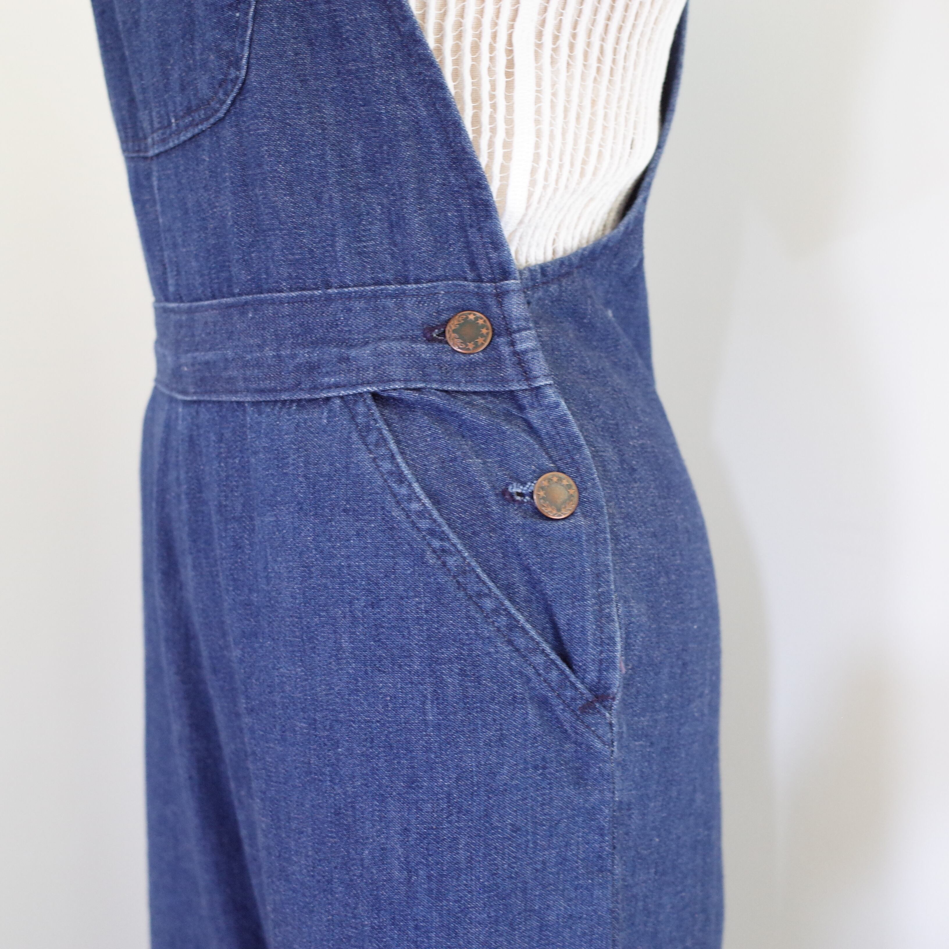 70年代Searsのオーバーオール。フレアレングスで70sムード漂う一着。体に沿うようなタイトめなシルエットで、この夏Tシャツやタンクトップと合わせてかわいいオーバーオールです。