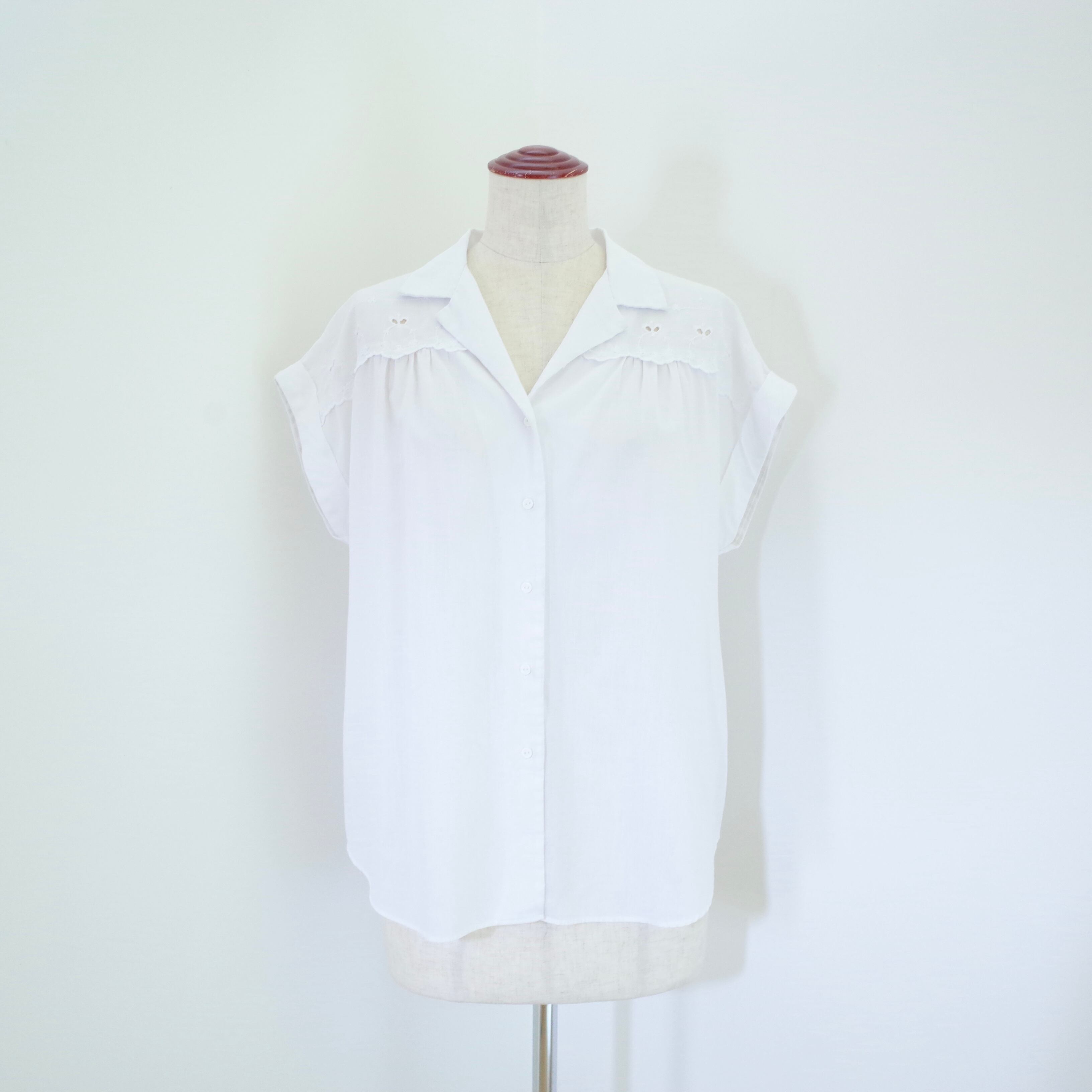 肩のレースが程よくガーリーなフレンチスリーブのブラウス。薄手の素材感も涼しげな一枚です。さり気なく肩先や二の腕をカバーしてくれるフレンチスリーブ。可愛らしい上品な印象にもなります。デニムにタックインしたカジュアルなスタイリングも◎
