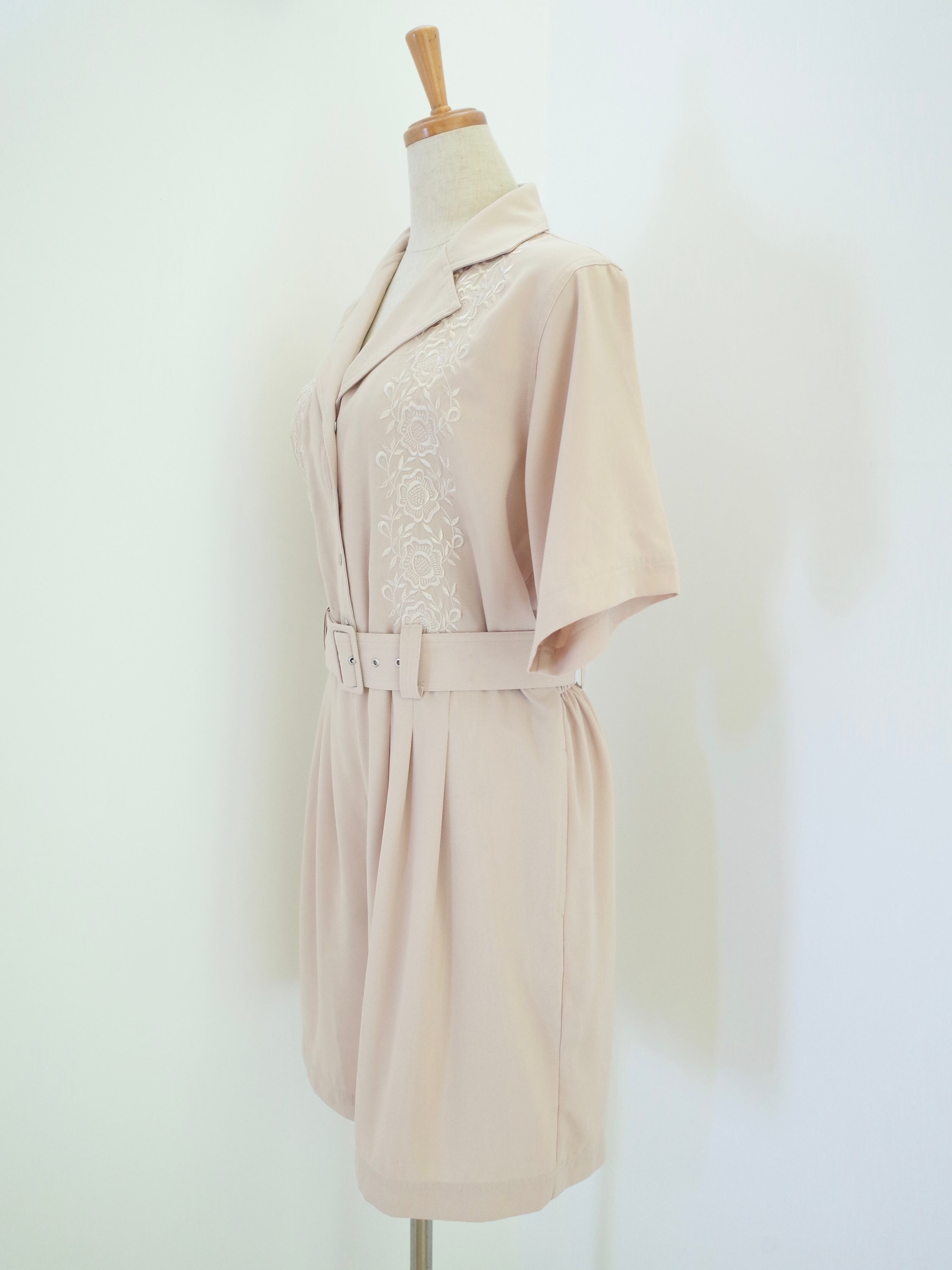 同色の刺繍がさり気なくてかわいいサロペット。ポリエステル素材でシワを気にせず、アイロンも不要。無くなりがちな付属のベルトもしっかりと付いています。カゴバッグとサンダルで夏らしいスタイルに。秋はカーディガンやジャケットを羽織って、ロングブーツと合わせたスタイリングで◎秋まで着回し可能な一枚です。