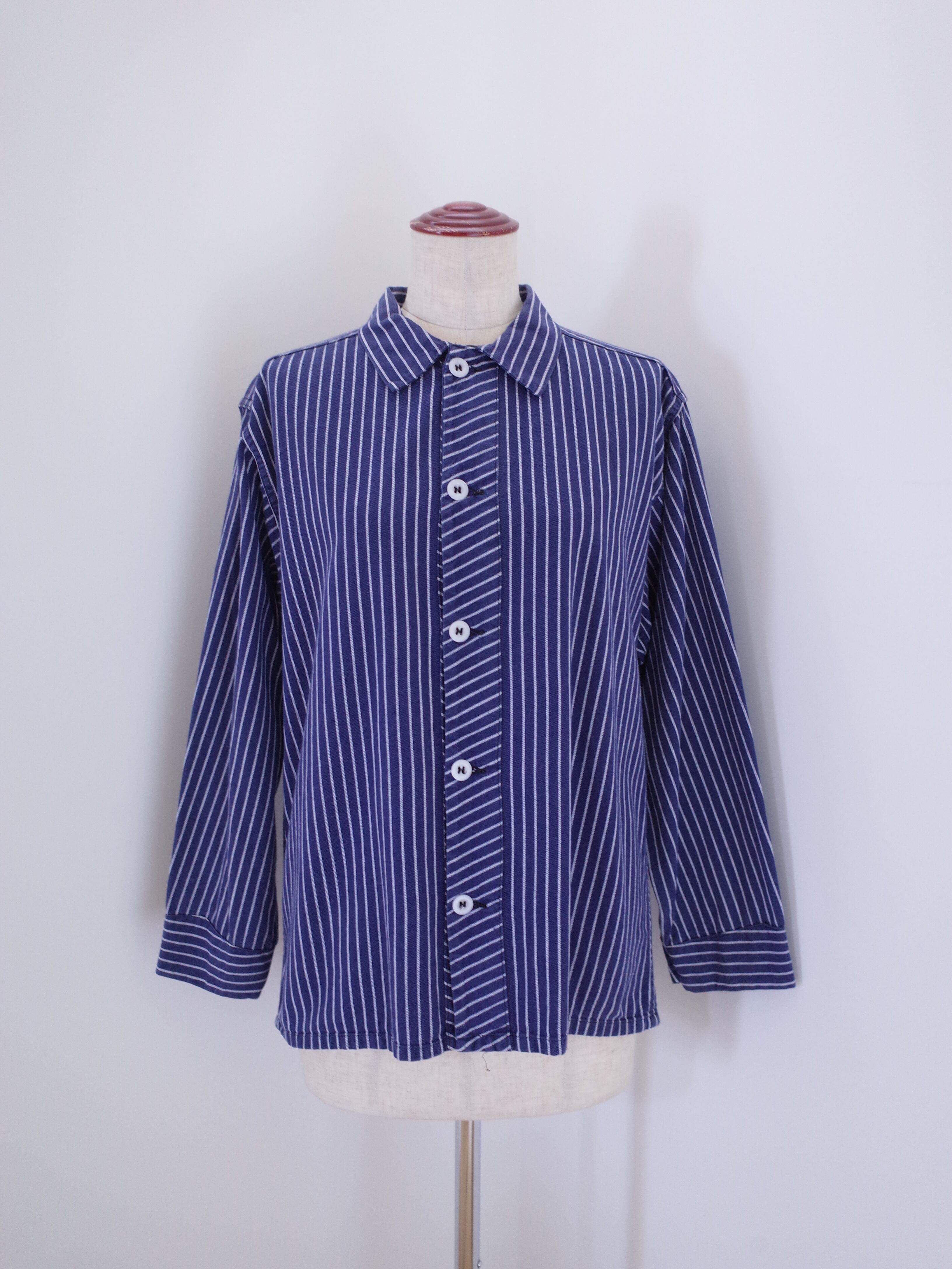 ユーロのフィッシャーマンシャツ。プルオーバータイプが多い中、こちらはシャツ仕様になっています。オールコットンのしっかりとした厚めの生地感がジャケットのようにも羽織れるシャツ。ワークシャツならではの、ガシガシ使えて洗える一枚です。