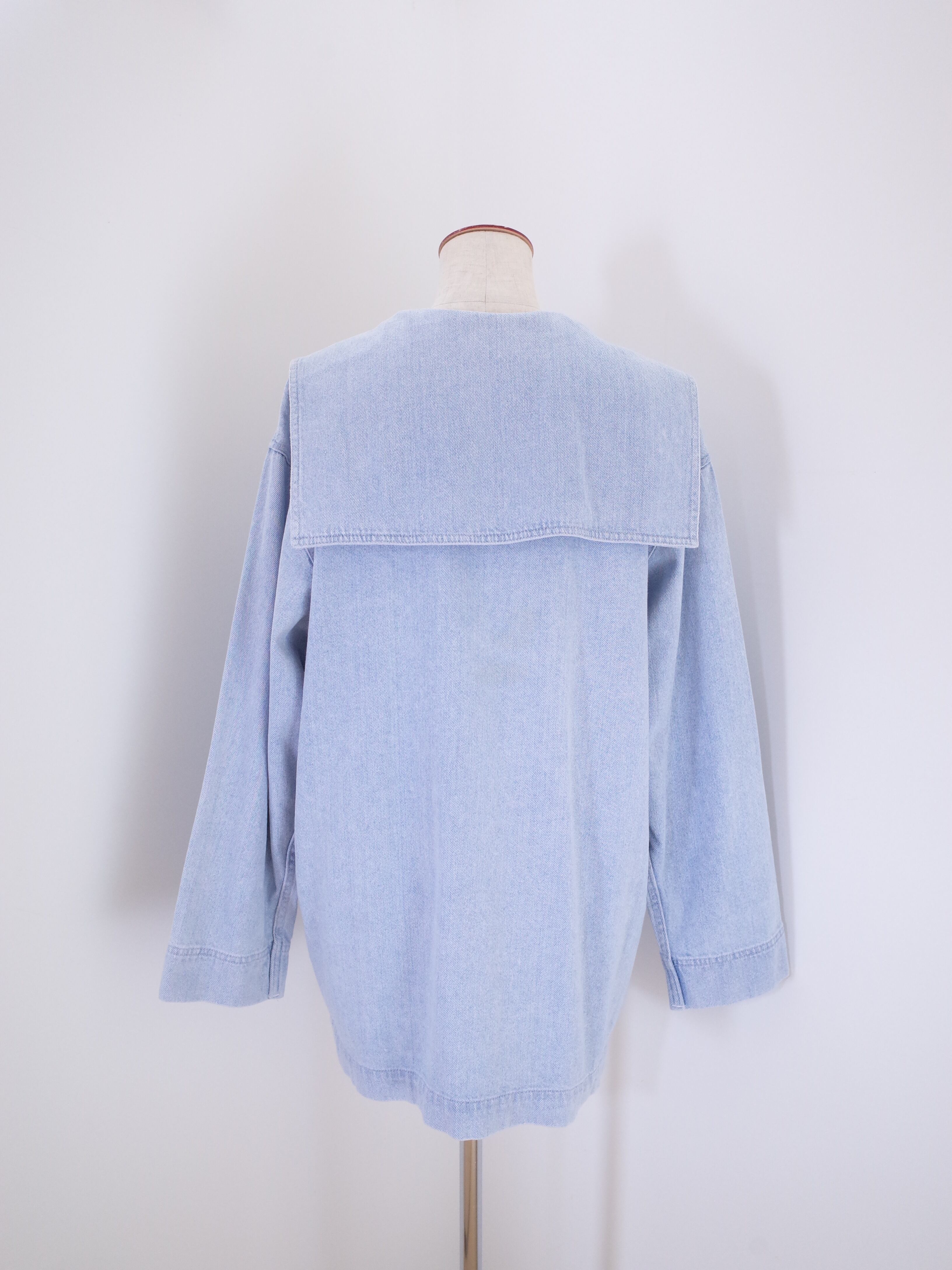セーラーカラーが珍しいディテールのジャケット。大きめなサイズ感でニットの上からでも羽織れます◎ロングスカートやオーバーオール、どんなボトムにもバランスよく合わせられる一枚です。