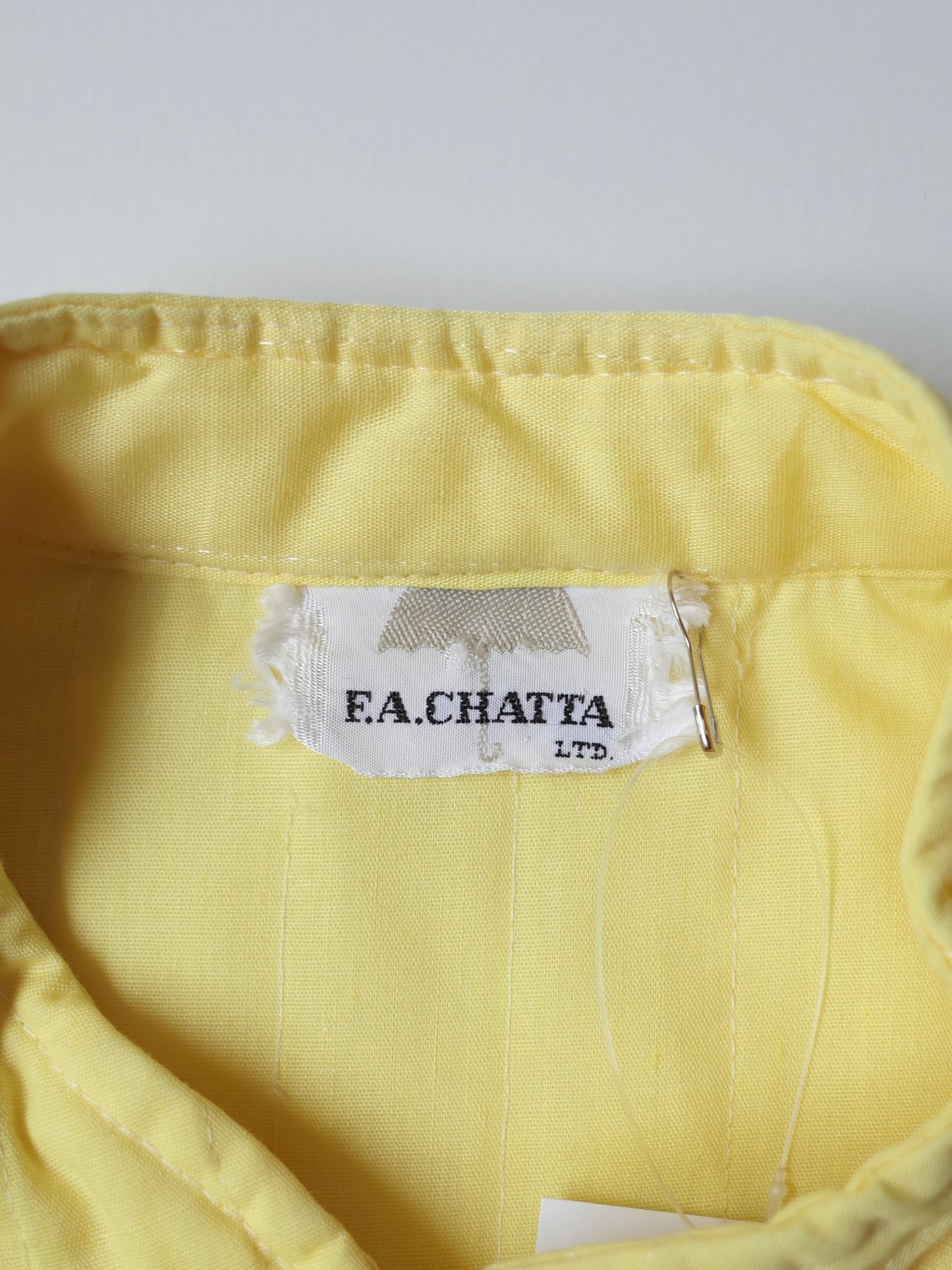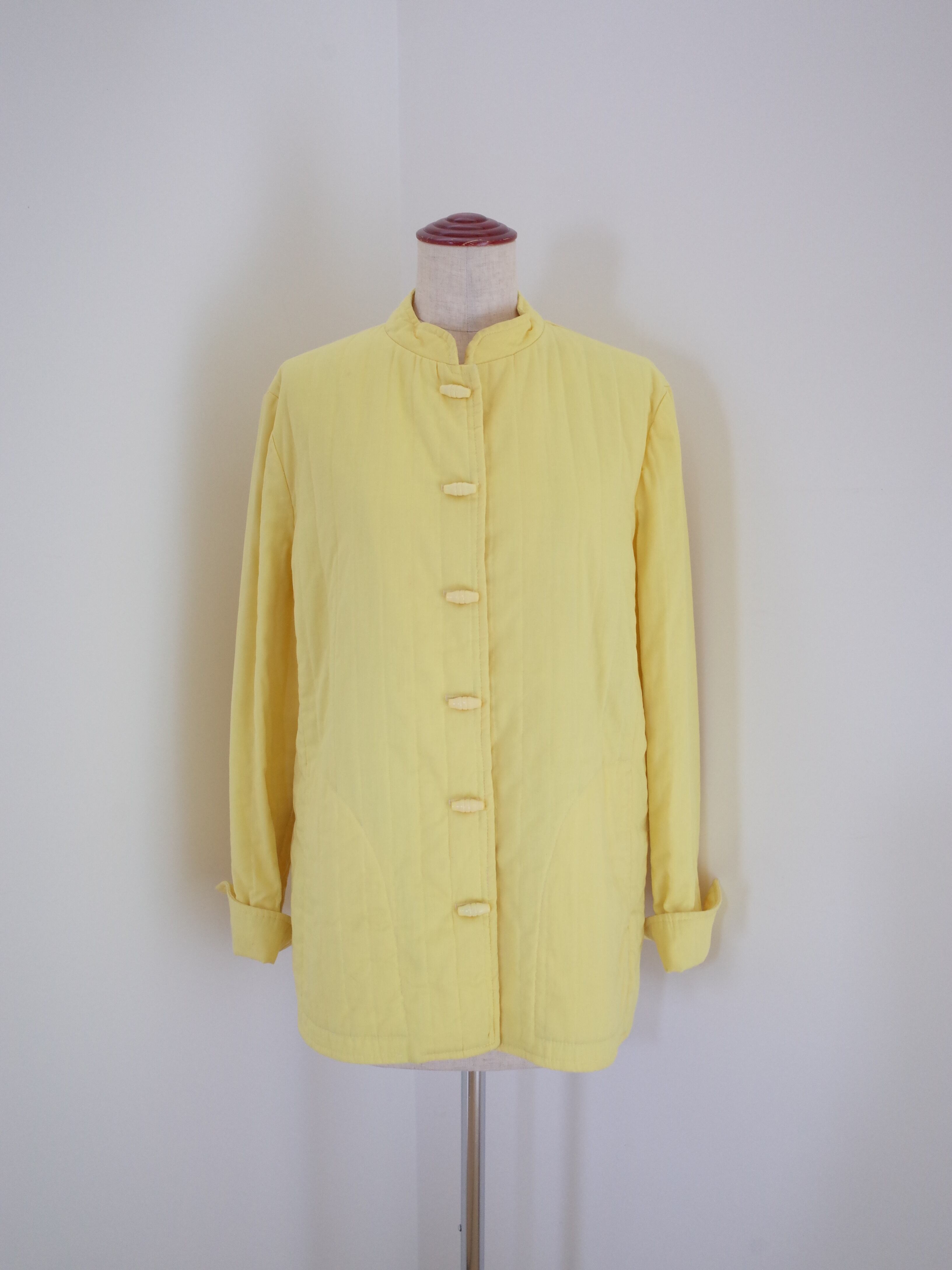 70年代アメリカ製F.A.CHATTA LTD.のキルティングジャケット。優しいイエローのカラーが気分を上げてくれる一着。すっきりとした品のある印象のチャイナカラー。トグル釦仕様となったオリエンタルな雰囲気も漂うジャケットです。