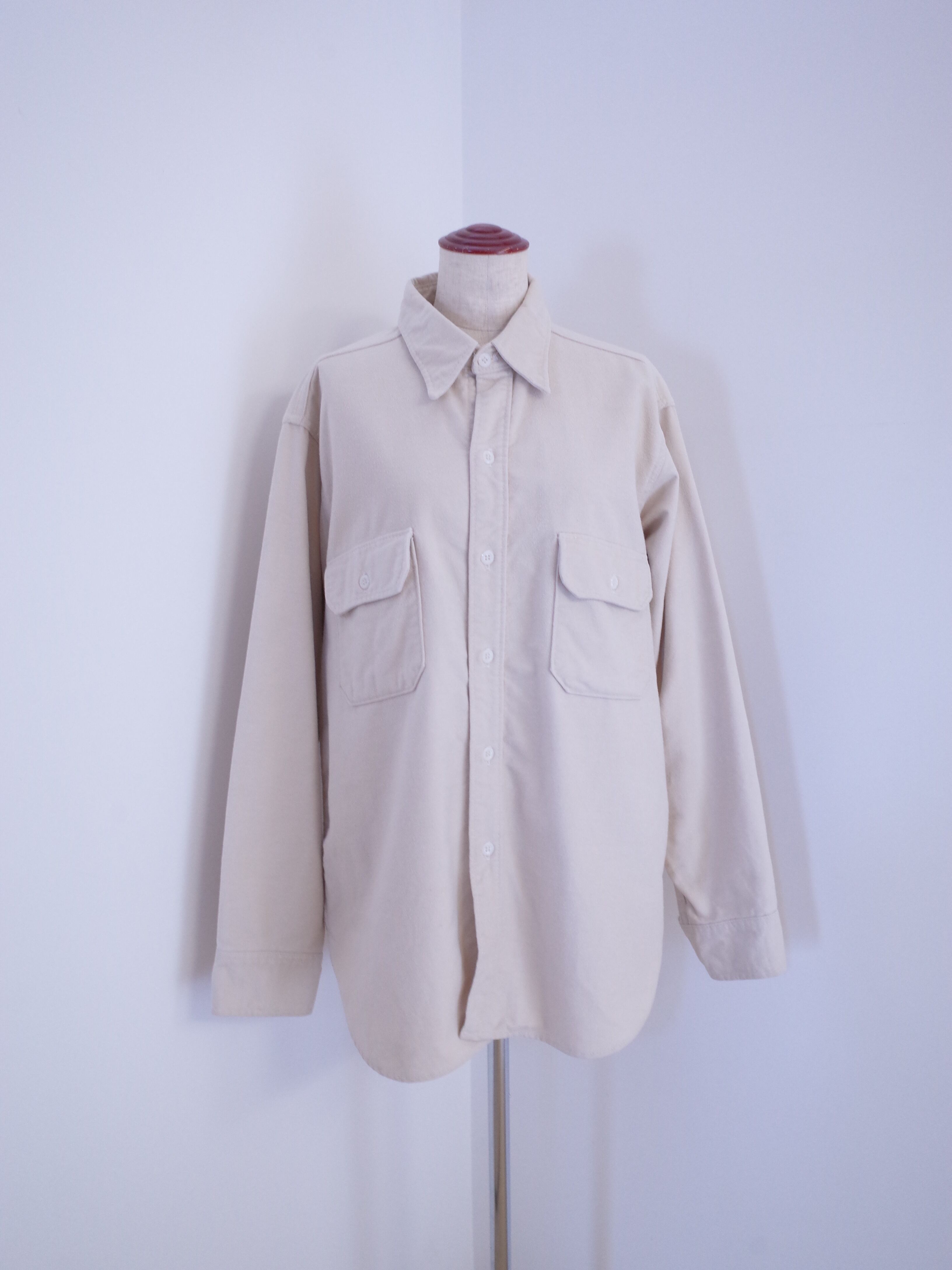 70年代アメリカ製Woolrich無地のネルシャツ。コットン素材で、しっかりとした厚手のフランネルの生地感。表面だけ起毛しているのでサラッと羽織れます。首を抜いて、オーバーなサイズ感で着崩して欲しい一枚です。