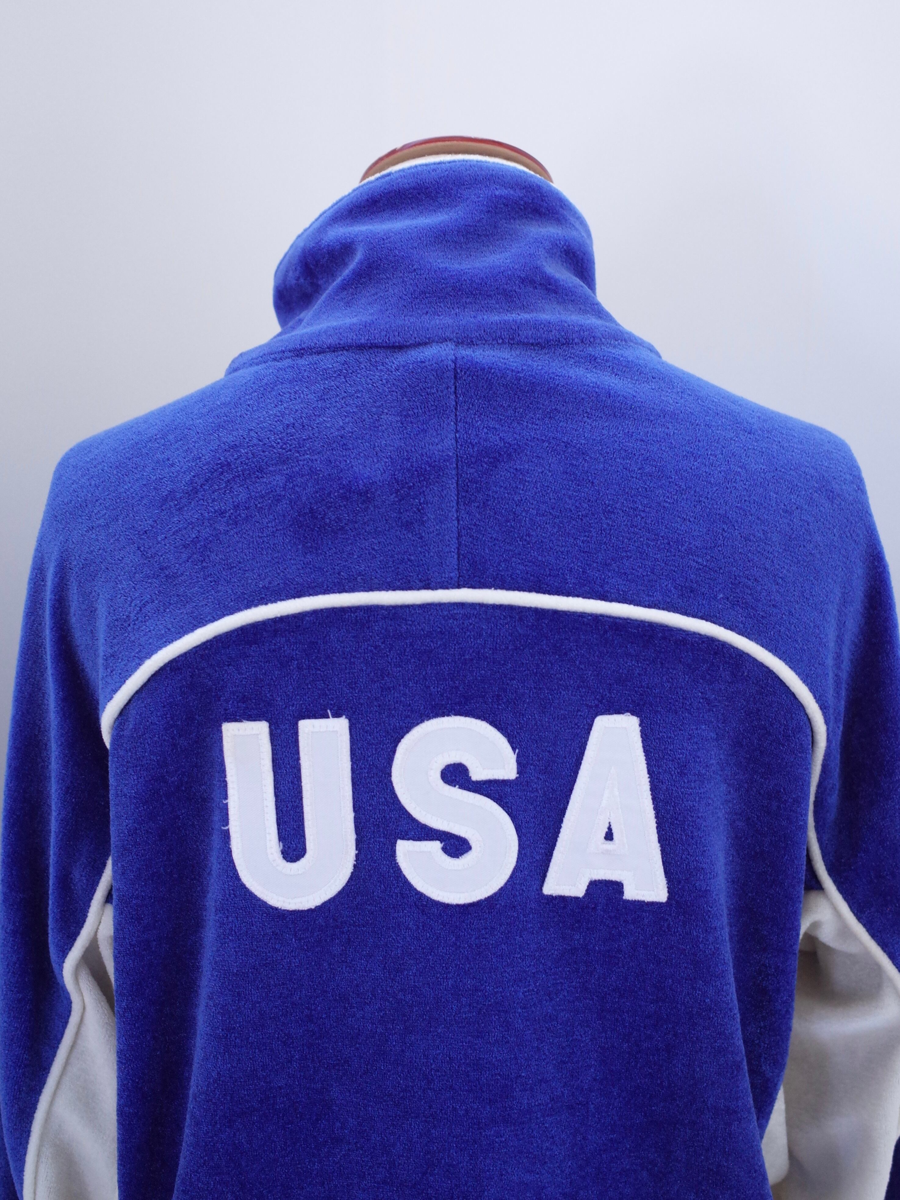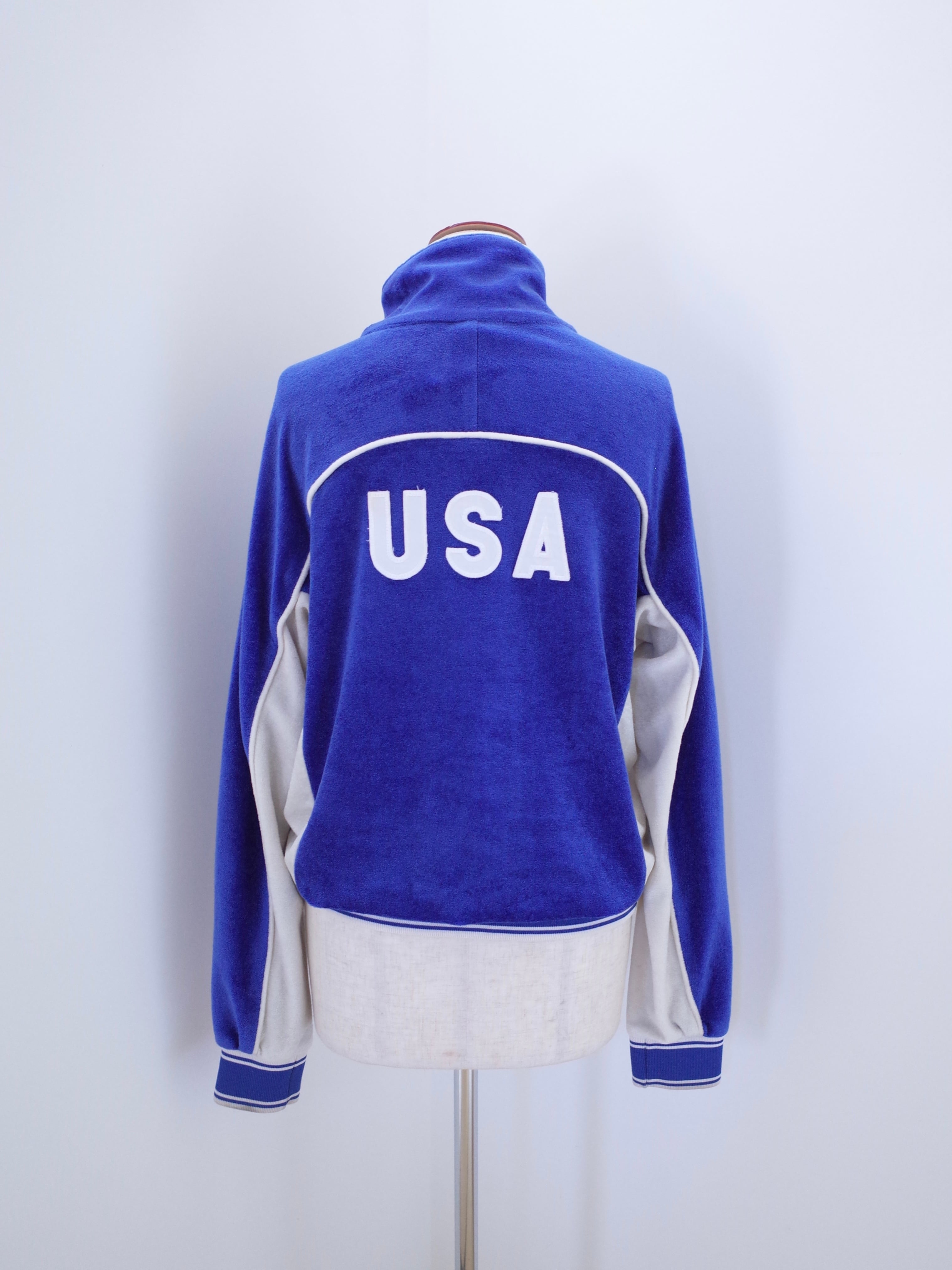 1984年のロサンゼルスオリンピック時に公式採用されたLevi'sのオリンピックジャージになります。ブルー×ホワイト切替のベロア素材で、光沢感のある質感。綺麗目なスラックスと合わせて、はずしのアイテムとしてもおすすめな一枚です。