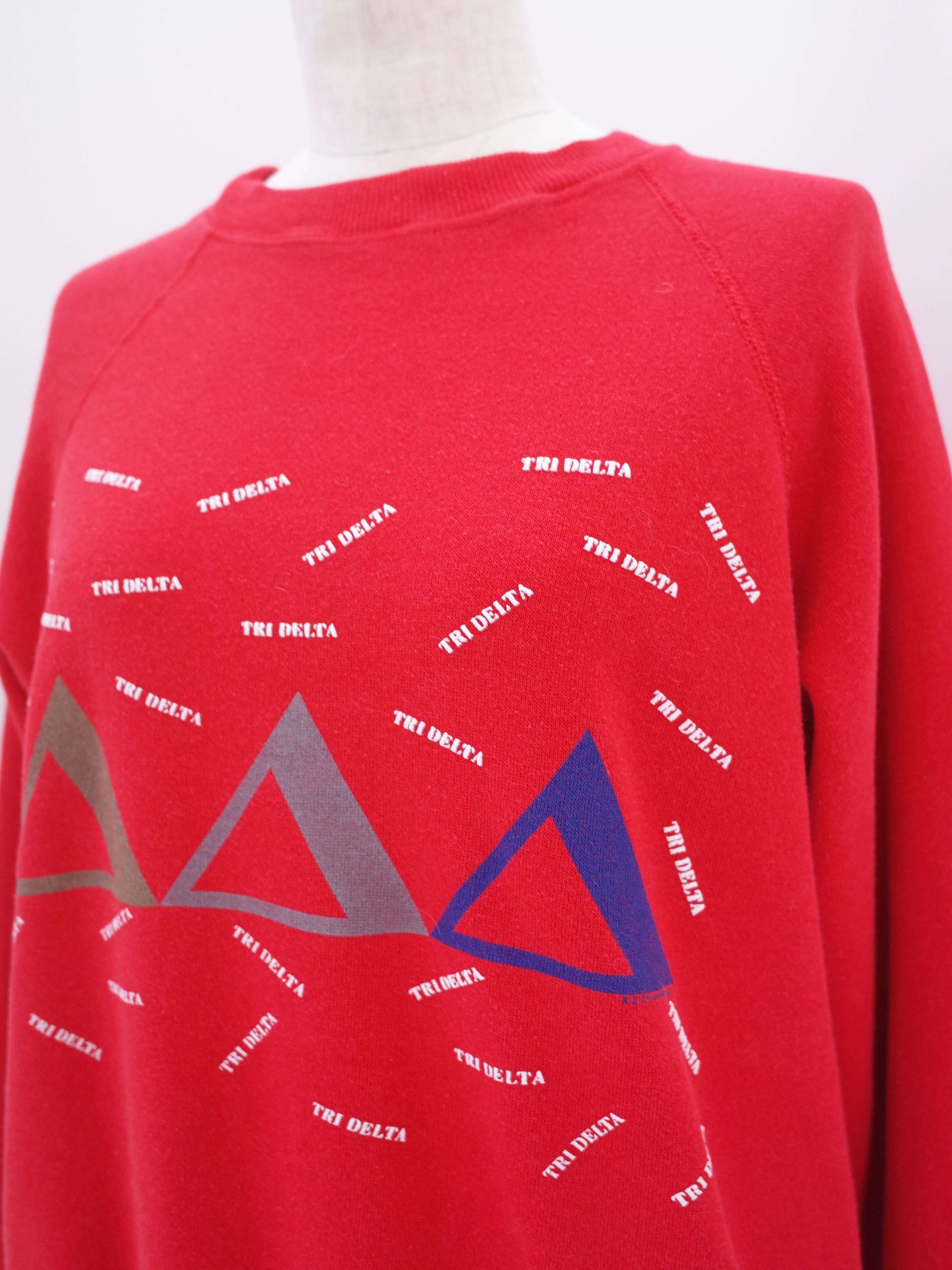 90年代製Hanesボディのスウェット。中央にΔΔΔ、そしてTRI DELTAの文字が散りばめられた一枚です。鮮やかなレッドカラーが差し色にもGOODです◎