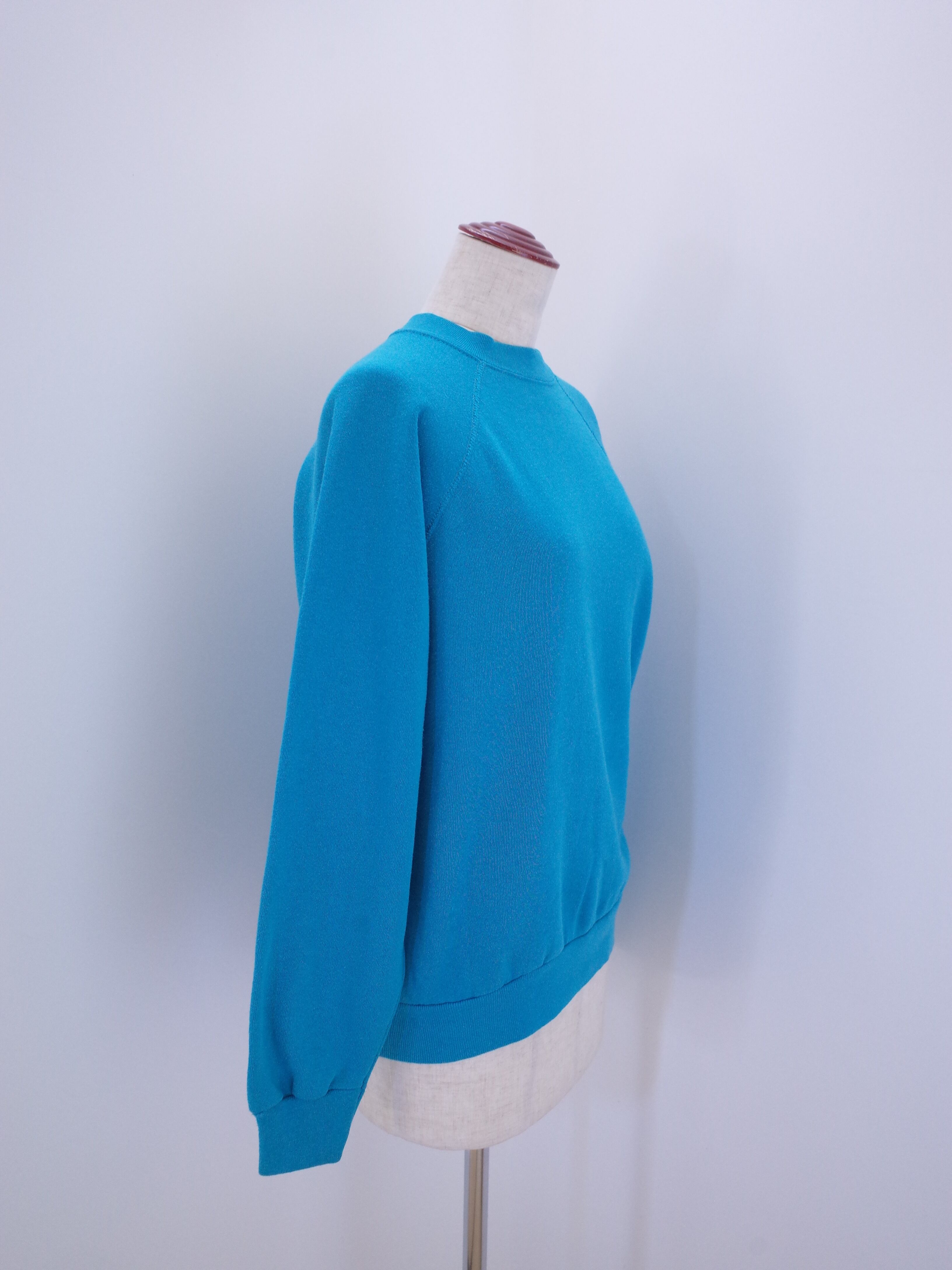 1980年代製ラグランの無地スウェット。ボディはBetter Basics by Tultexです。鮮やかなターコイズブルーのカラーがGOODな一枚◎差し色としても使える無地のスウェットはカラーバリエーションを持っておきたいアイテムのひとつです。