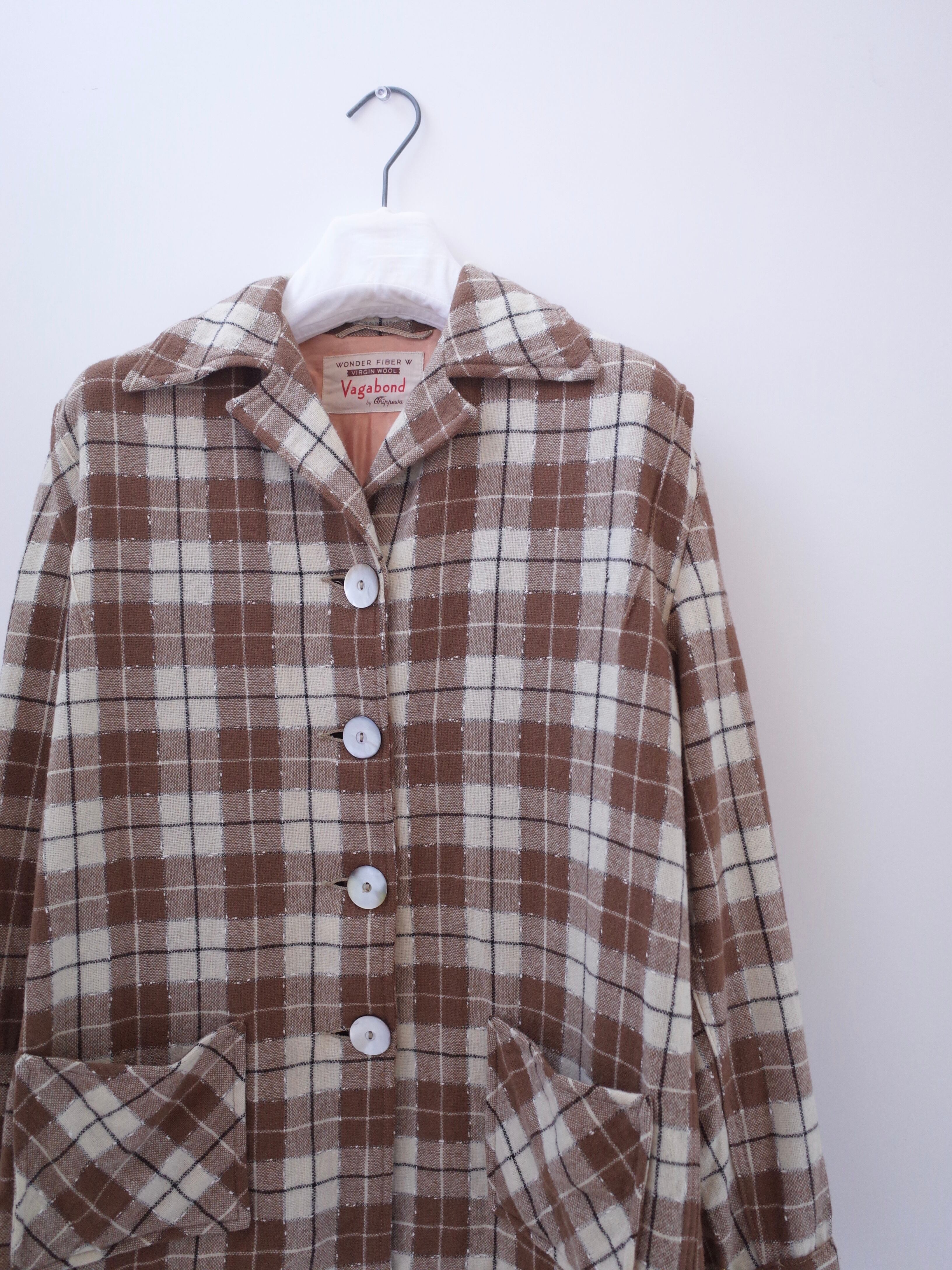 1950年代製Vagabond by Chippewaのウールジャケット。『Chippewa』は、1882年にウィスコンシン州チペワフォールズで創業したウール衣料メーカー。建築業や木こり達の為の防寒着から始まり地元産の良質ウールを用いてメンズウェア、後年にはレディース・キッズも含め幅広い層へのスポーツウェアを製造し、1962年で幕を閉じた古き良きアメリカンブランドのひとつです。良質なウールと大きい貝ボタンが使われている贅沢な一枚。カジュアルにデニムとの相性も抜群です。シャツのようにもジャケットのようにも着用可能なデザインと気軽さが魅力的。