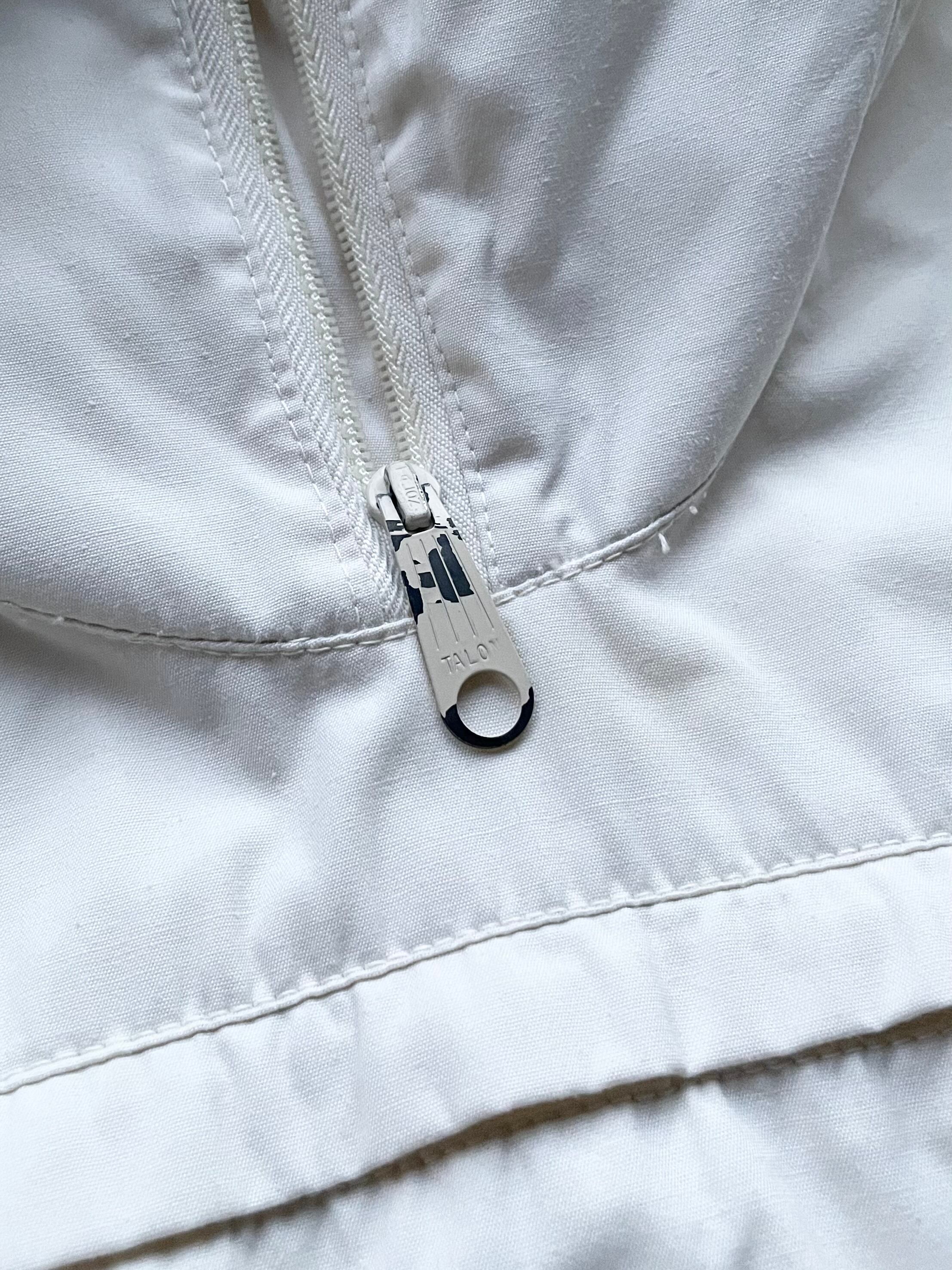 状態:よく見ると胸元に薄い緑のシミ(画像13)袖に小さな汚れ(画像14)袖口のリブに引っ掛け(画像15)ジップにペンキはげあり(画像16)