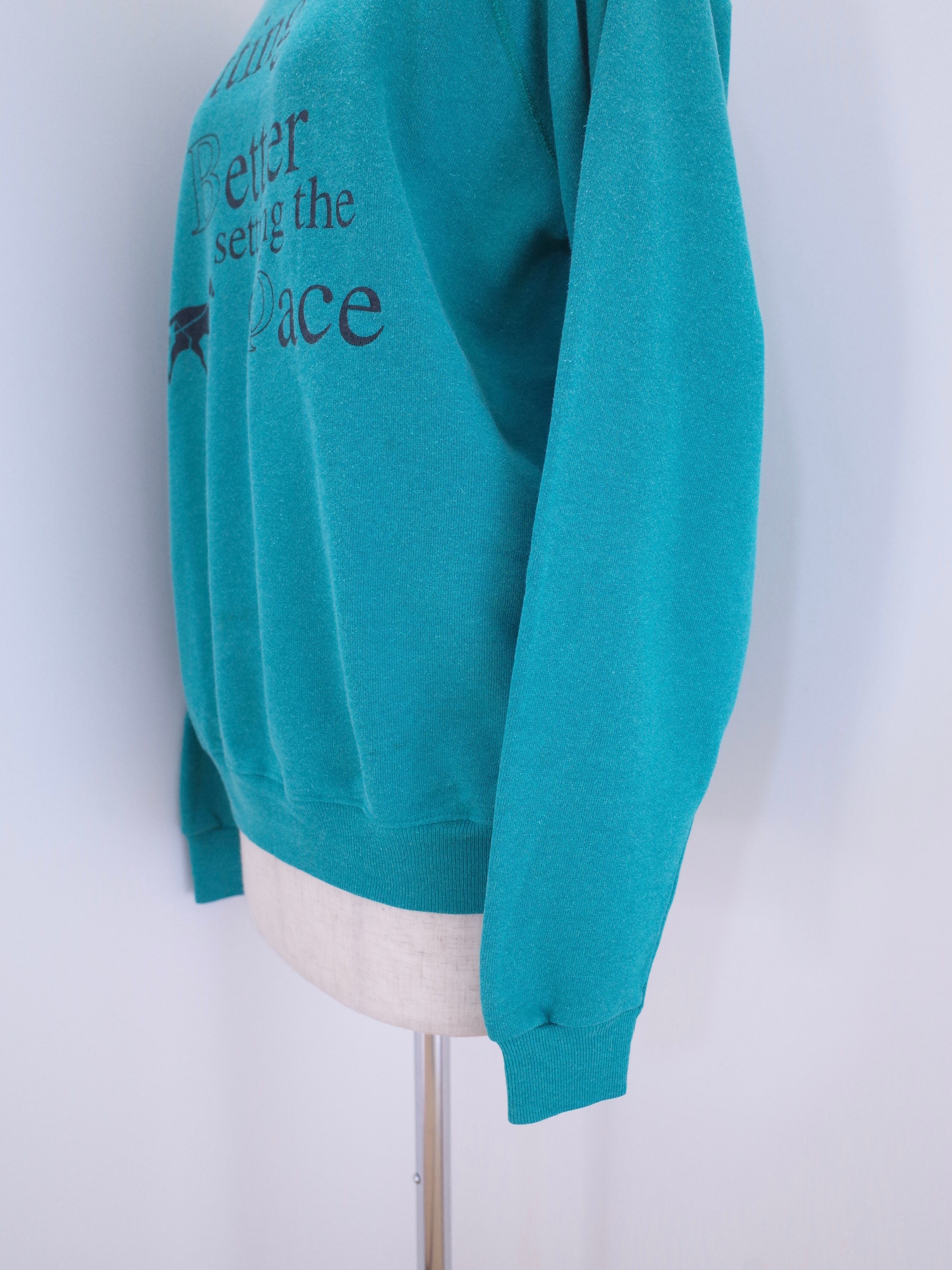 90年代製サウス・カロライナ・エイキン大学のカレッジスウェット。アメリカ製のHanesボディで、かっこいい字体の両面プリント。フェード感のあるグリーンのボディもヴィンテージならではの味があります。