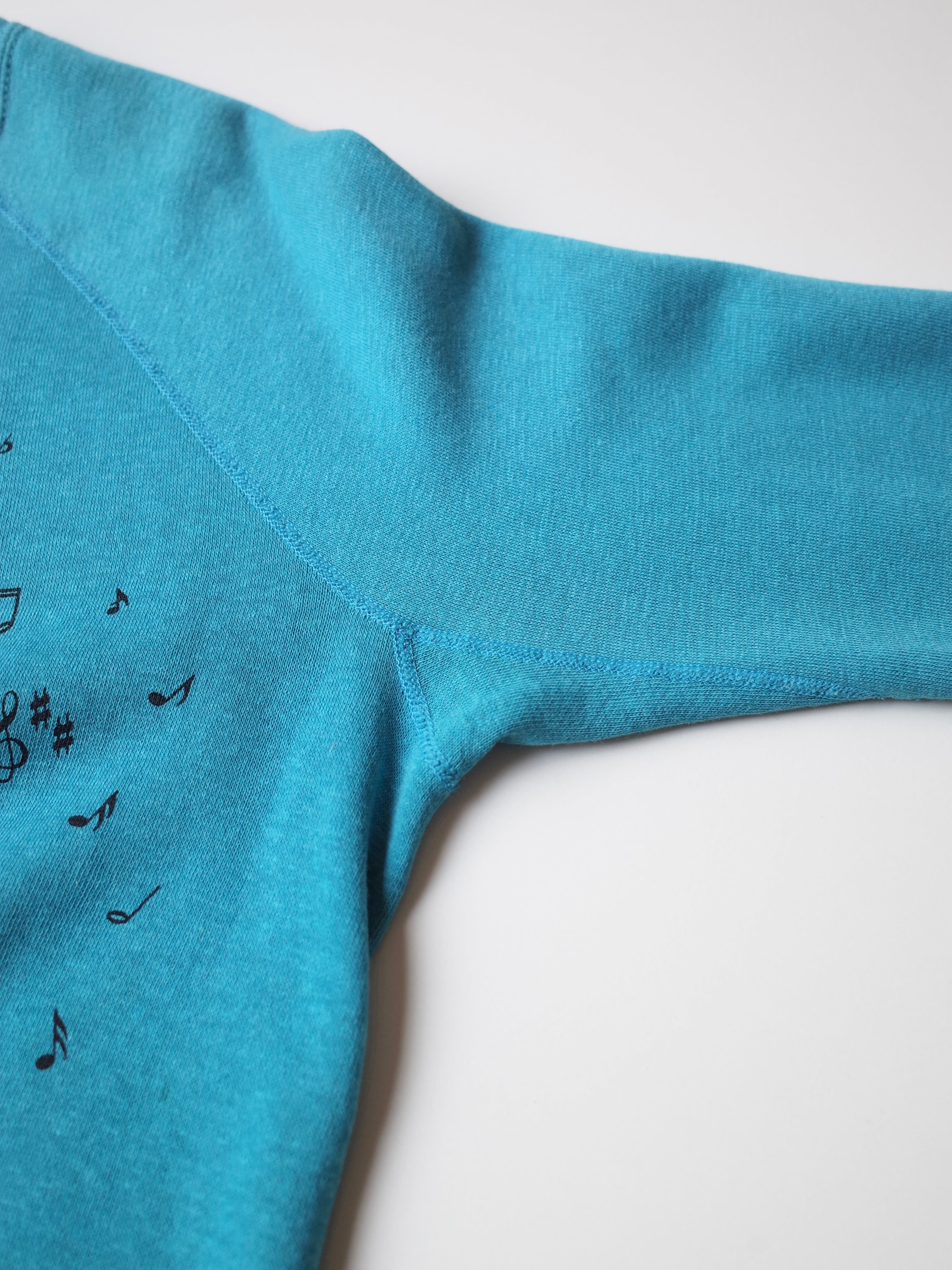80年代アメリカ製両面に音符がたくさんプリントされたスウェット。ラグランスリーブのMILLERボディで、ヴィンテージならではのディテール「脇ガゼット」がついています。クタクタになった生地のフェード感もGOODな一枚です。