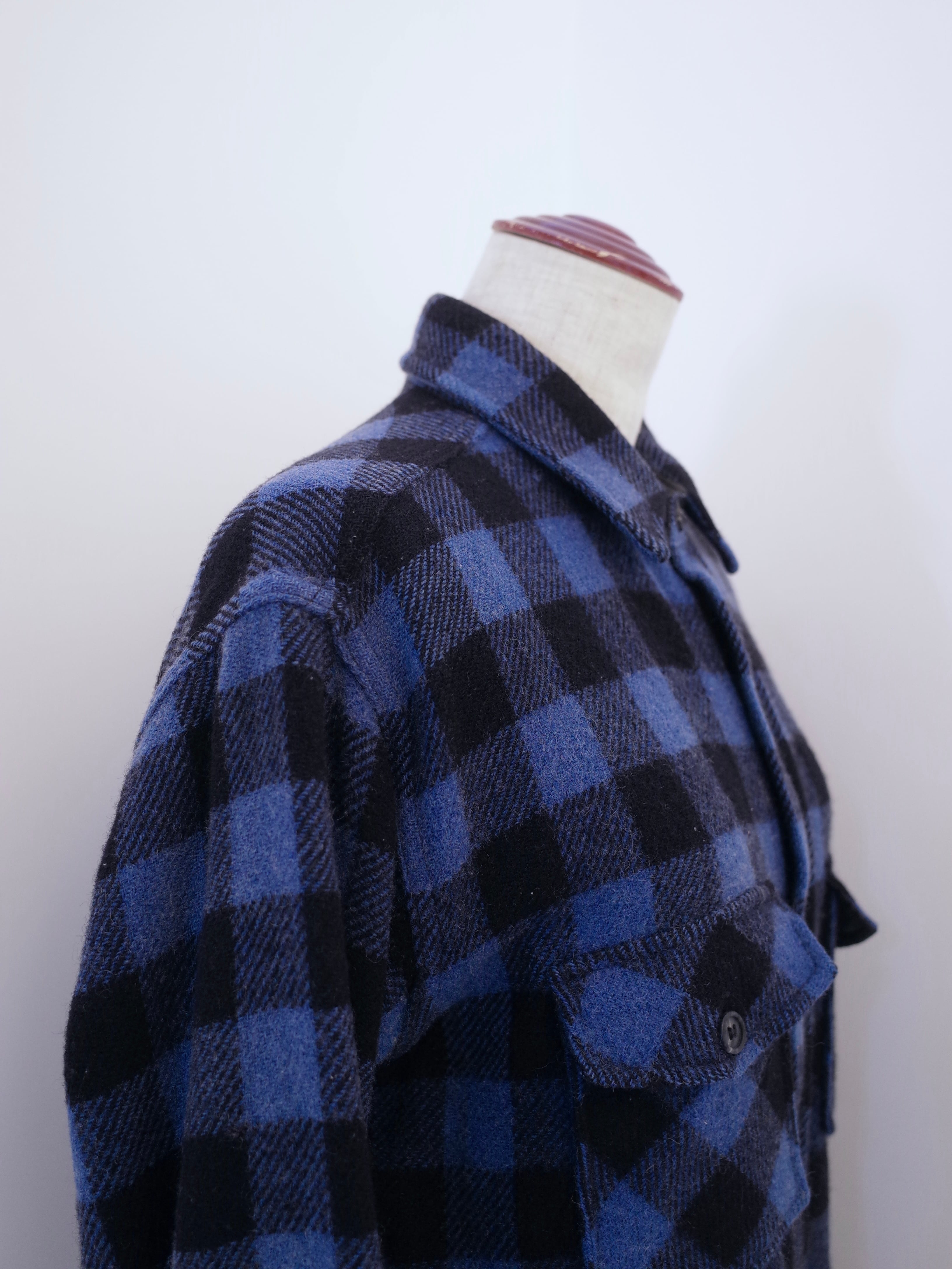 70年代アメリカ製、サイズ感の良いWoolrichのシャツジャケットです。ブルー×ブラックのチェックの配色もgood!厚手のウールで、ジャケットのようにも羽織れるCPOシャツ。最近ではセレクトショップなどでも人気のウールシャツジャケットですが、Woolrichのオリジナルはひと味もふた味も違ったヴィンテージならではの雰囲気が出ていてとてもかっこいい一着です。