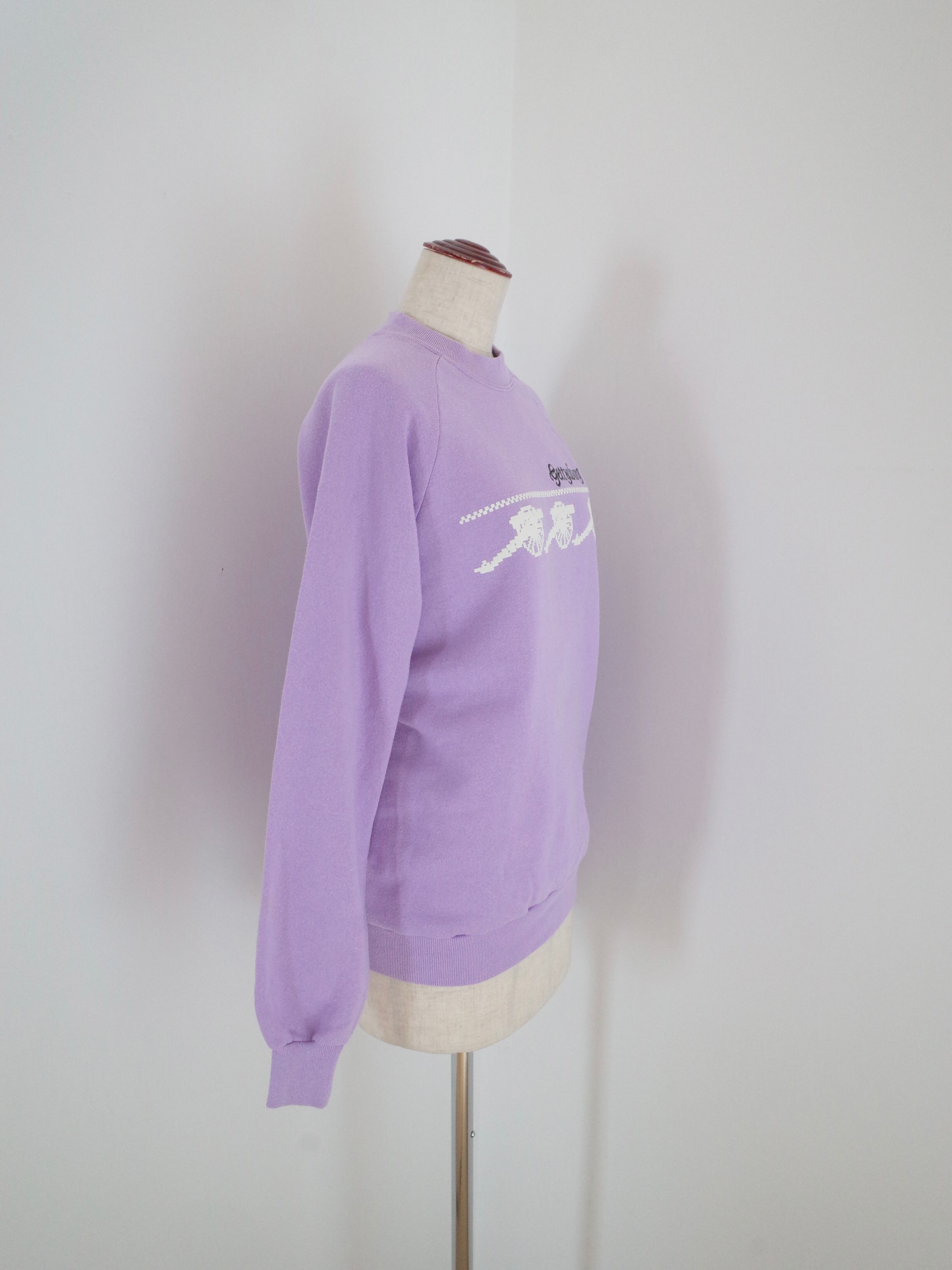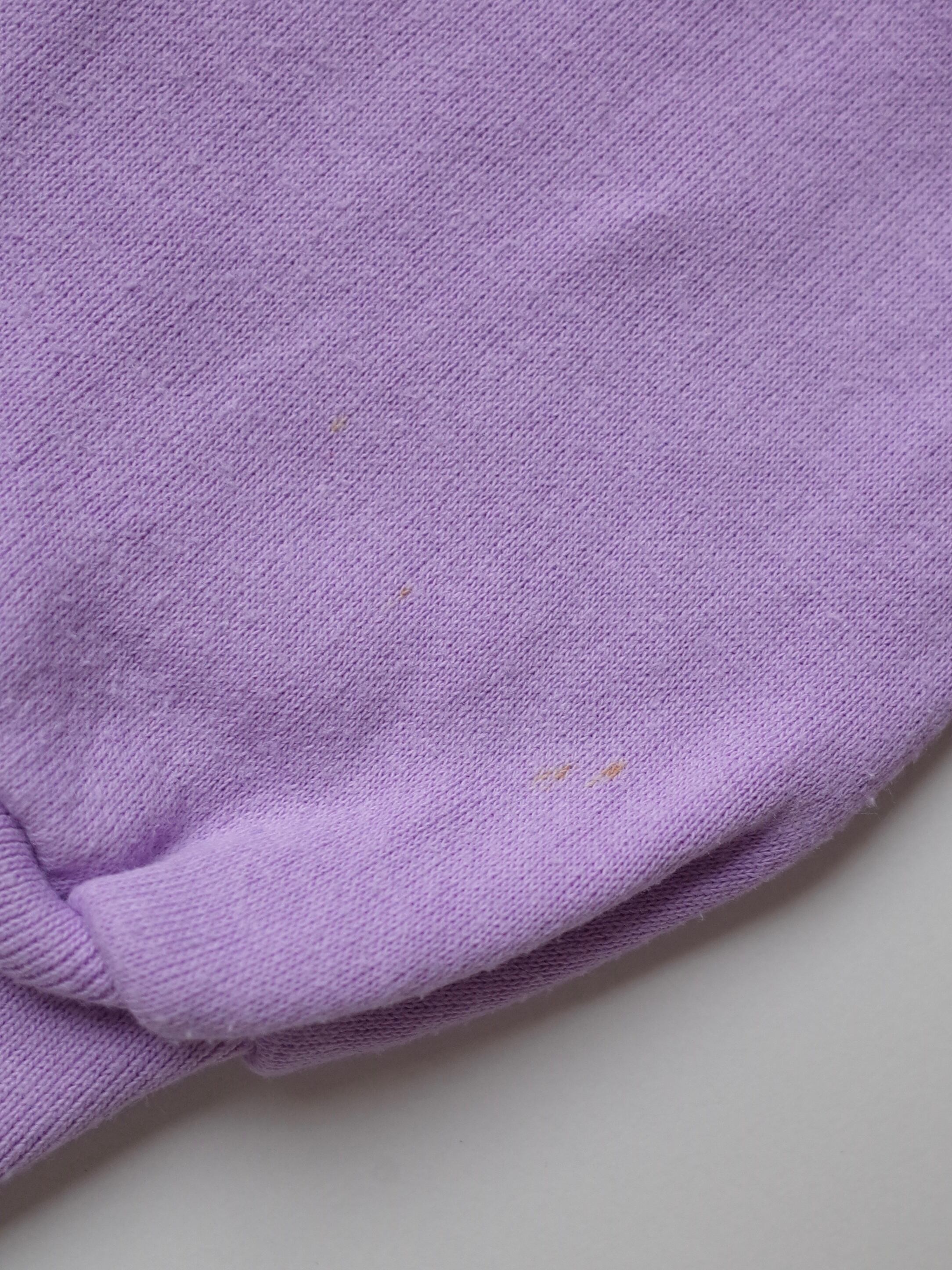 80年代アメリカ製JERZEESボディのスウェット。ゲティスバーグはアメリカペンシルベニア州の町で、かつて南北戦争が行われた町でもあります。町には大砲のモニュメントが飾られているため、この白いプリントのものはその大砲です。ラベンダーカラーのラグランスリーブがかわいい一枚です。