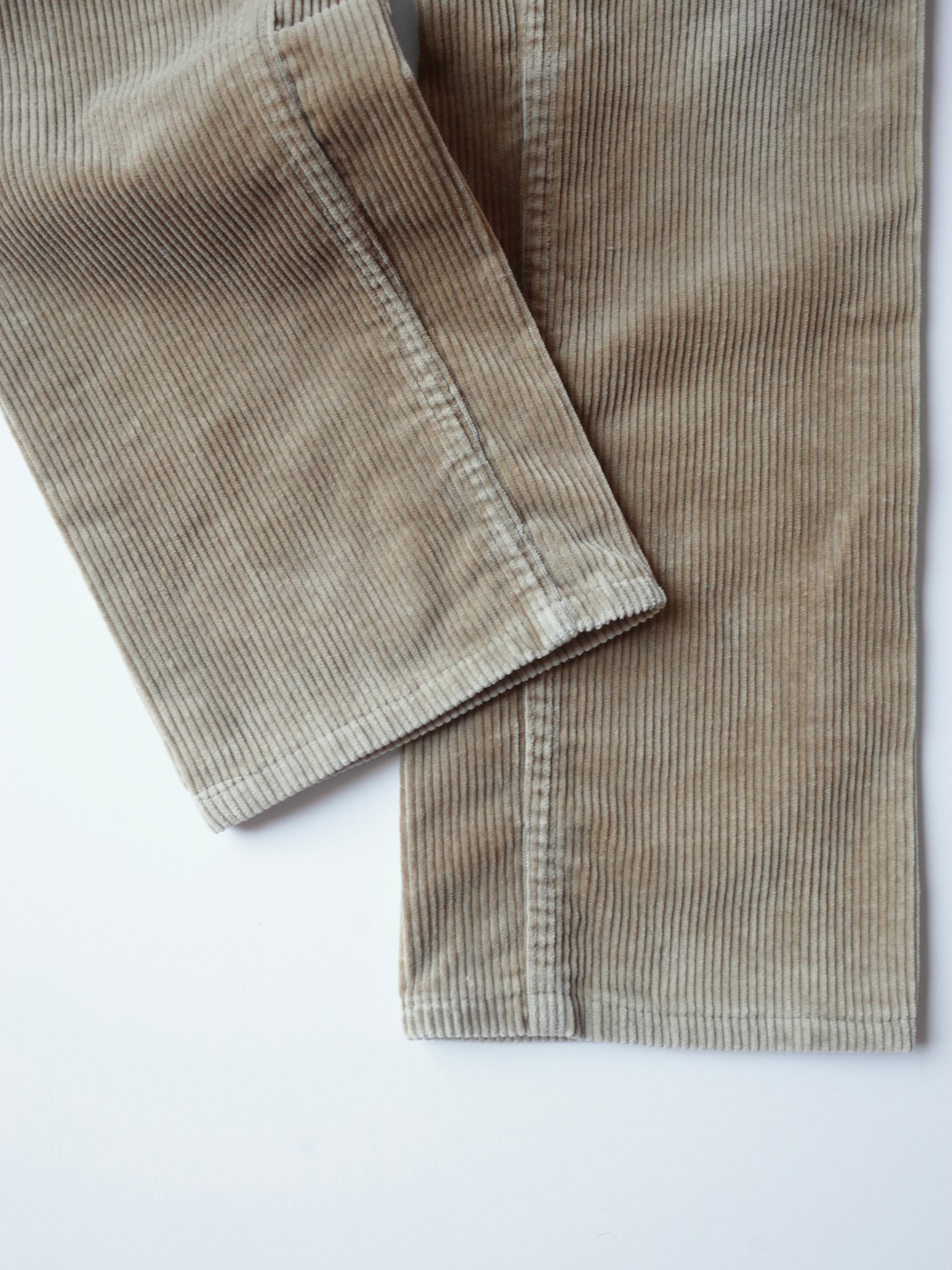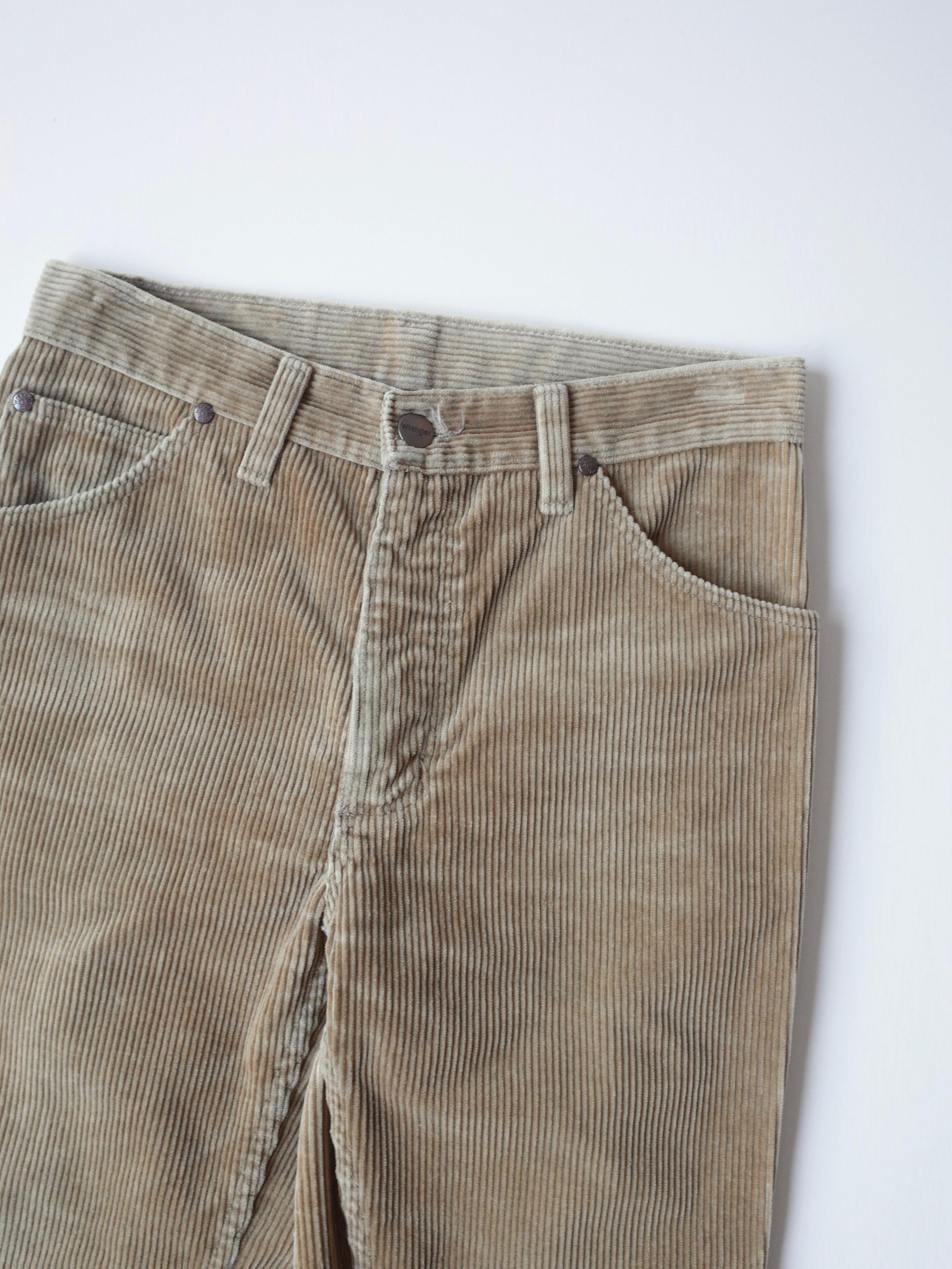 80年代製ユーロWranglerのコーデュロイパンツです。太畝のコーデュロイ素材で珍しいベルギー製。レングスはストレートで、色ははっきりとしたベージュカラー(キャメルに近い)。小さめサイズをお探しの方におすすめの一本です。