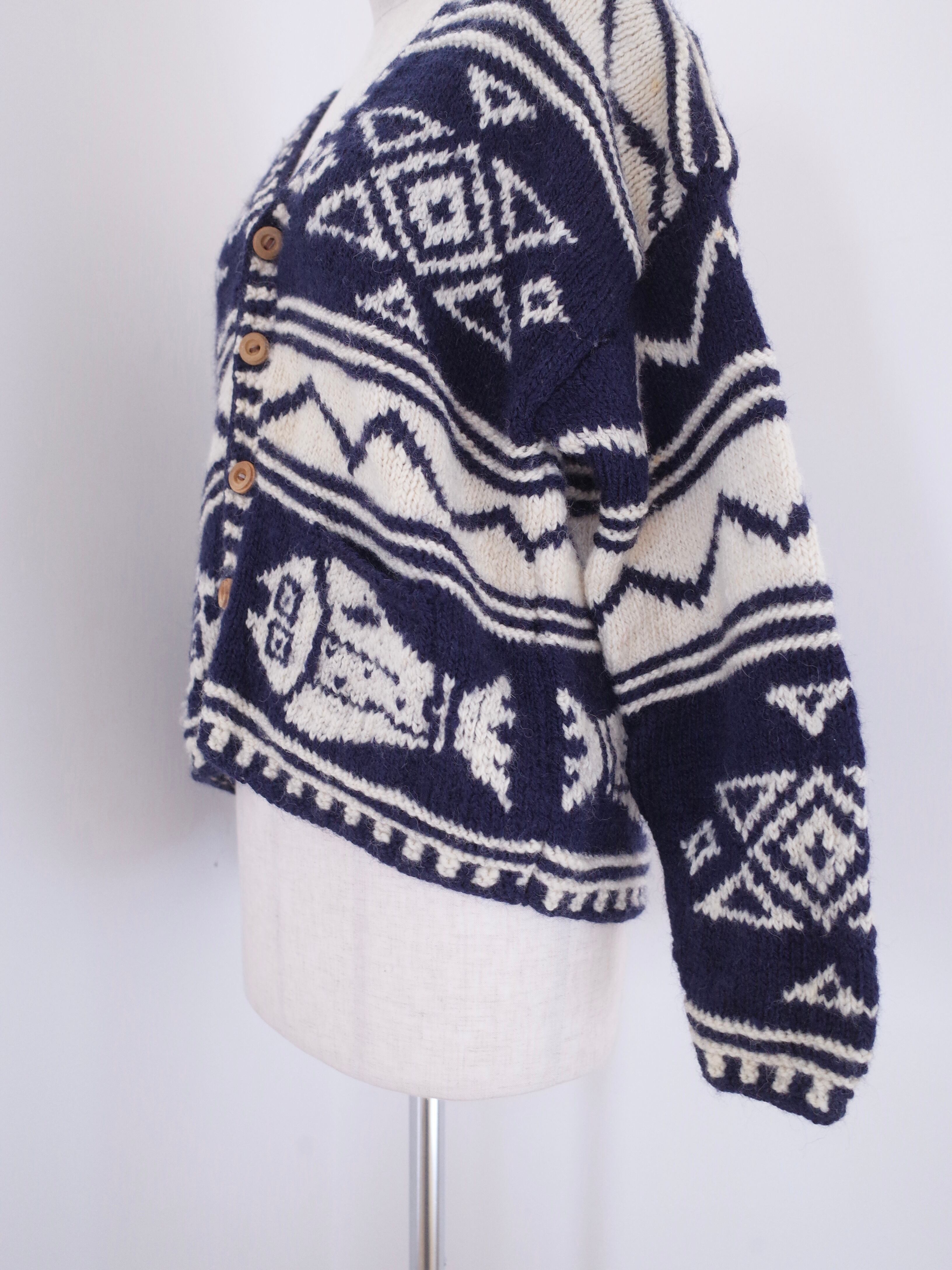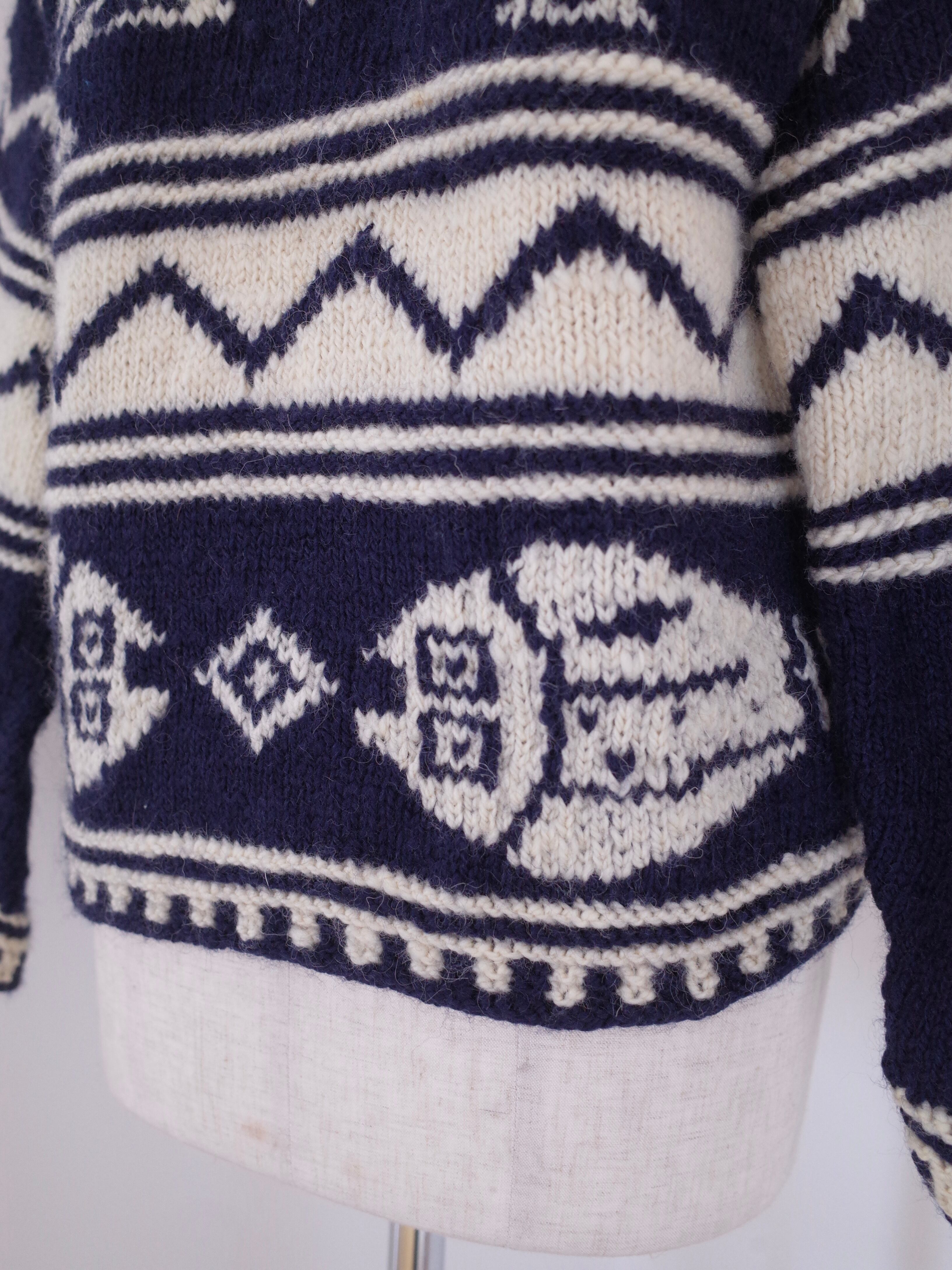 Ecuador fish pattern hand knit cardigan