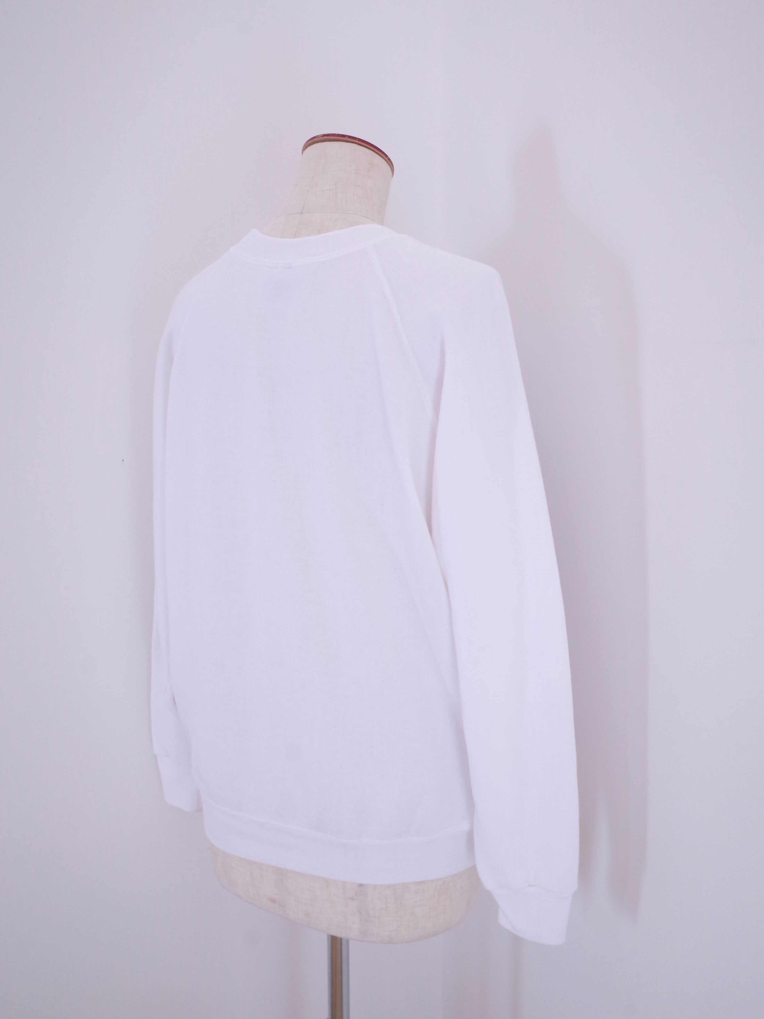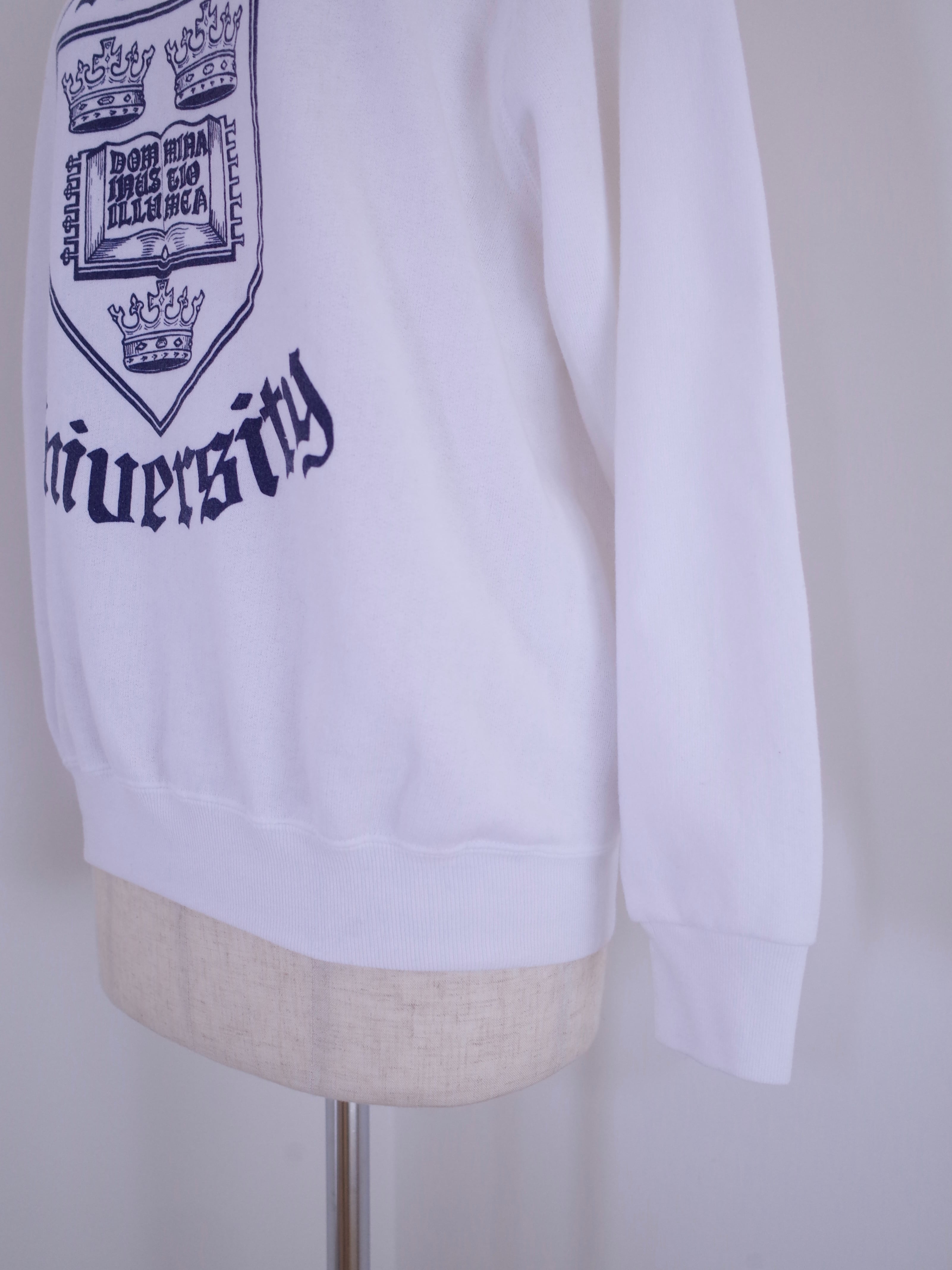 1990年代Great Britain製イギリスの名門のオックスフォード大学のカレッジスウェットです。ホワイトボディにネイビーのプリント。爽やかな印象の一枚。裏起毛ですが、そんなに厚くないのでインナーとしても使い勝手のいいスウェットです。