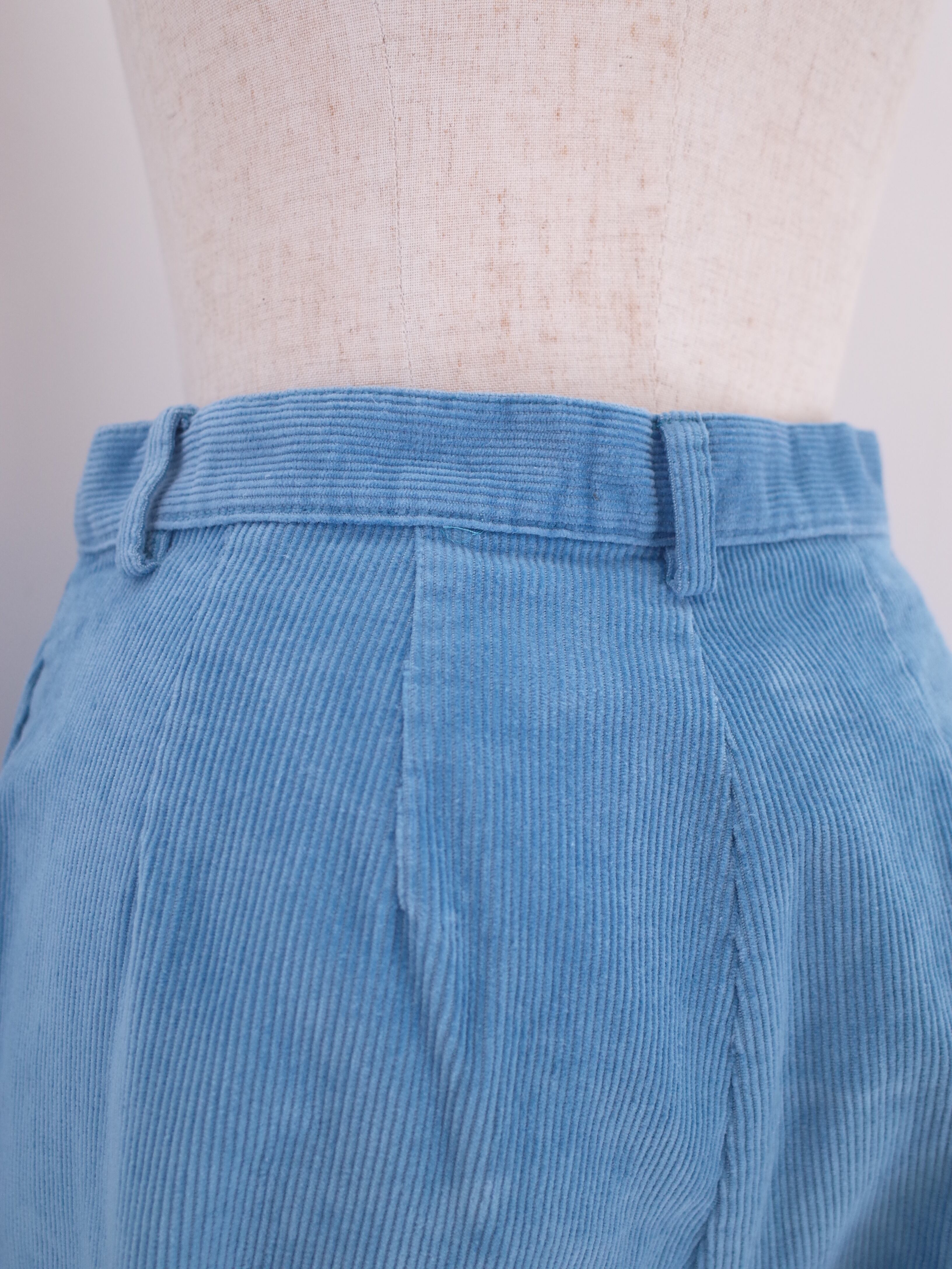 LANDS' ENDのコーデュロイパンツ。鮮やかなライトブルーのカラーがGOOD◎股上が深く、テーパードしたレングスが綺麗なシルエットのスラックスです。ラフにTシャツと合わせたり、ジャケットスタイルにもおすすめなパンツです。