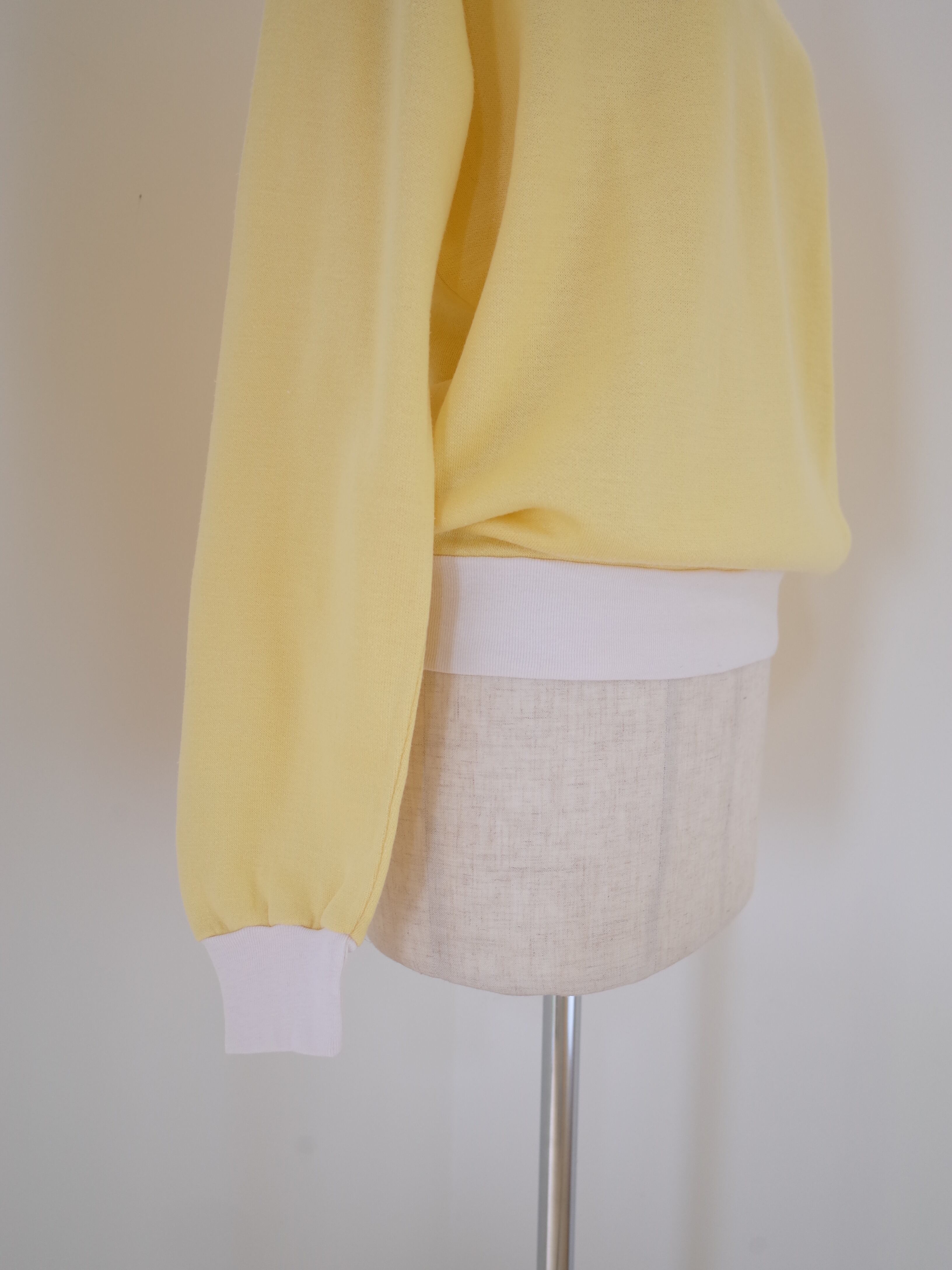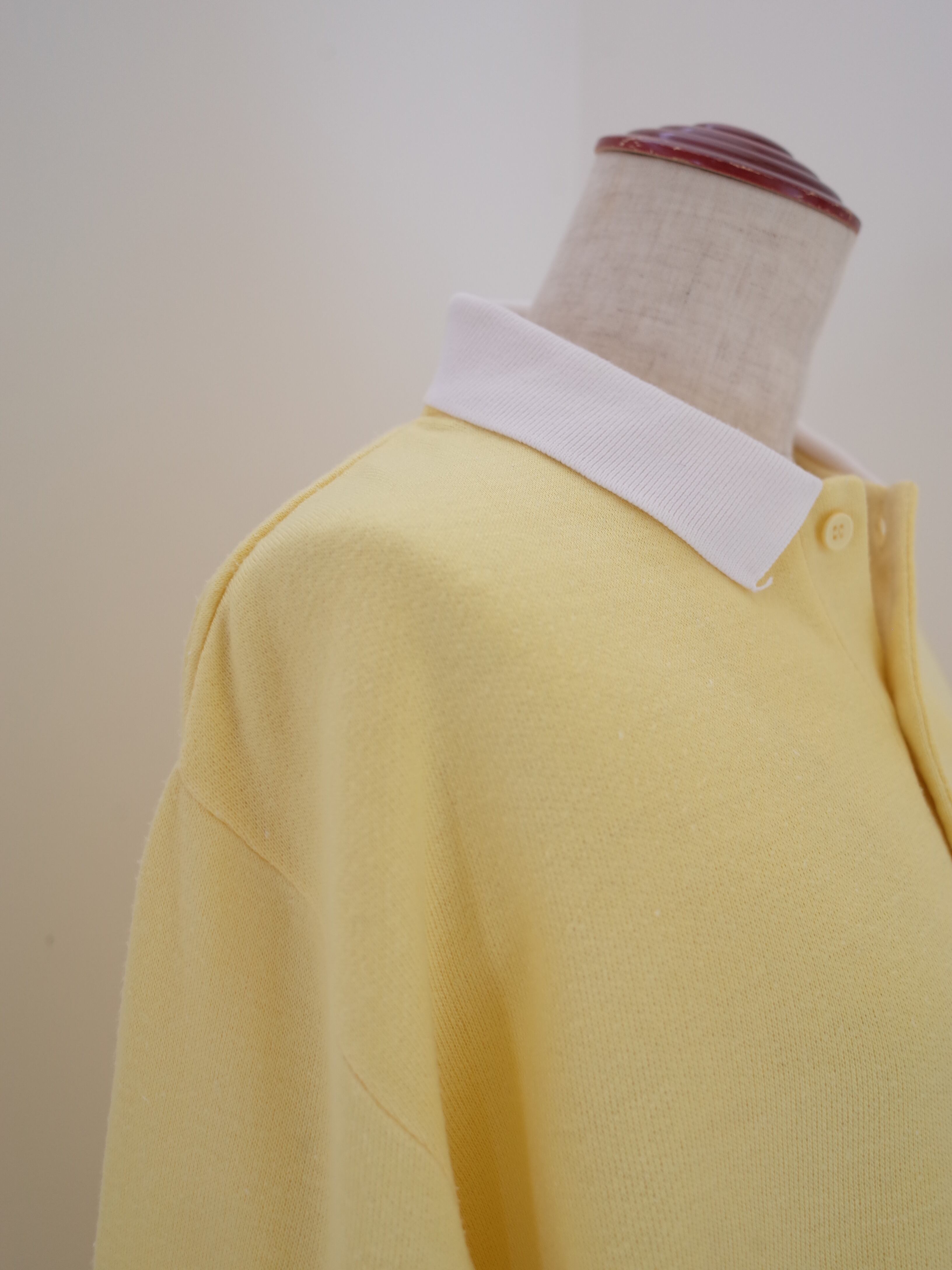 1980年代製ユーロの襟付きスウェット。アメリカのスウェットとはひと味違ったデザインが魅力なユーロスウェット。デニムやオーバーオールでカジュアルに合わせてアクセサリーでアップデートしたスタイリングも◎