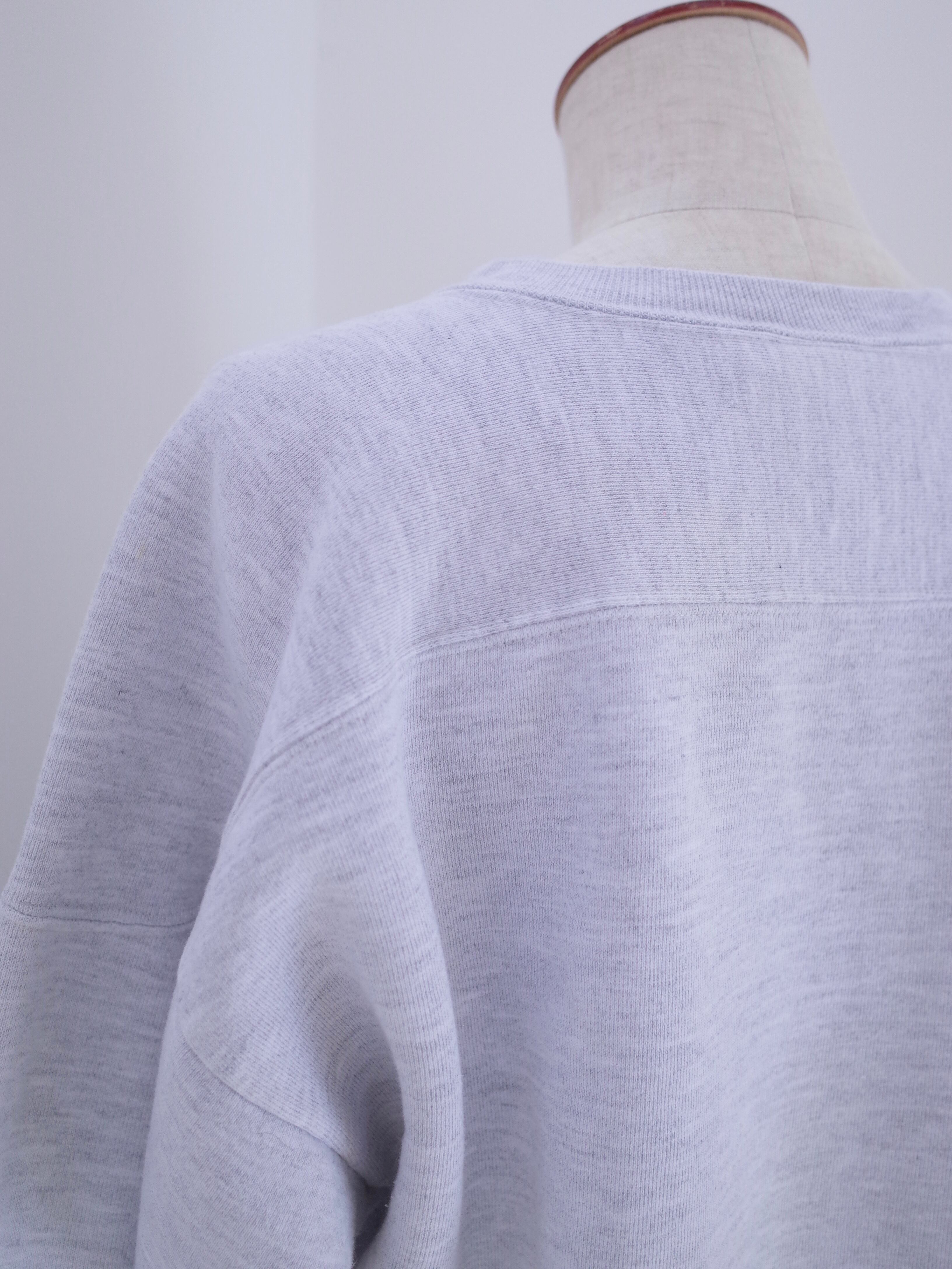 1990年代アメリカ製ノートルダム大学のスウェット。厚手でしっかりとした生地感で、珍しいヘンリーネックのボディ。アッシュグレーにチェック柄の"ND"が映える一着です。