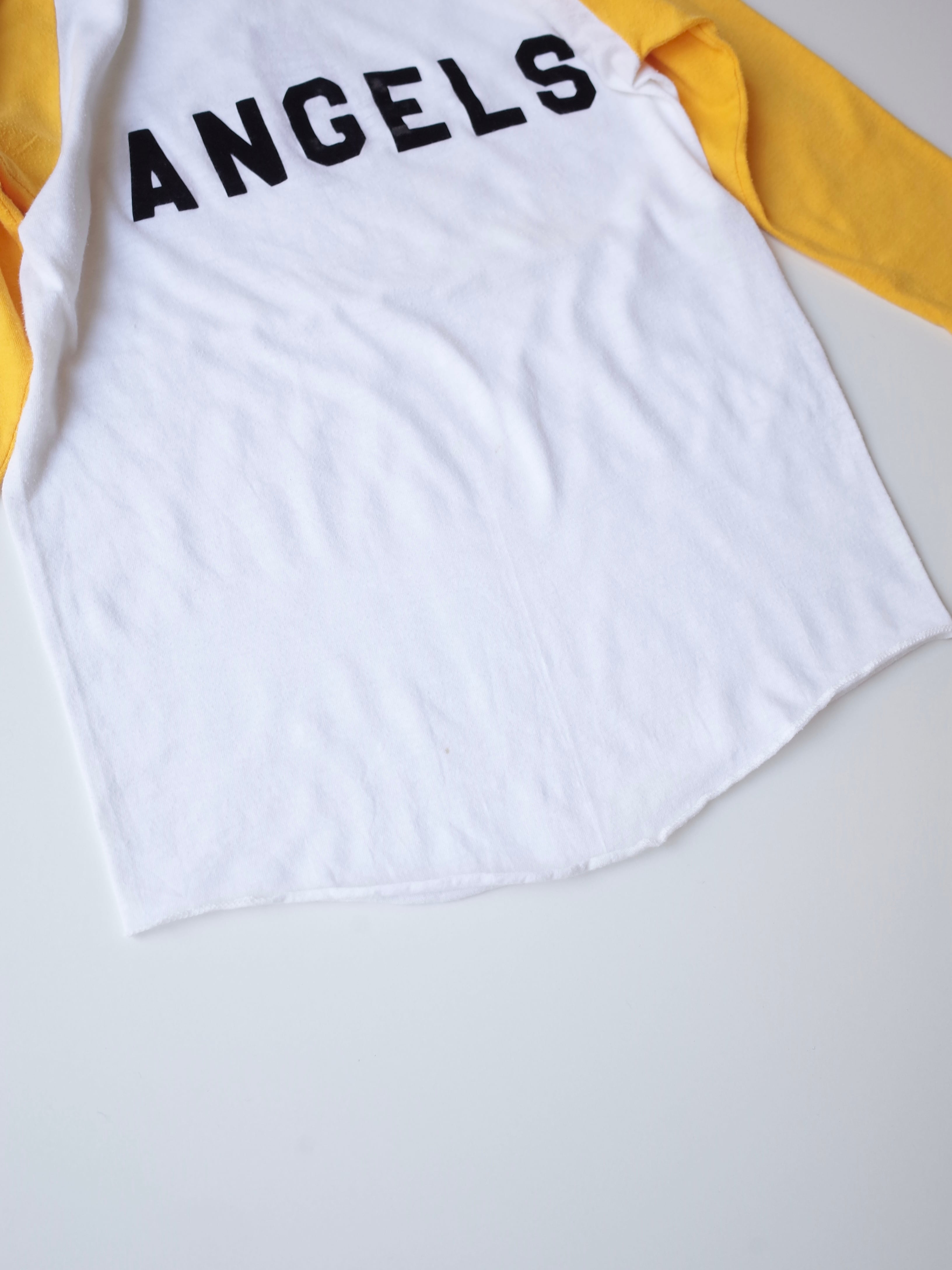 70〜80年代製ラングランスリーブのTシャツです。フロッキープリントのシンプルなデザイン。小さめサイズなので小柄な方におすすめです。