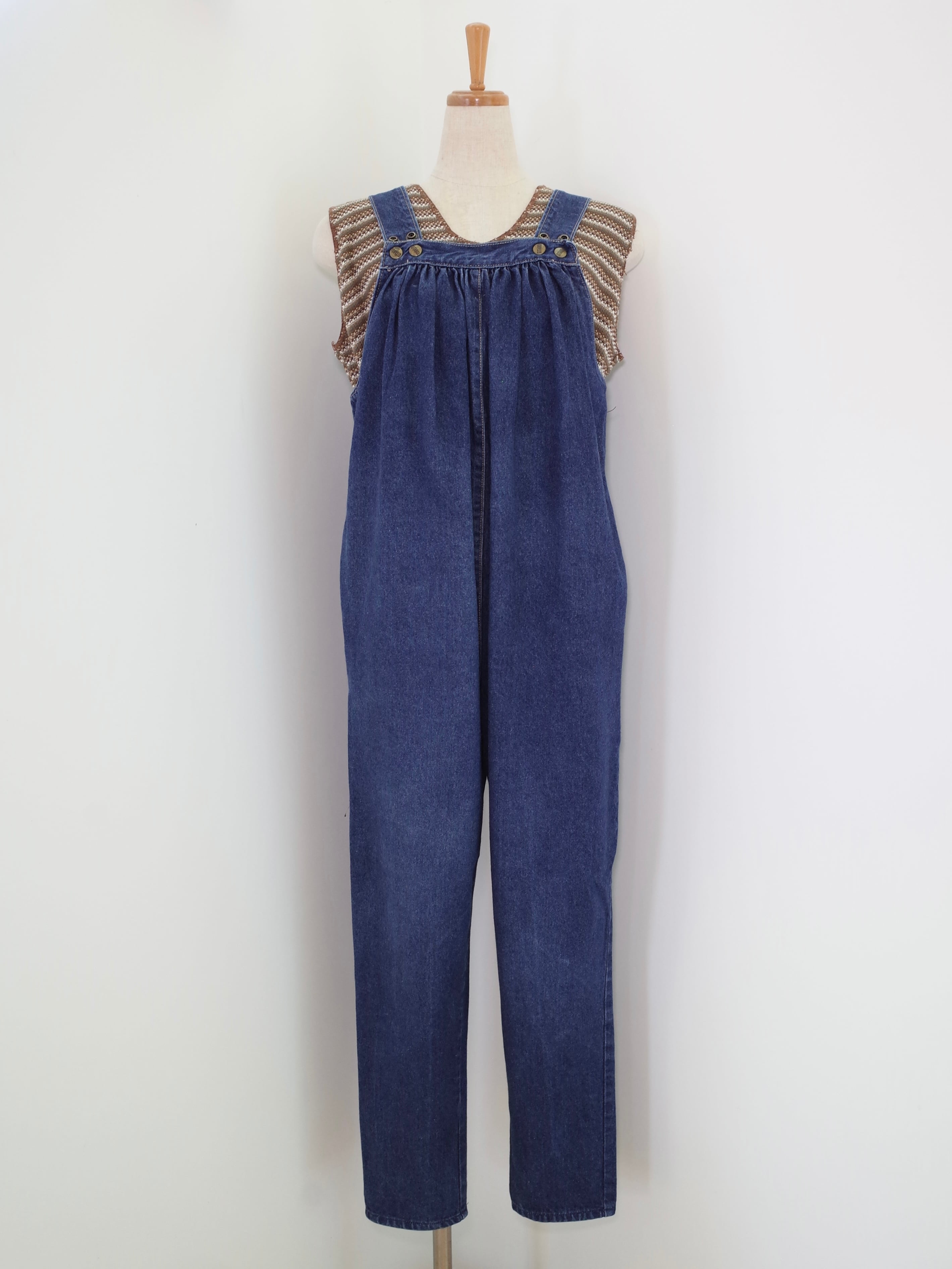 デニム素材のサロペット。肩紐はスナップボタンで2段階に調整可能です。レングスは脚長に見えるテーパードシルエット。オーバーオールのように使い勝手が良く、子どもっぽくならないのでコーディネートにも取り入れやすいサロペットです。