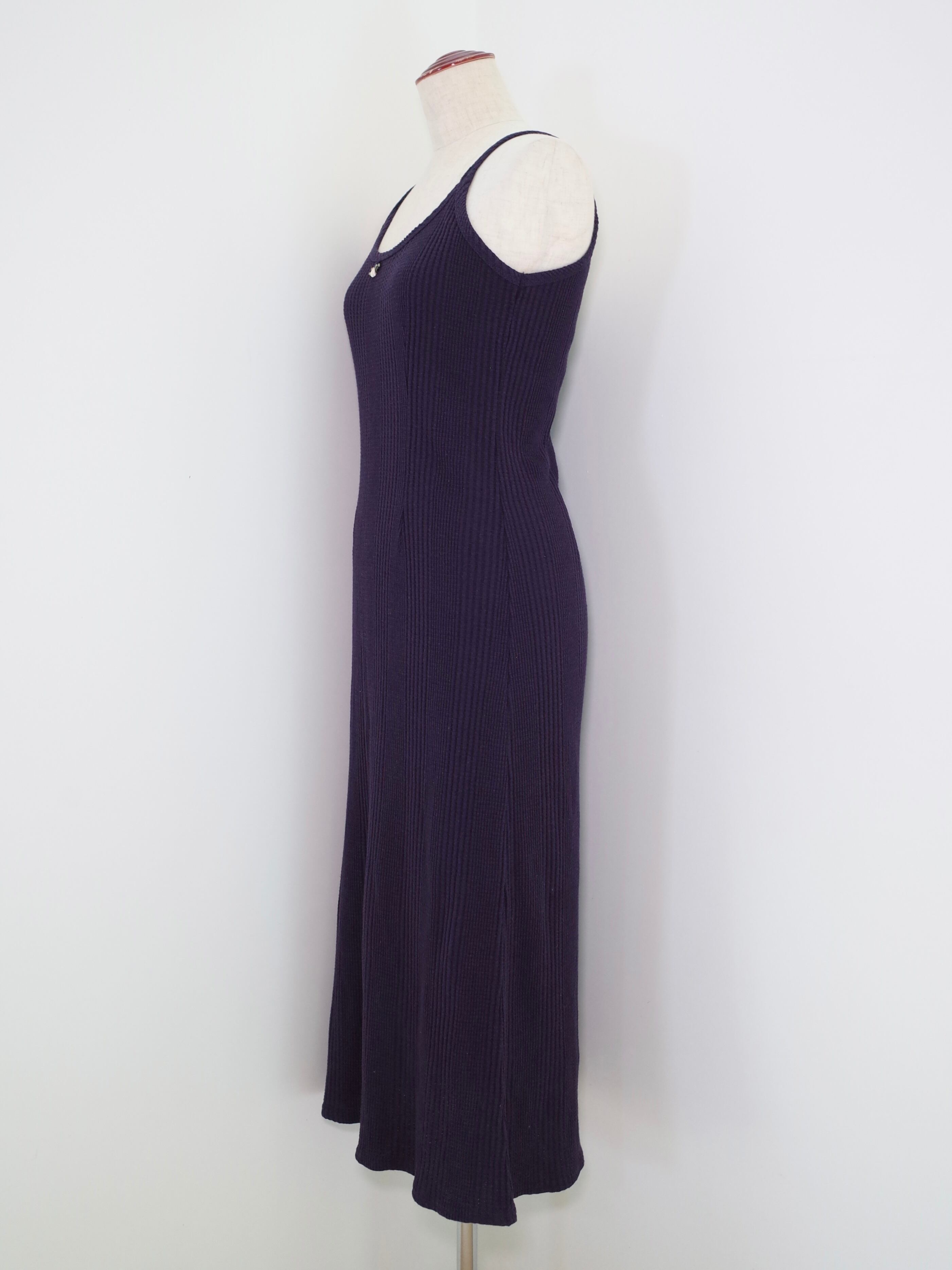 キャミソールのワンピース。伸縮性があり、体に優しくフィットするので、インナーにもおすすめ。レイヤードして夏らしい様々なスタイリングを楽しめる一枚です。
