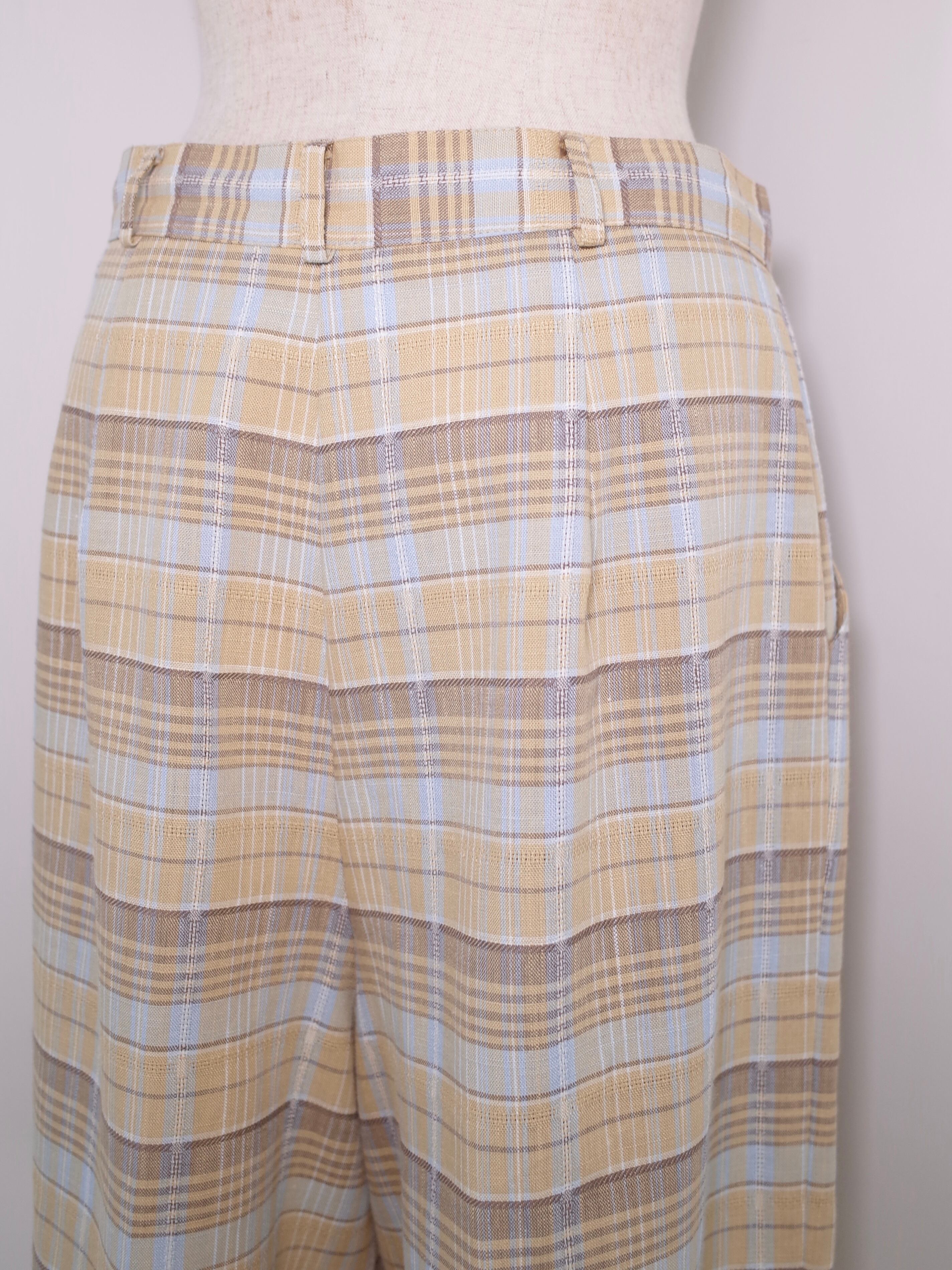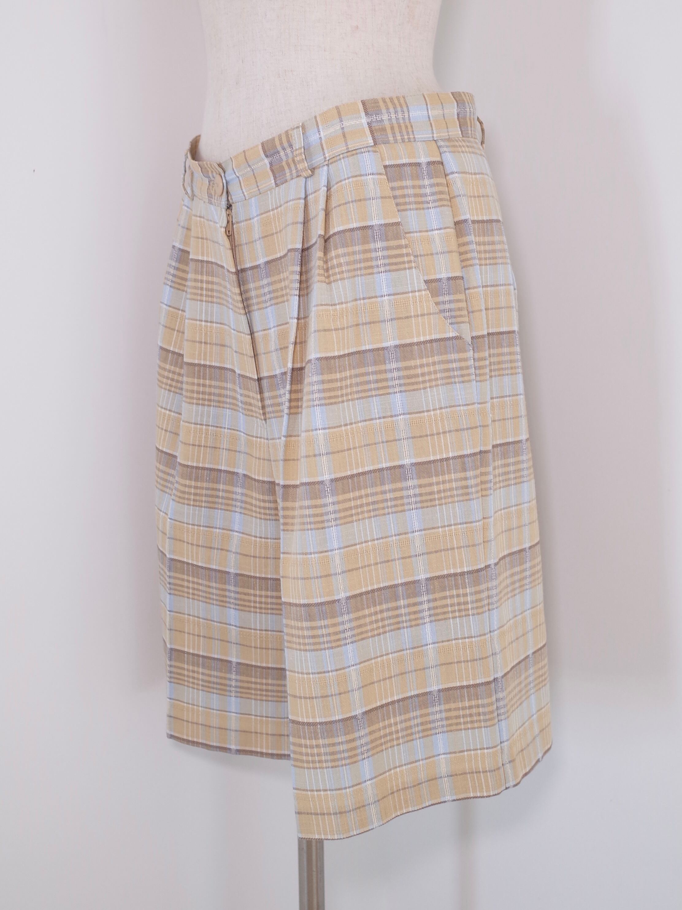 オーストラリア製チェック柄の配色がかわいいショートパンツ。カジュアルから綺麗目まで幅広いスタイリングに活躍します。ウエストにはタックが入り、裾が広がっているため快適に着用できるのも魅力です。タックインしたスタイルでメリハリのあるコーディネートもおすすめです。