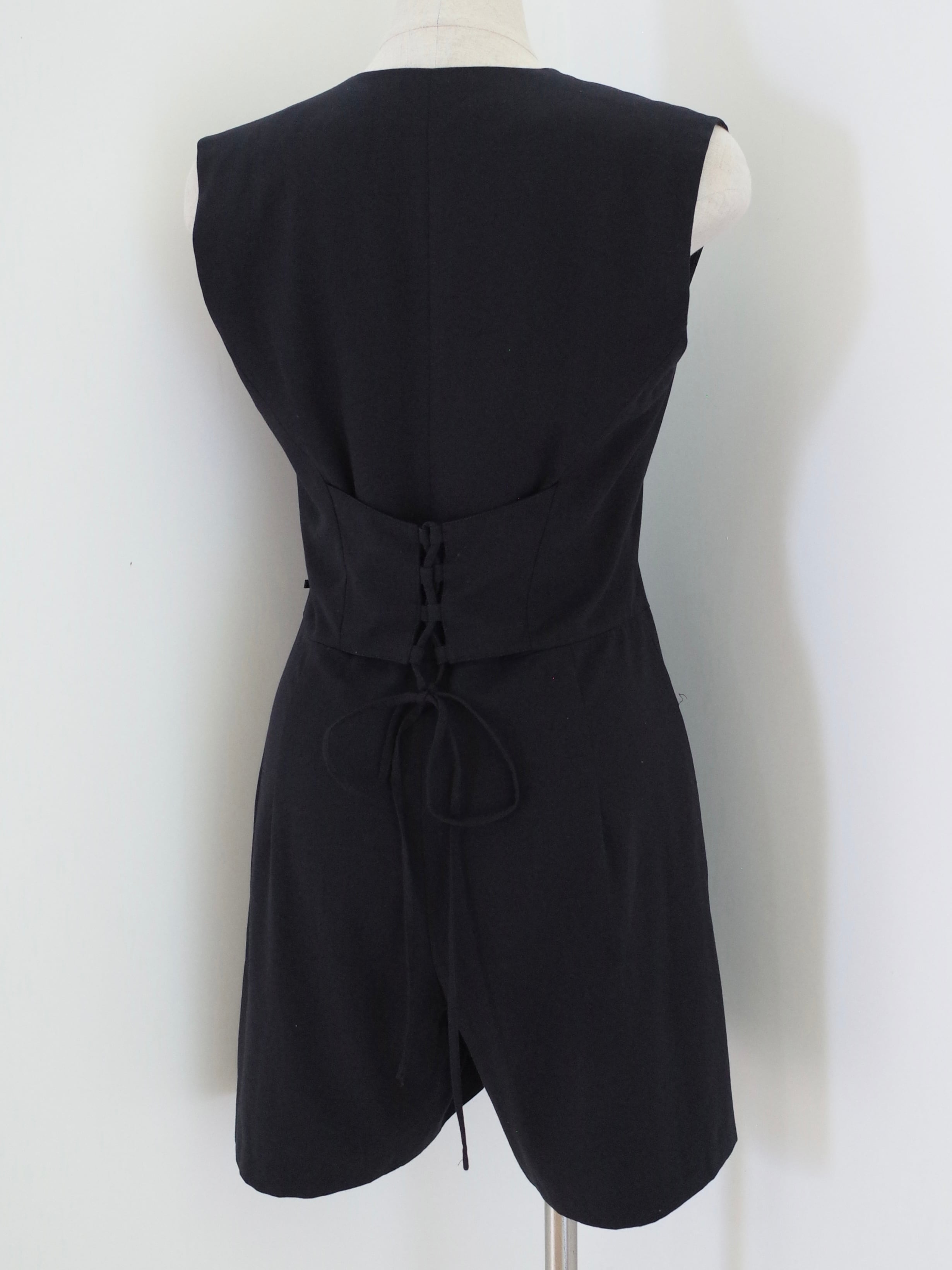 ノースリーブのサロペット。シンプルなデザインに背中のレースアップがチャームポイントです。足元をサンダルで崩してカジュアルに。ヒールを合わせれば綺麗目な印象に。ジャケットを羽織ったり、カットソーをレイヤーして秋にも活躍します。