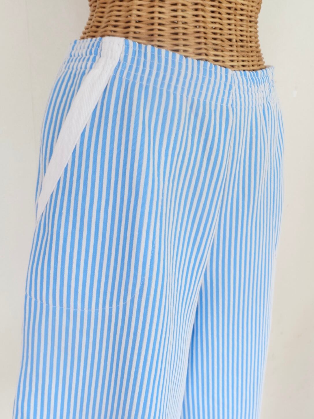 実寸:着丈 61cm ウエスト幅(ゴム) 35cm ヒップ 54cm 股上 34cm 股下 32cm ワタリ 32.5cm 裾幅 34cm
