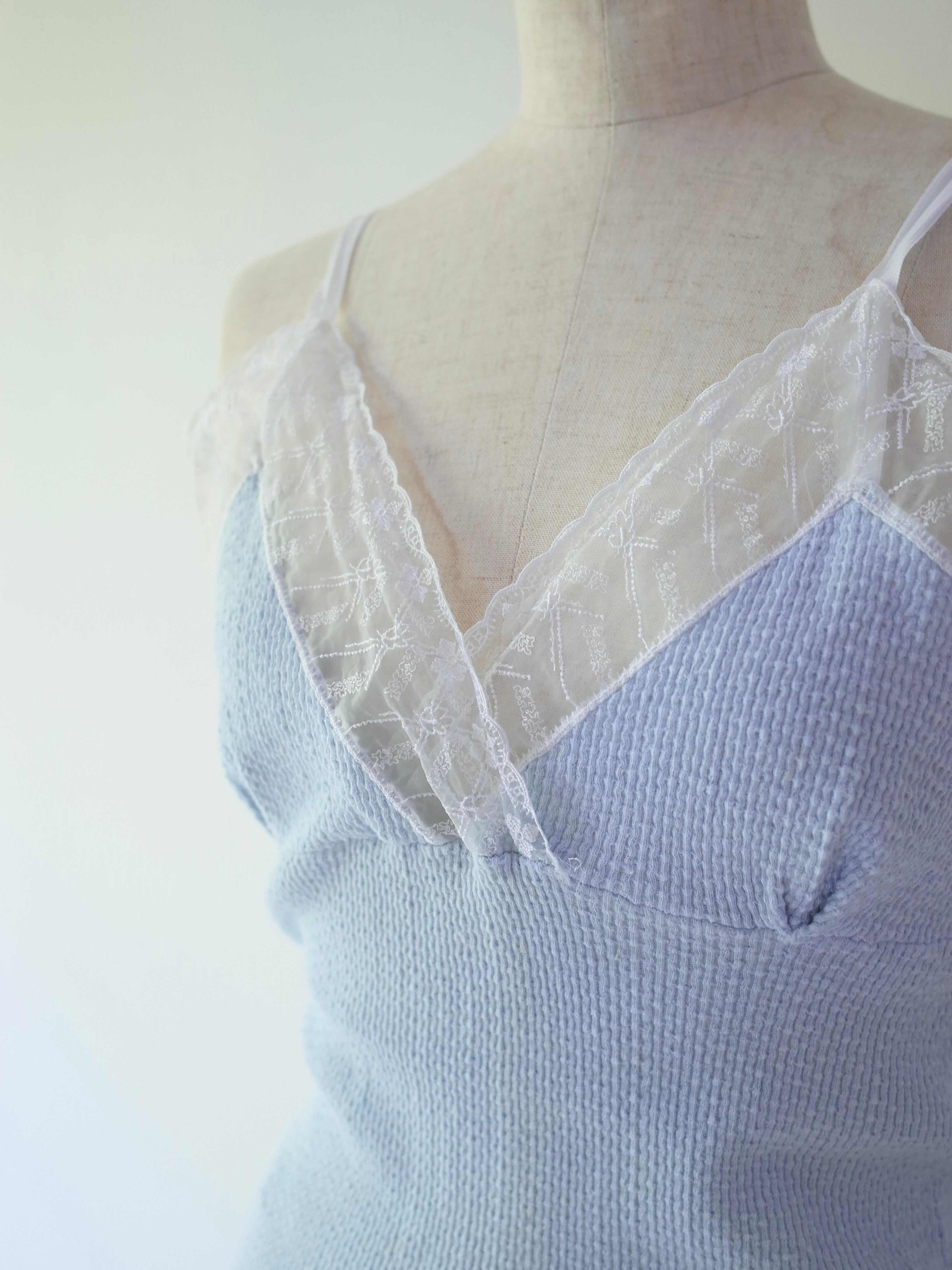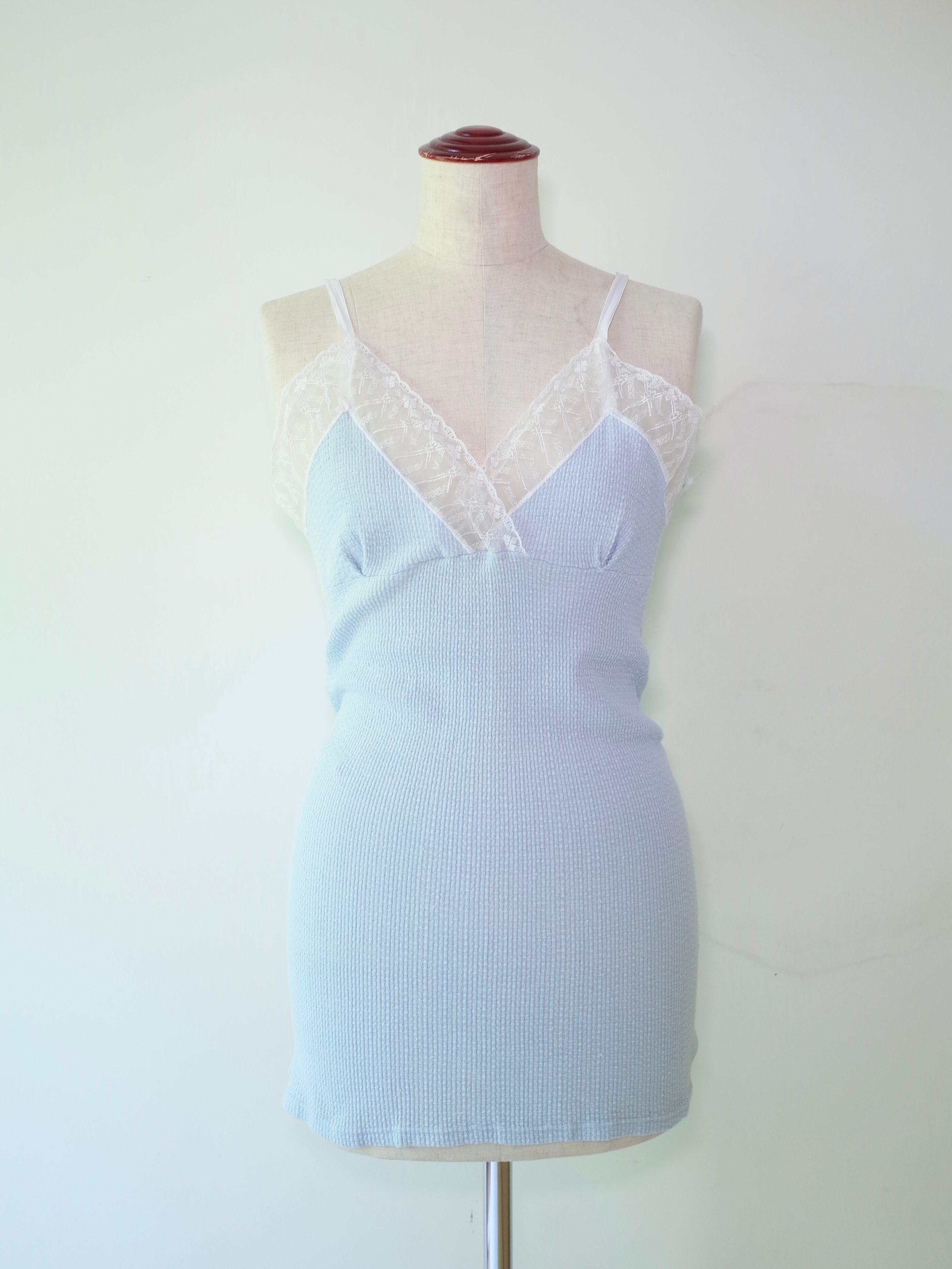 胸元のレースがかわいいキャミソール。元々はインナーとして着用されていた為、伸縮性があります。夏はキャミソールを下に着て。Tシャツやブラウスの上に重ねても◎レイヤードスタイルが楽しめる一枚です。