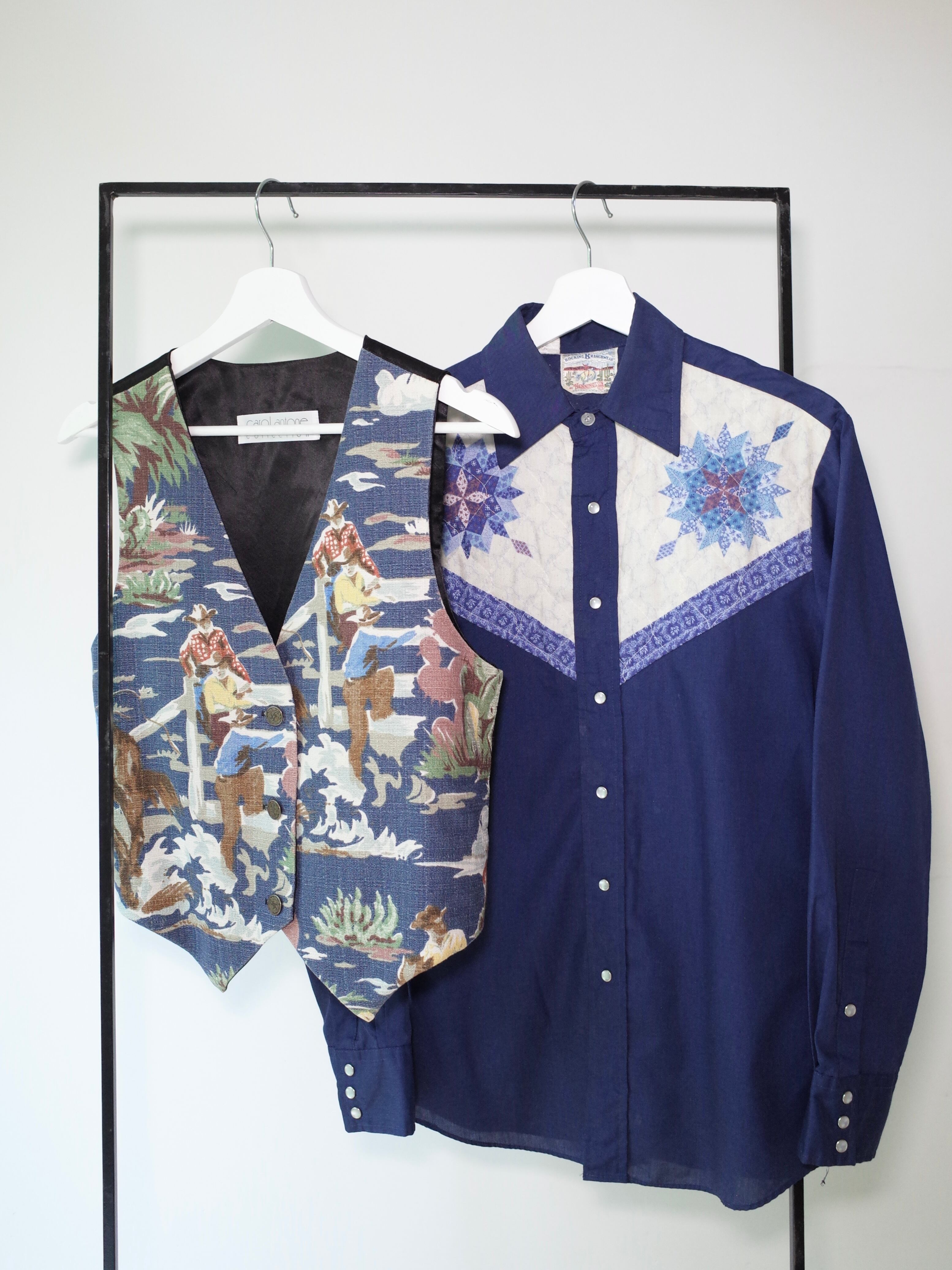 カウボーイ柄が可愛いベストです。これからの季節はニットと合わせたり、ジャケットやアウターの下に忍ばせて◎春夏はワンピースと合わせたり、カットソーやシャツとレイヤーして。タンクトップと重ねたらノースリーブのトップスのようにもお使い頂ける一年通してスタイリングの幅が広いベストです。