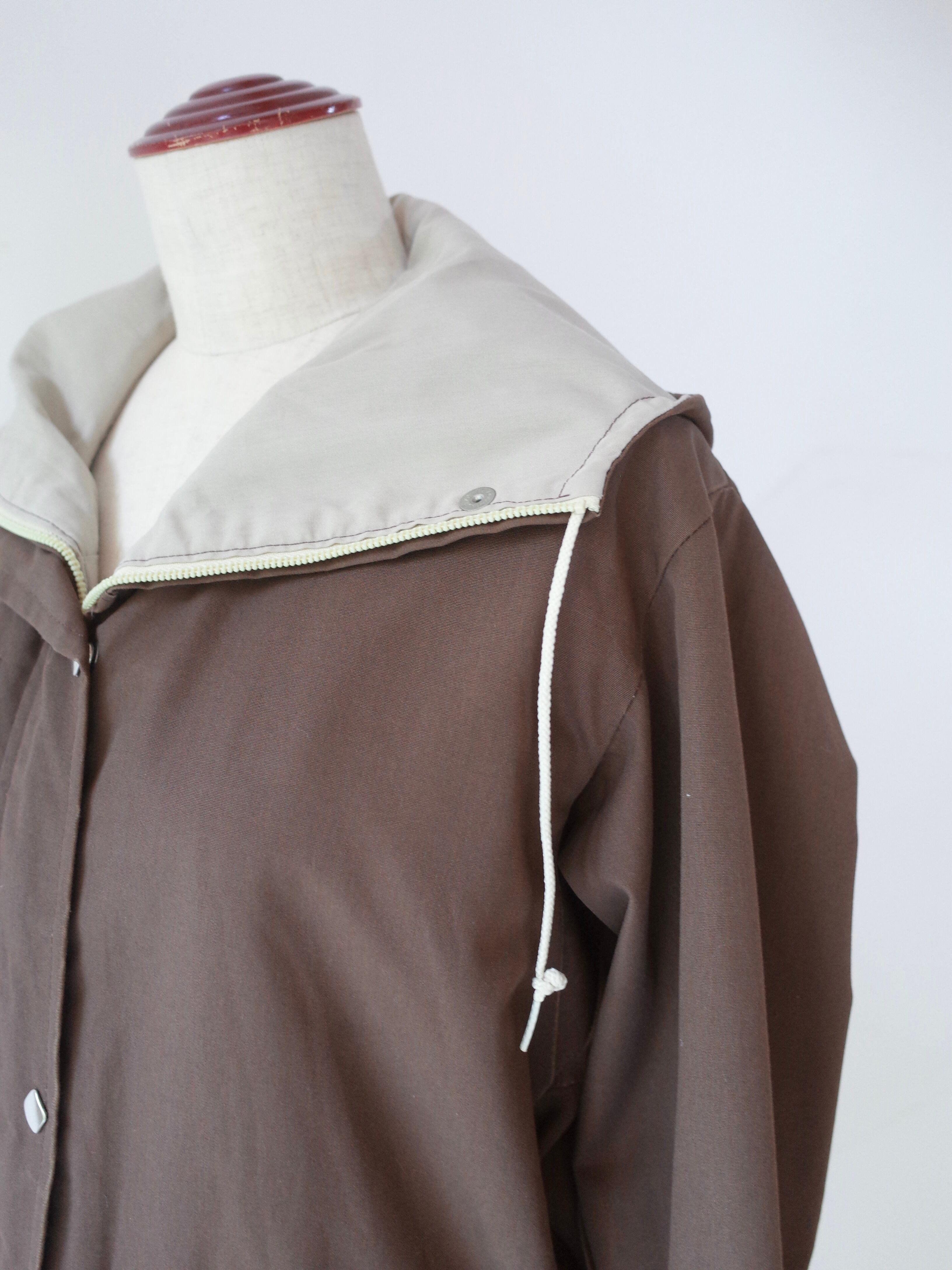 ・味のあるサラッとしたコットン素材のシェルに正方形のスナップボタンが雰囲気の良い一枚