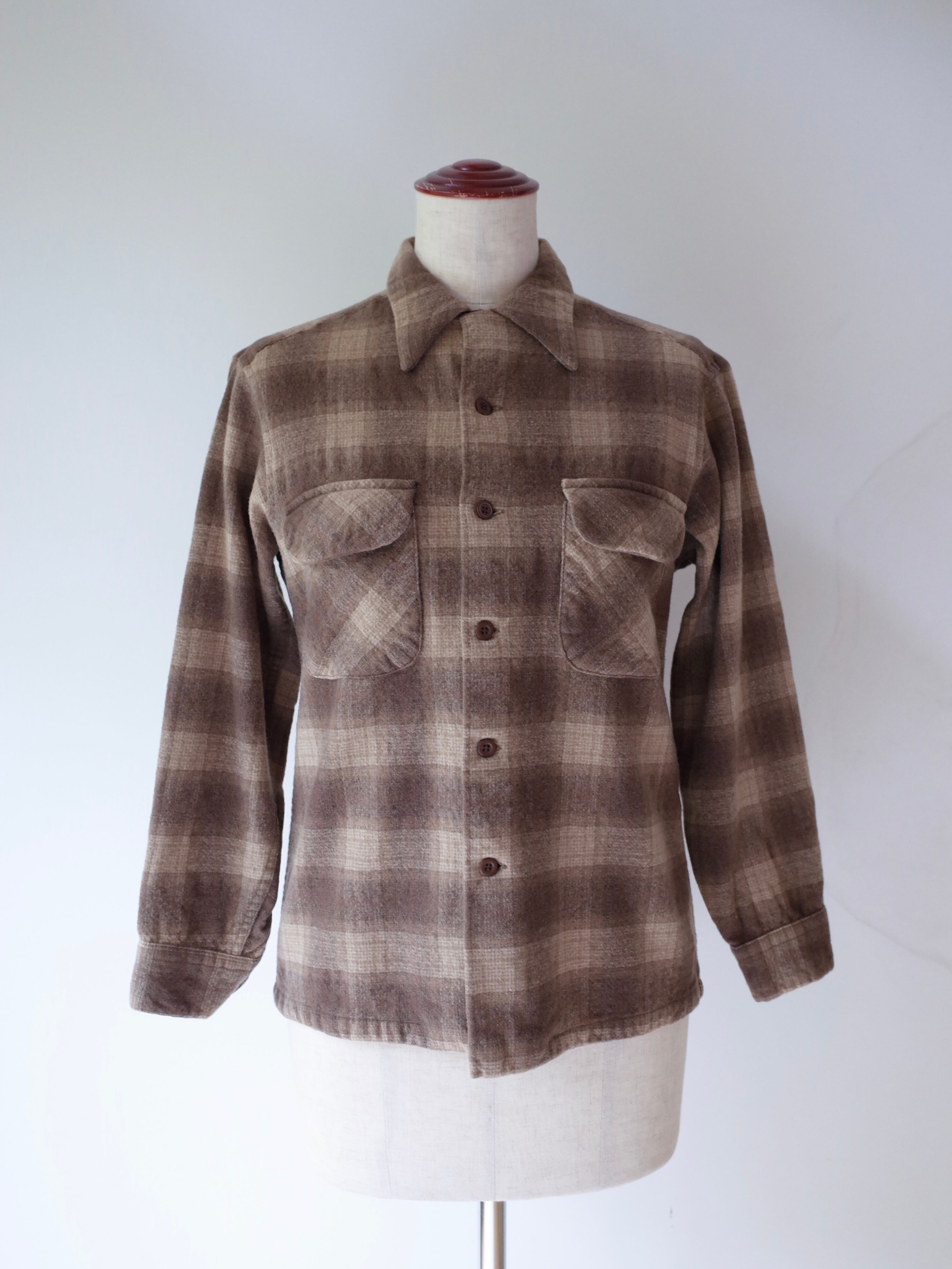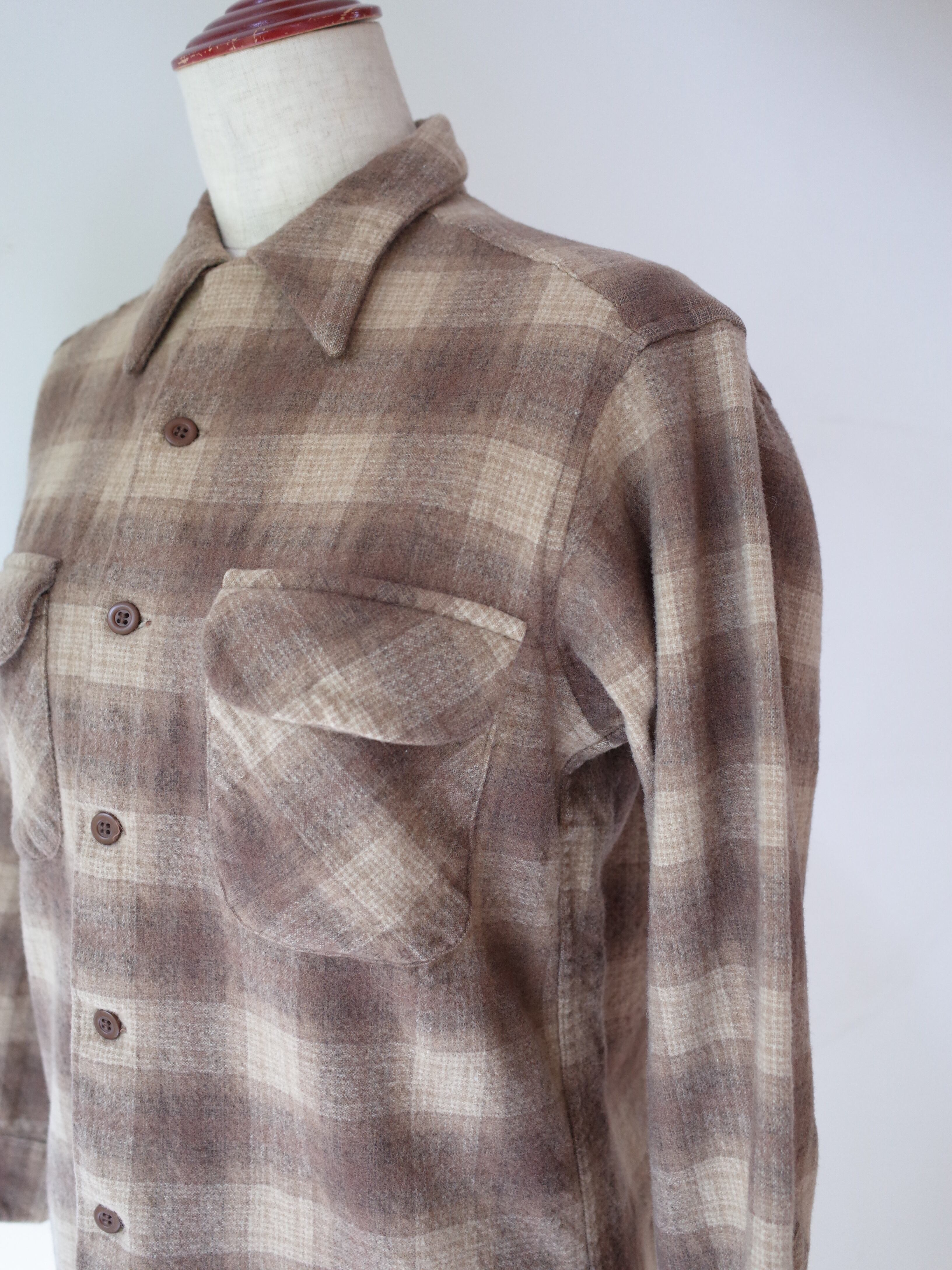 70年代アメリカ製PENDLETONのウールチェックシャツです。創業当初より選びぬかれた羊のVIRGIN WOOL100%に拘り続けているPENDLETONのウールシャツは柔らかくて軽く、着心地も抜群です。それでいて保温性にも優れており、春先まで着られます。現行にはないヴィンテージらしい雰囲気が詰まった一着です。