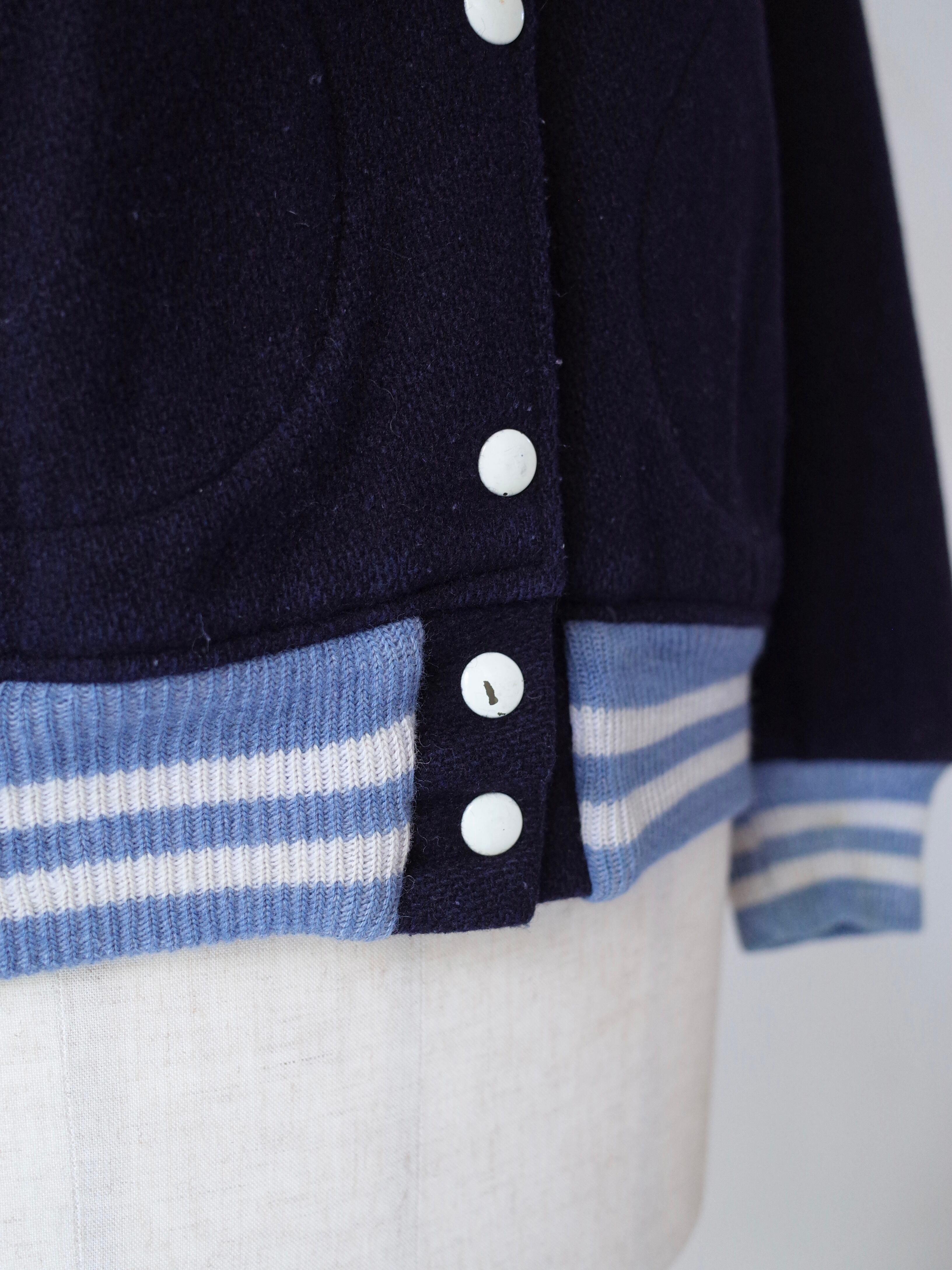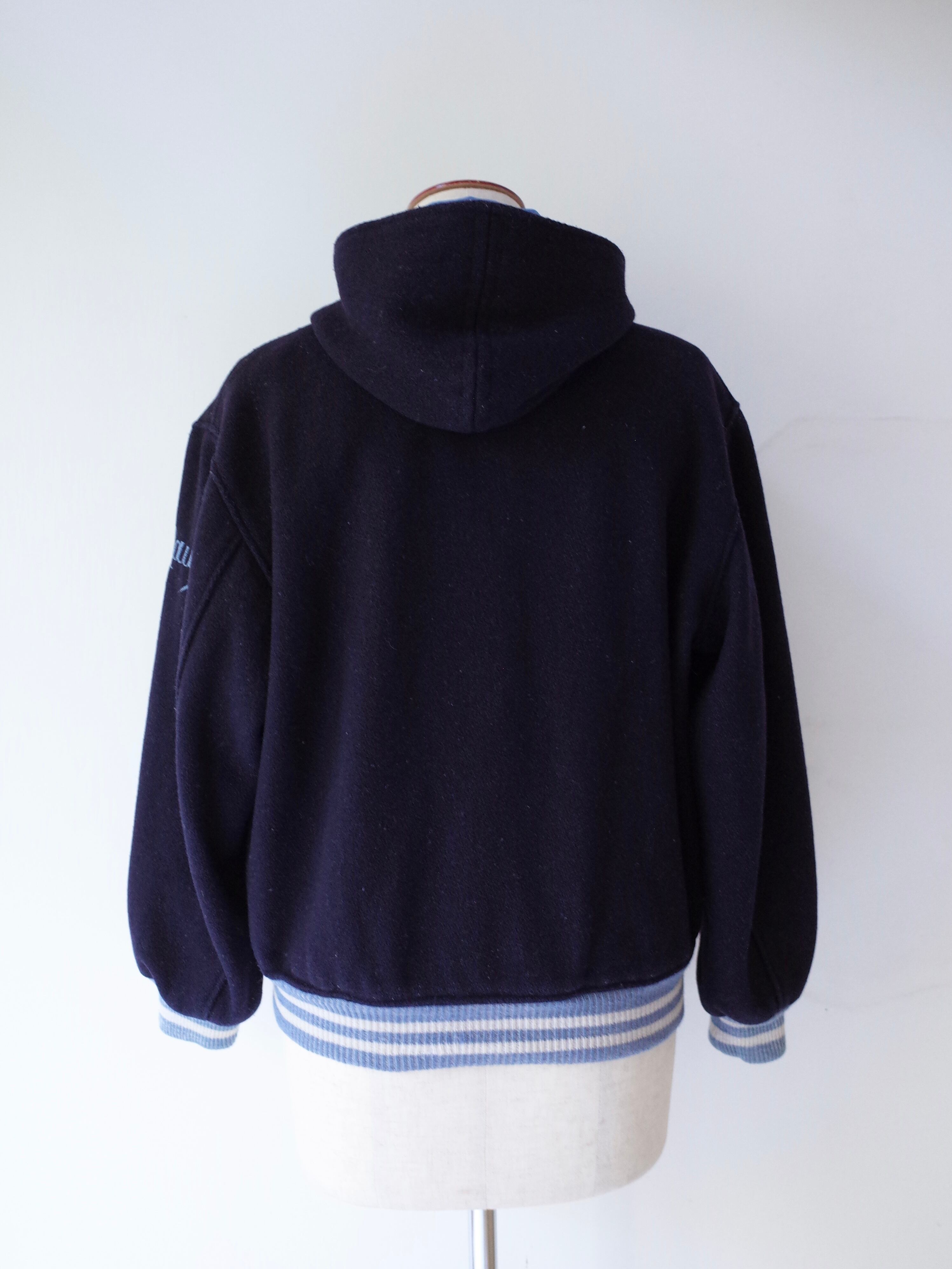 70年代製のスタジャン。フード付きのコンパクトなサイズ感でバランス良く着用頂ける一枚。綺麗目なスラックスやロングスカートと◎アクセサリーでアップデートしたスタイリングもおすすめです。