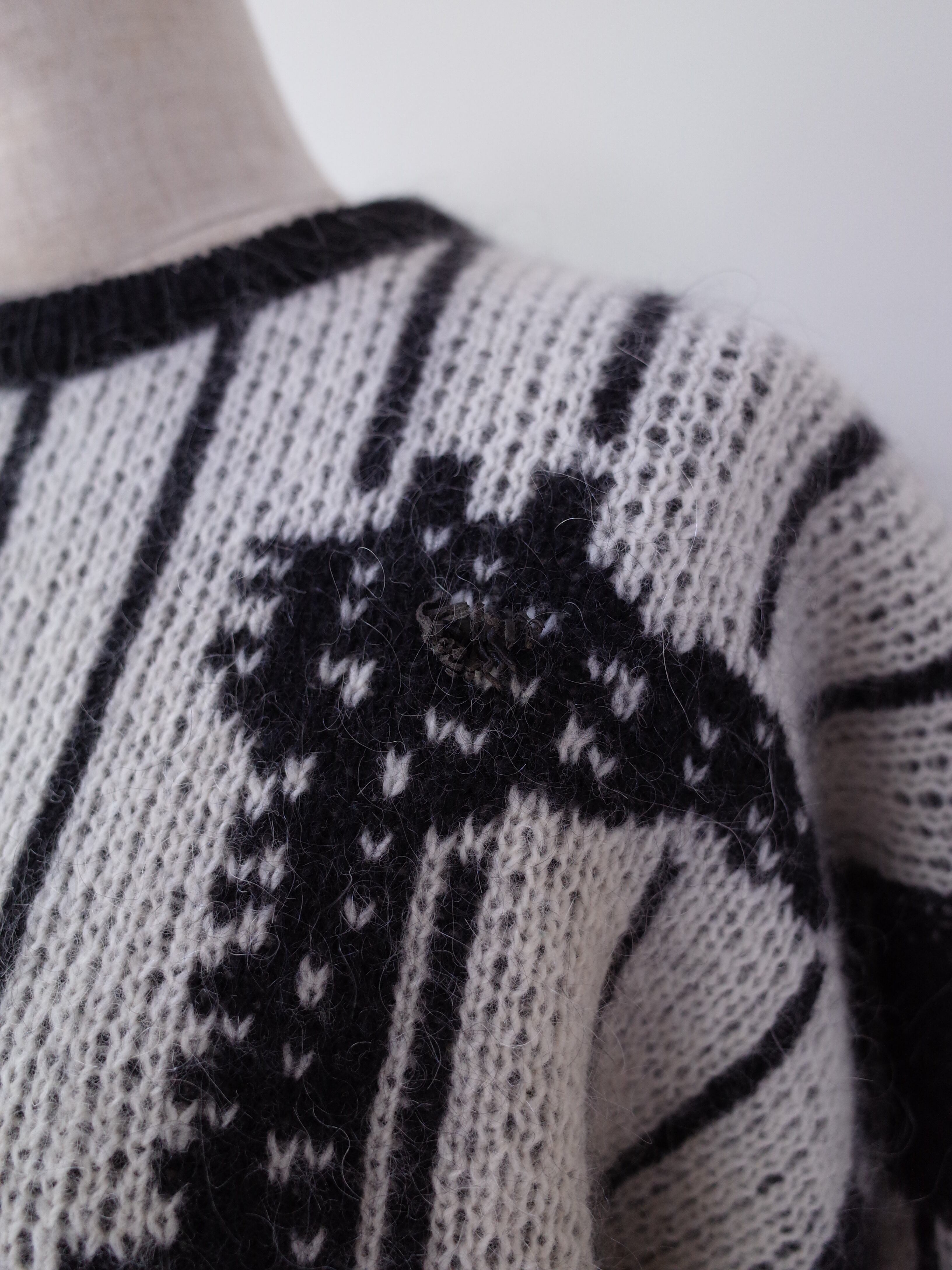 ニュージーランド製キリン柄のモヘアニットセーターです。